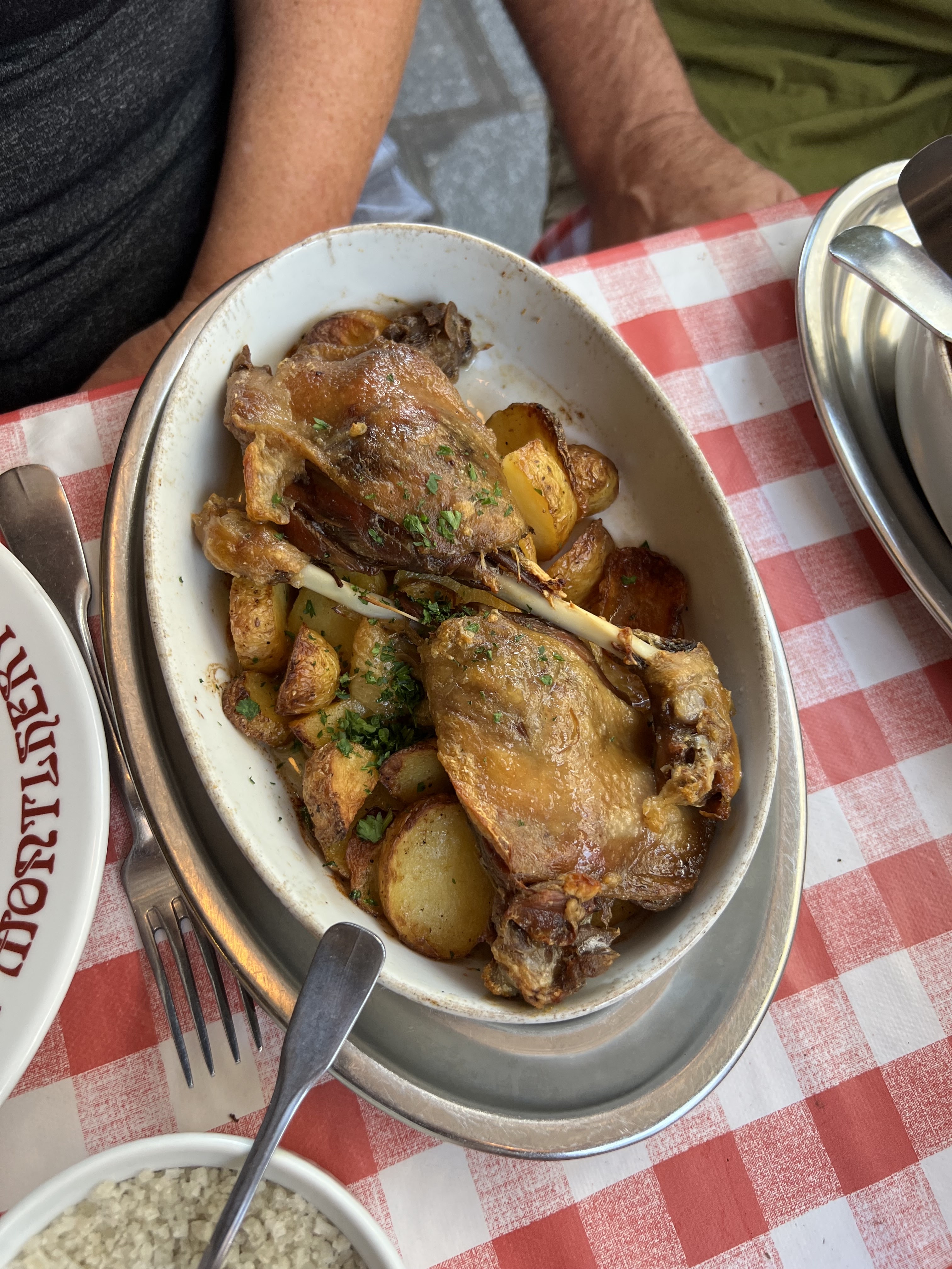 Bon restaurant à la maison. Des portions généreuses, des viandes excellentes. Placera une litre de vin de la maison sur votre table et ne facturera que ce que vous consommez. J'ai commencé à visiter cet endroit il y a environ 25 ans, je suis revenu après 18 ans, j'ai rencontré le chef qui est là depuis 43 ans et je partage les photos sur le mur de sa jeunesse. Dans le passé, nous devions dîner et l'endroit était toujours très fréquenté. Sur réservation uniquement. Ceci fait, nous sommes entrés pour un déjeuner tardif, un dîner tôt, moins occupés. Même vieux goût exquis. Fortement recommandé. Oh, pour le baba au rhum, ils déposent la bouteille de rhum à votre table.