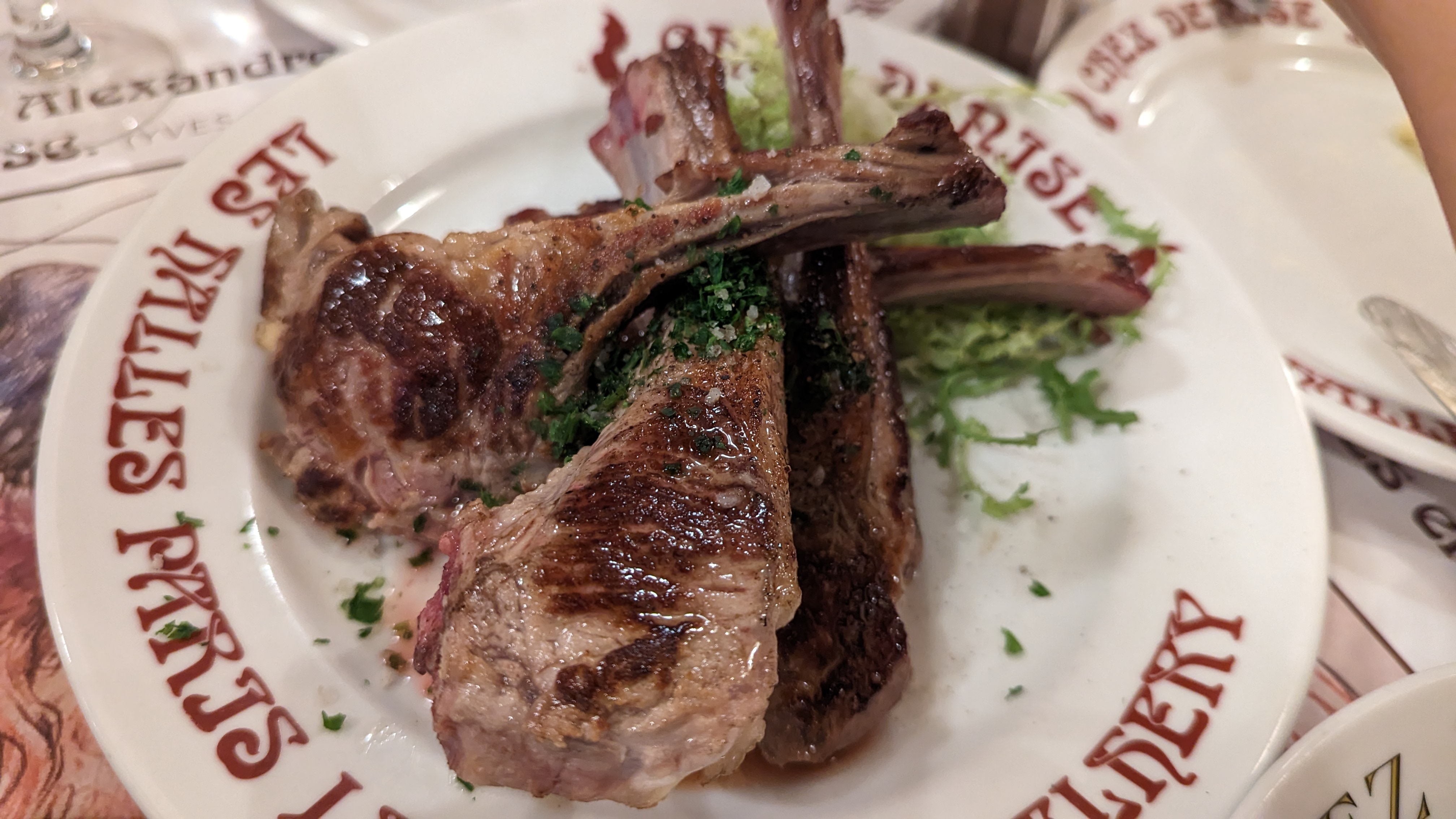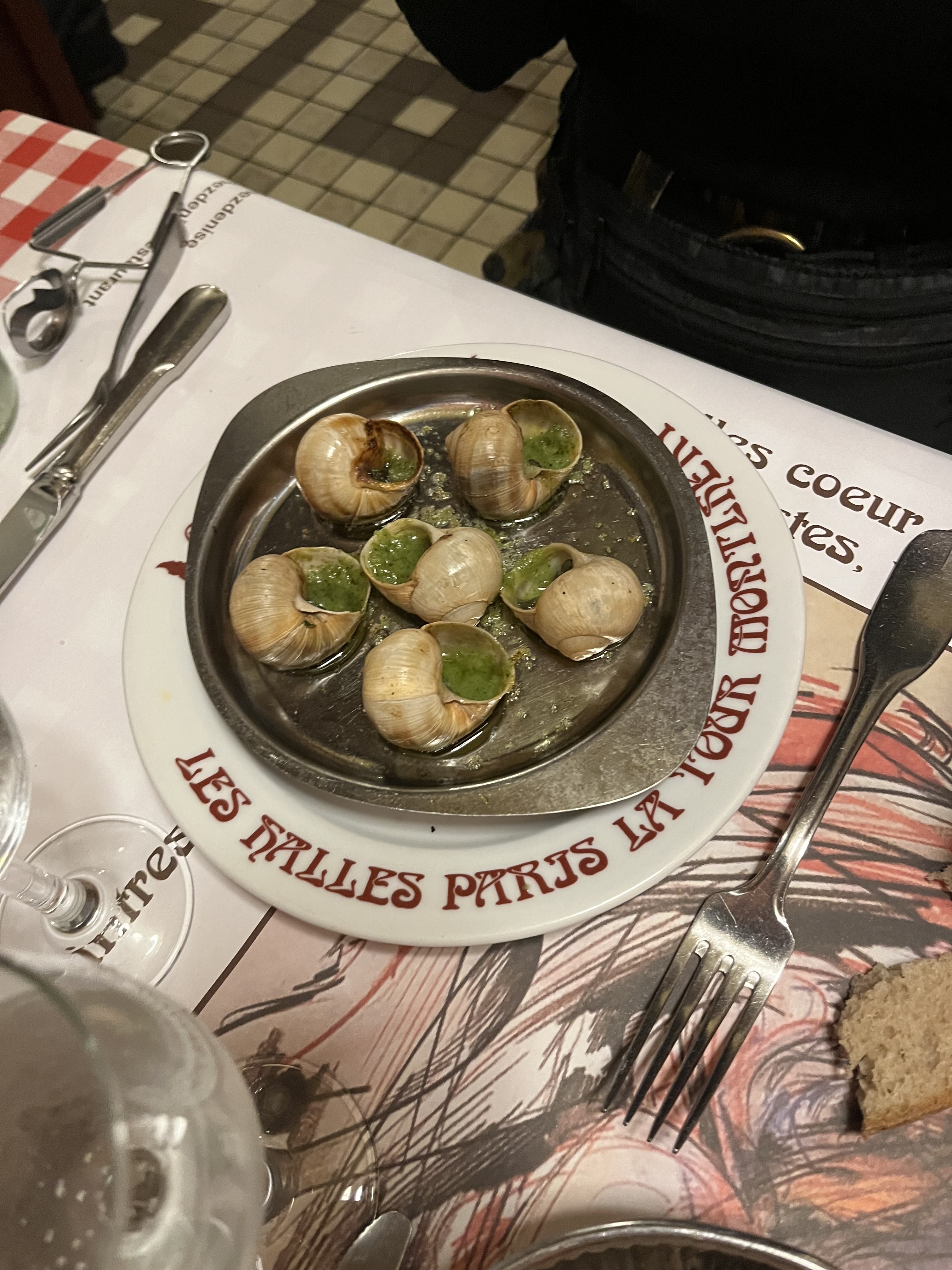 -Nourriture commandée : Côte d'agneau grillé Cervelles d'agneau meunière Escargots Andouillette Onglet de bœuf grillé -Révision : assurez-vous de réserver à l'avance ou rejoignez la file d'attente rapidement après 22 heures. Les escargots étaient la star de cette saveur. L'Andouilette était également très bonne (elle est piquante) mais la saveur est excellente. La Côte d’agneau grillé (côtelette d’agneau) et l’Onglet de bœuf grillé (steak suspendu) étaient également bons mais rien de fou. -Prix : La plupart des choses coûtaient entre 20 et 25 € -Portion : Chaque plat est suffisant pour une personne - Service : rapide mais il faut leur rappeler d'apporter des assiettes, du sel et du poivre de temps en temps. -Ambiance : Très sympa, je le décrirais comme un restaurant français plus traditionnel -Est-ce que je reviendrais ? J'essaierais d'abord ailleurs