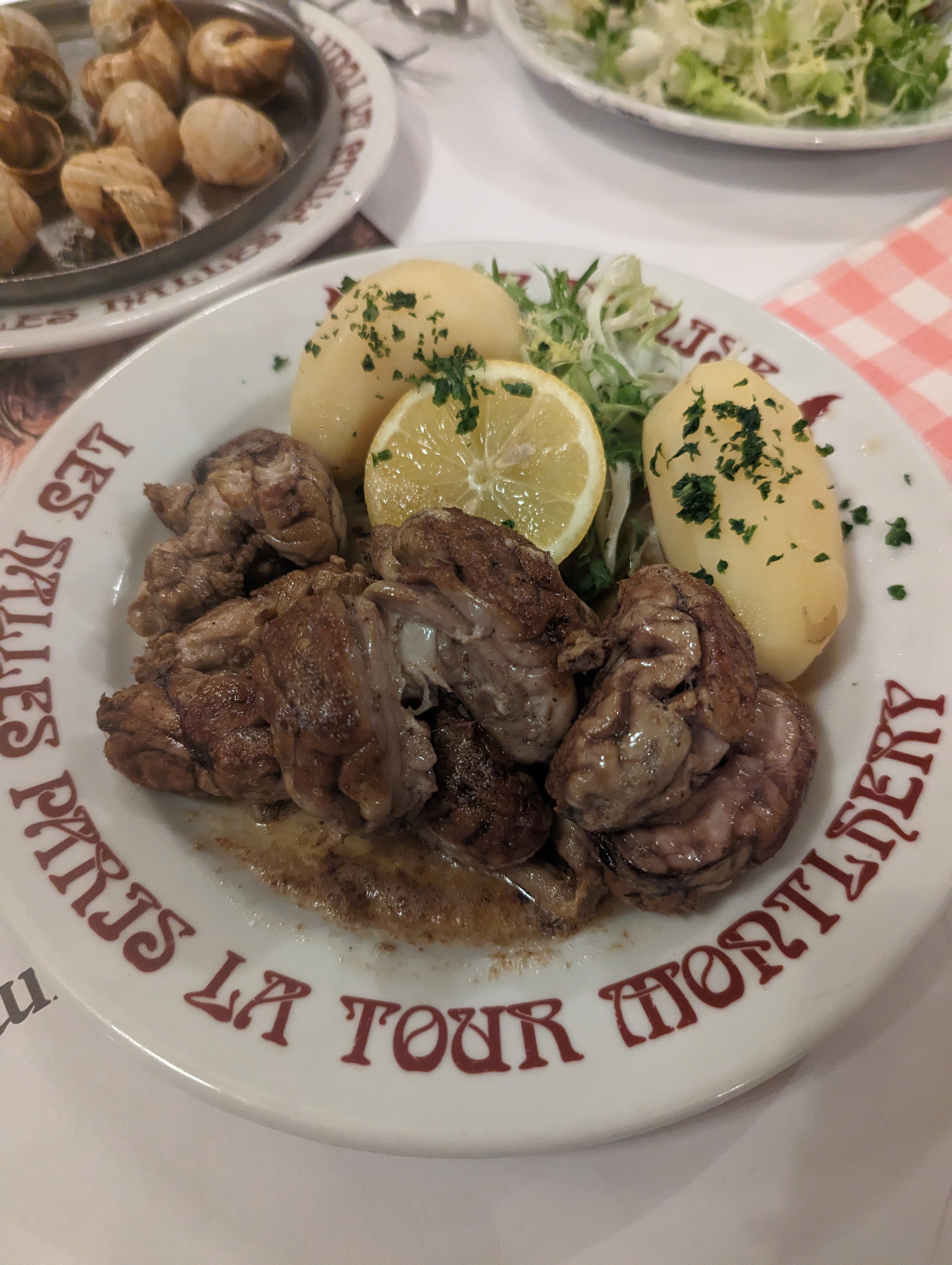 Repas incroyable dans ce bistro français classique. Nous avons commandé les escargots pour commencer, suivis du confit de canard accompagné de pommes de terre et du poulet rôti accompagné de purée de pommes de terre et d'une mousse au chocolat pour le dessert. Pour une expérience culinaire française classique, vous devez manger ici lorsque vous êtes à Paris. Cet endroit peut être très fréquenté et les réservations sont recommandées.