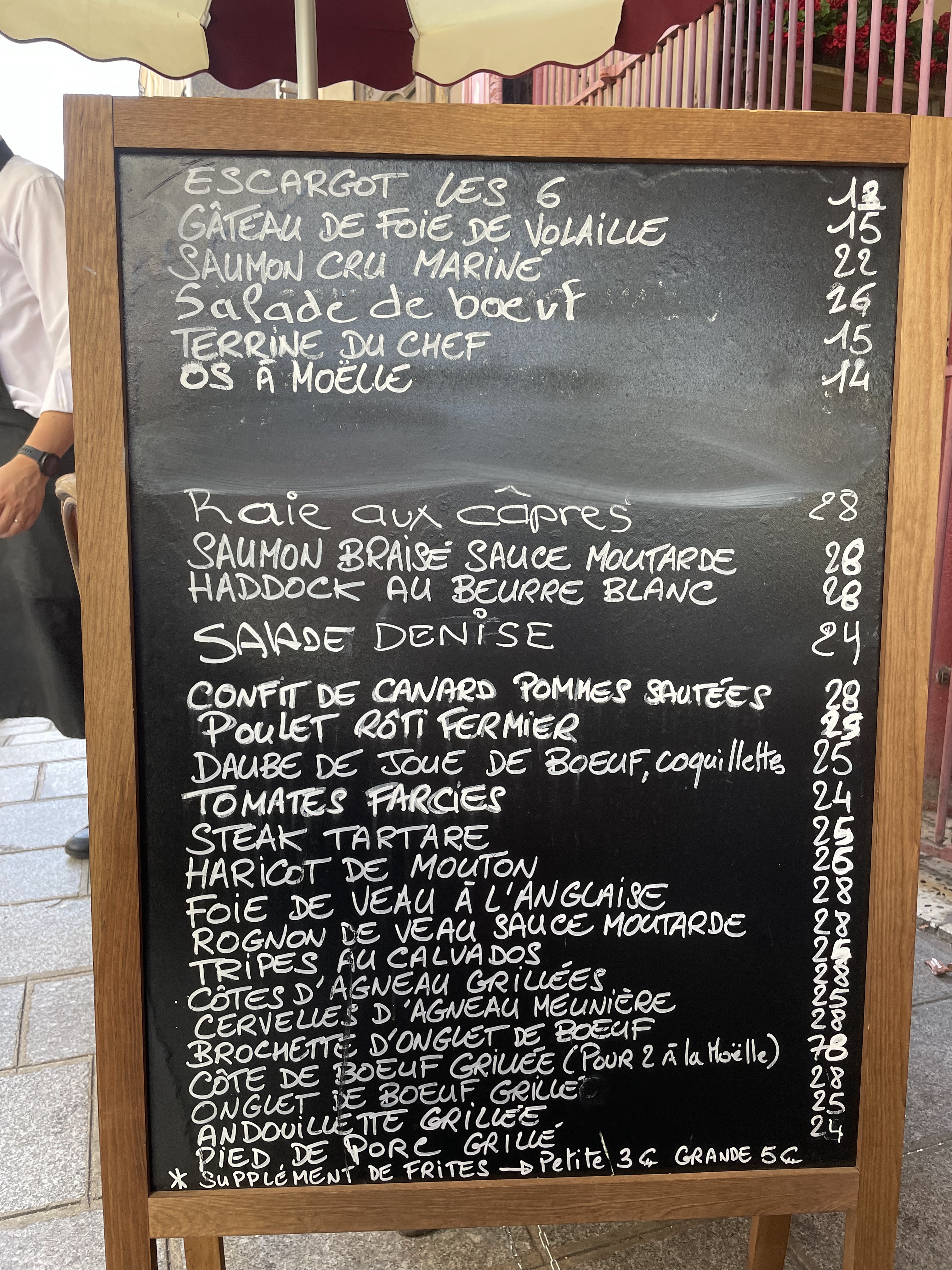 On n’y mange pas, on « ripaille » ! Gabin et Brassens semblent prêts à surgir à tout moment… Un de ces endroits où le temps s’est arrêté pour le meilleur. Dieu merci pas trop de touristes, le menu étant réservé aux palais les plus délicats : tripes, foie, cervelle, il faut déjà être un fin gourmet pour passer les portes de chez « Denise » et avoir un bon coup de fourchette. On y entre à midi et on ressort à 17h, heureux.