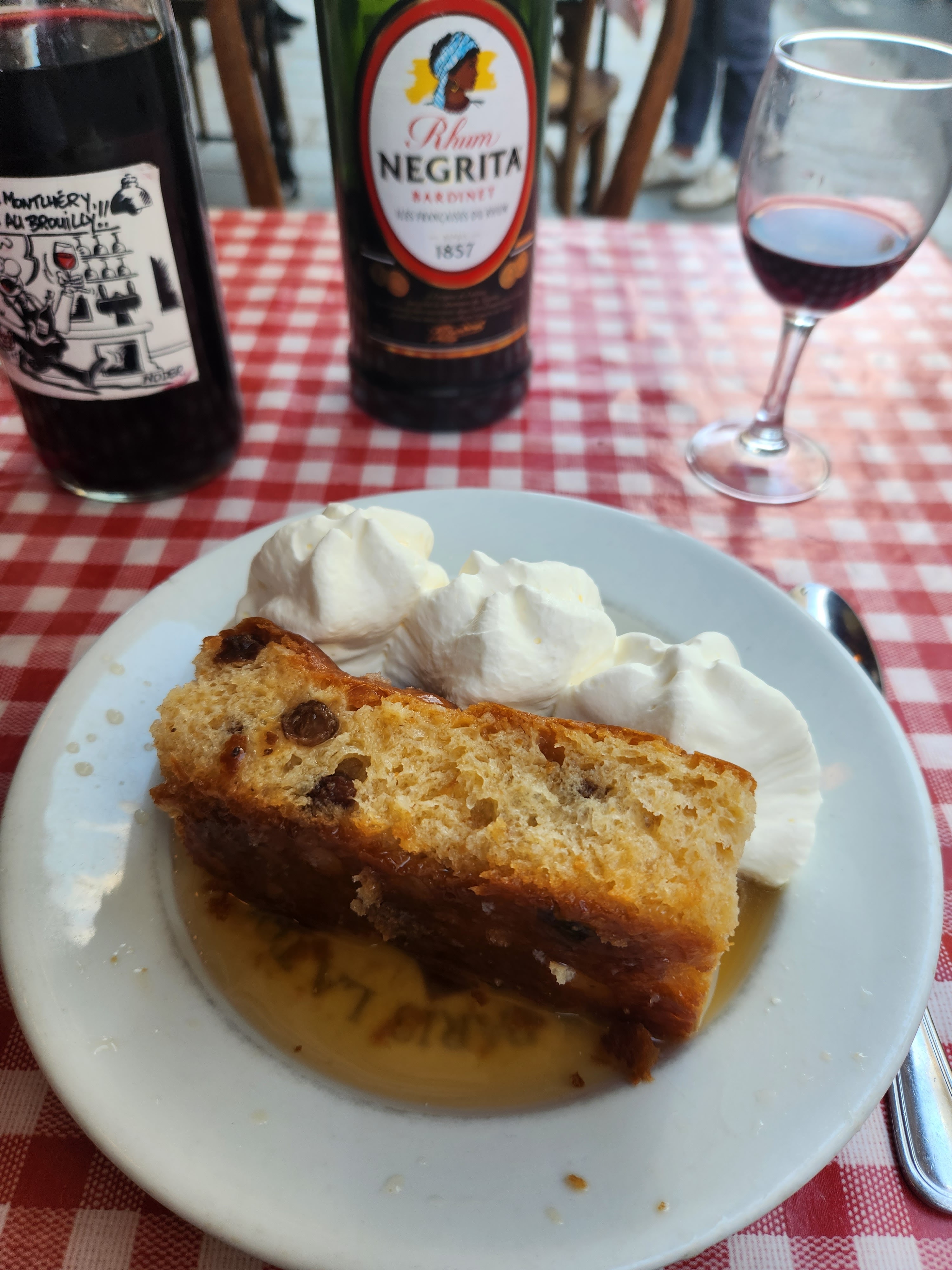Mes amis, ne faites pas confiance aux critiques de quelqu'un qui est allé chez Denise et qui a non seulement bu un aperol spritz, mais en a posté une photo. C'est la vraie affaire. Si vous ne parlez pas français, allez prendre une photo du menu plus tôt et faites vos devoirs. Les serveurs sont gentils, généreux et sympathiques. Soyez simplement humble. Mon steak était parfaitement mi-saignant, avec une saisie sombre sur le dessus. Oui les oignons au dessus ! Je n’ai jamais mangé un steak cuit à cette perfection auparavant. La poêle devait être très chaude. Et le baba au rhum ! Livré avec une bouteille de rhum sur la table au cas où les choses ne seraient pas assez mouillées. Mon Dieu. Merci beaucoup!