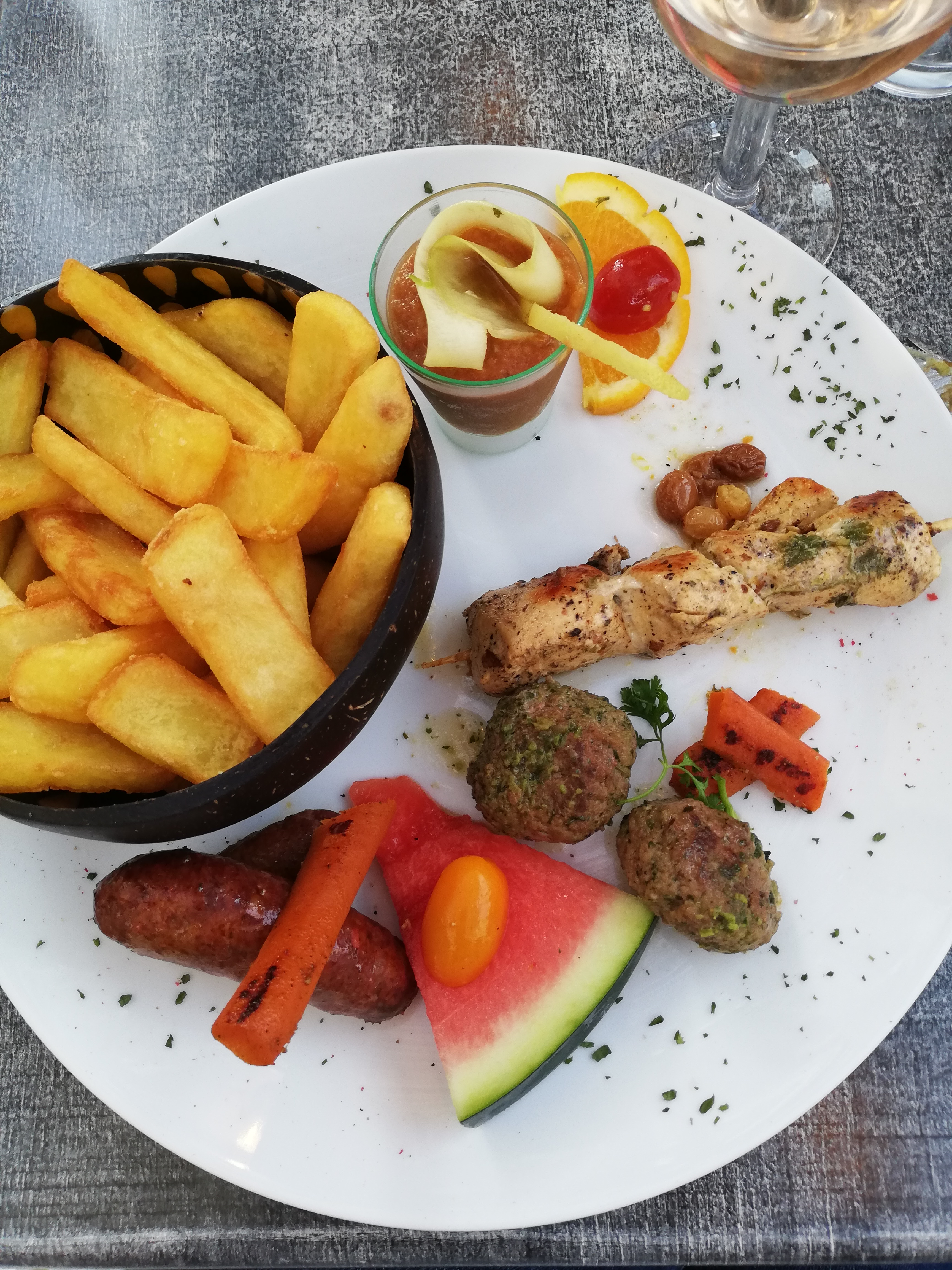 On s'est installé le soir du 14 juillet et..... Franchement déçu, menu unique a base de brochette de poulet, salade, frites et tarte au citron, enfin, plutôt brioche avec jus de citron dessus 😔. Menu vraiment insipide.... vraiment déçu.... Et le service.... N'en parlons pas, personnel compétent perdu, presque de heures sur place pour pas grand chose...