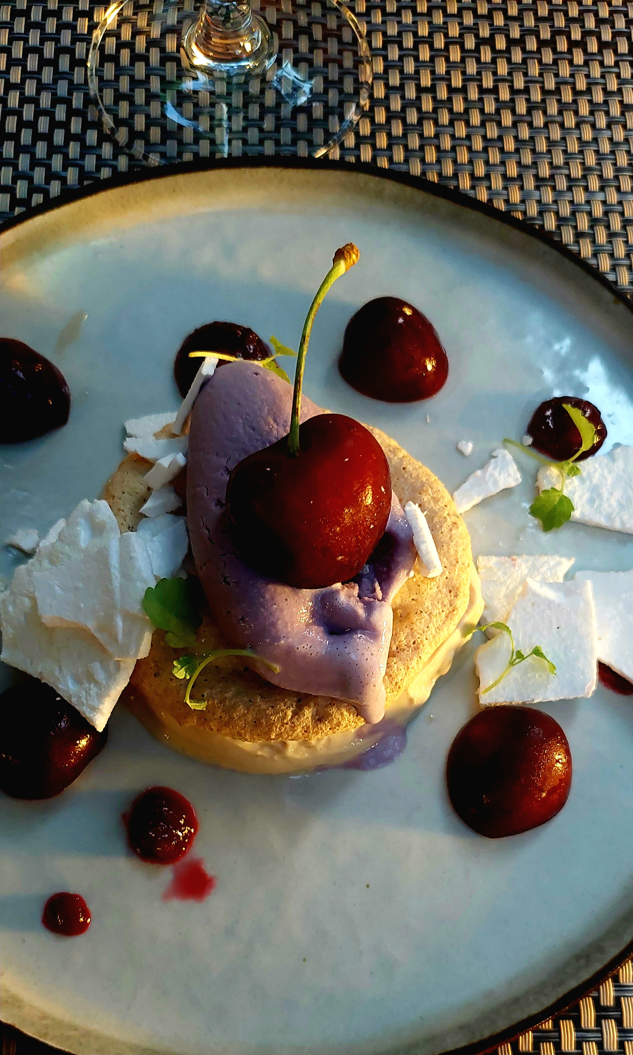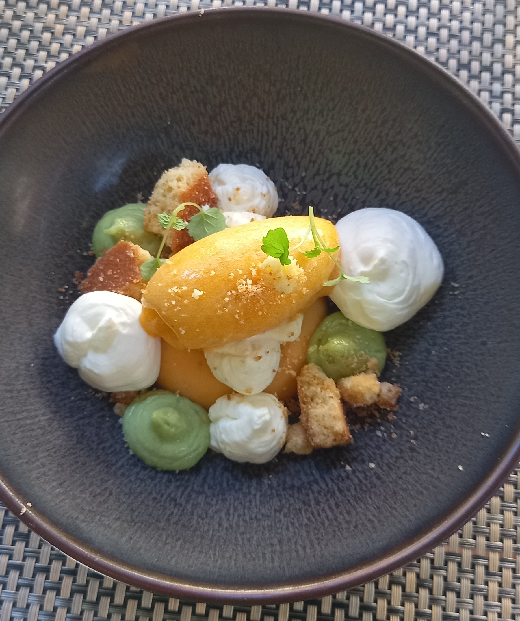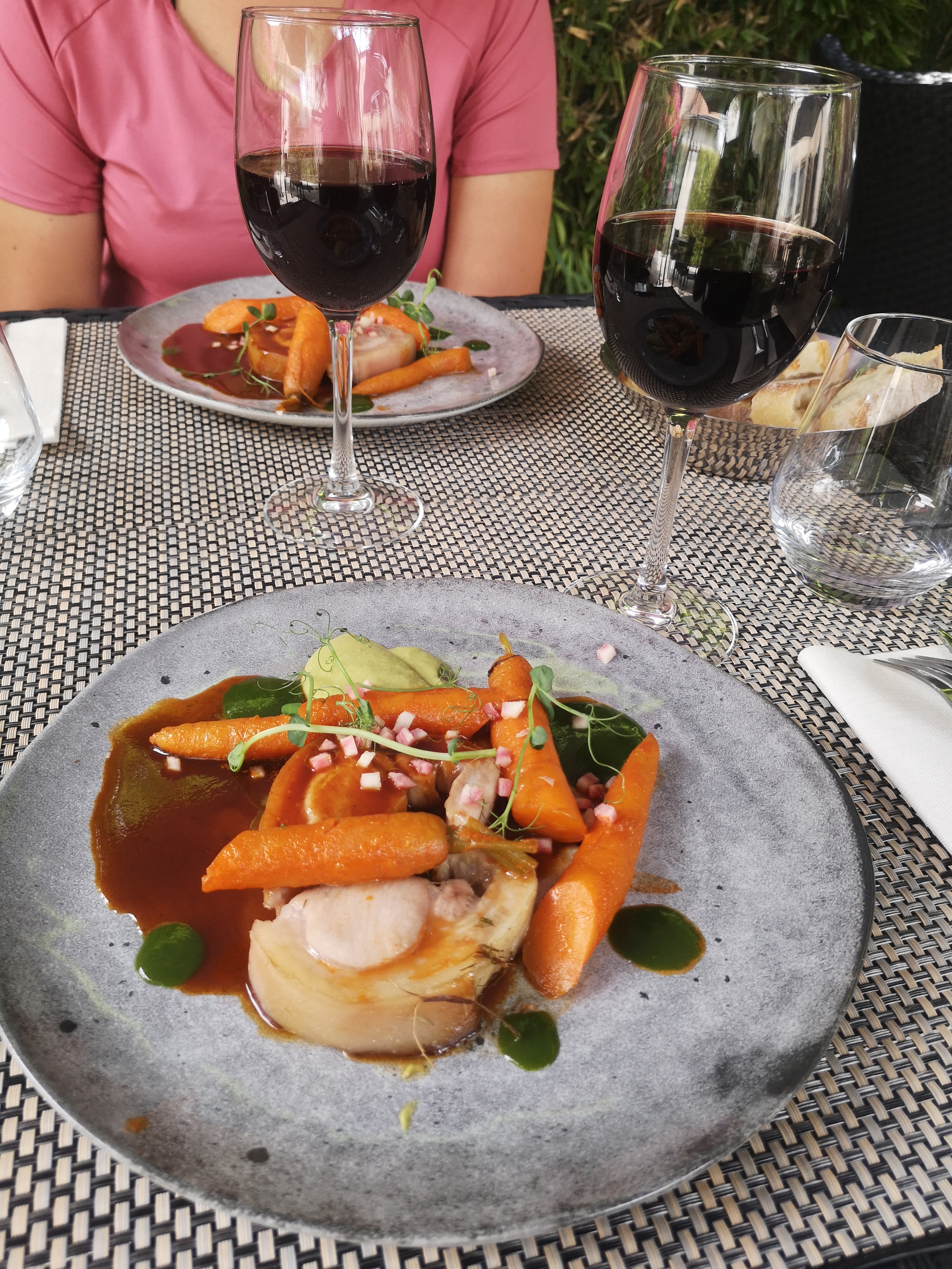 Tout était délicieux. Belle présentation. Quant au dessert betteraves,fruits rouges,crumble et poivre timut : un régal. La terrasse est très agréable.