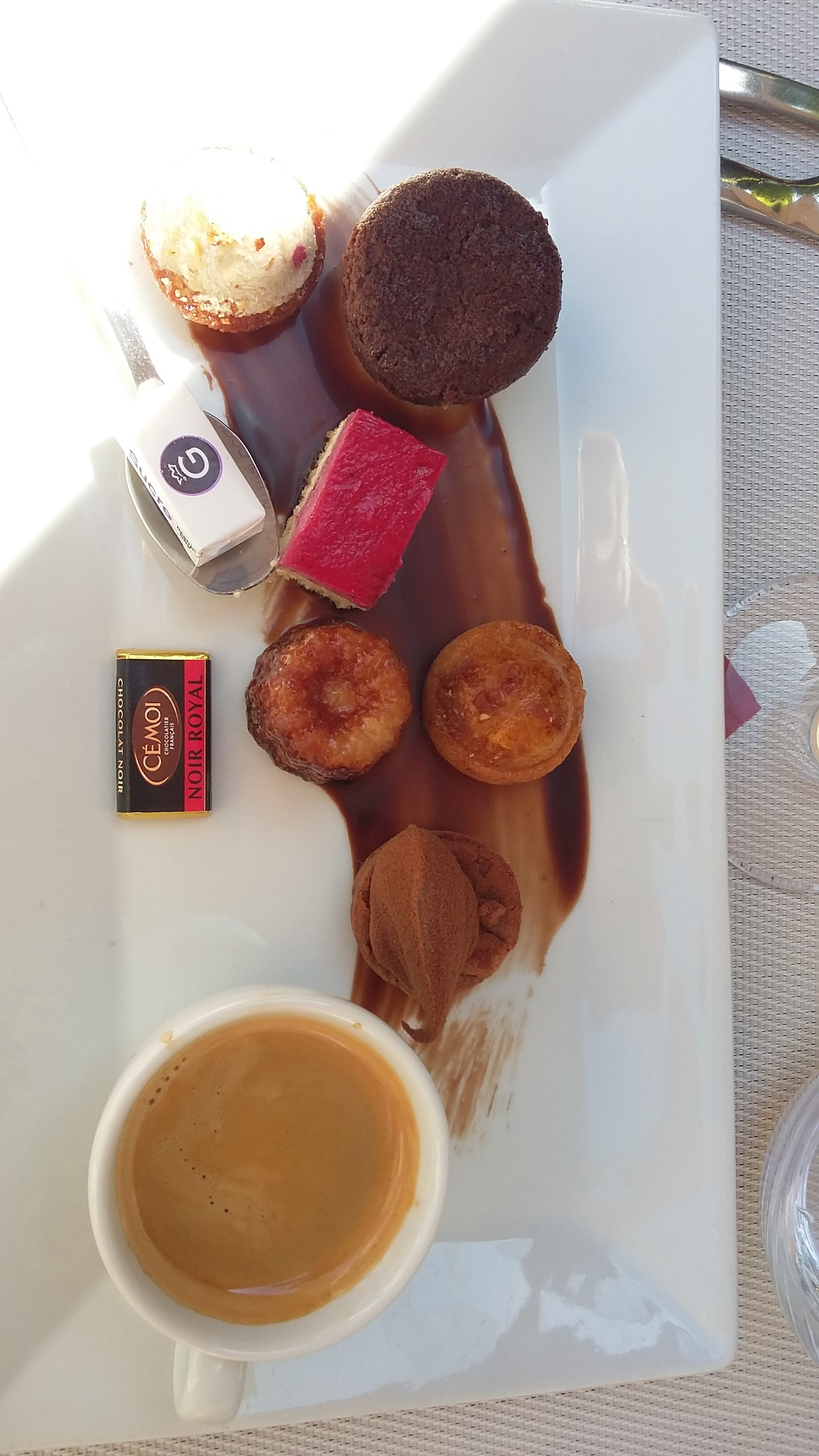 Plats servis en petite quantité, très peu d'accompagnement. Mignardises accompagnant le café certainement du congelé...