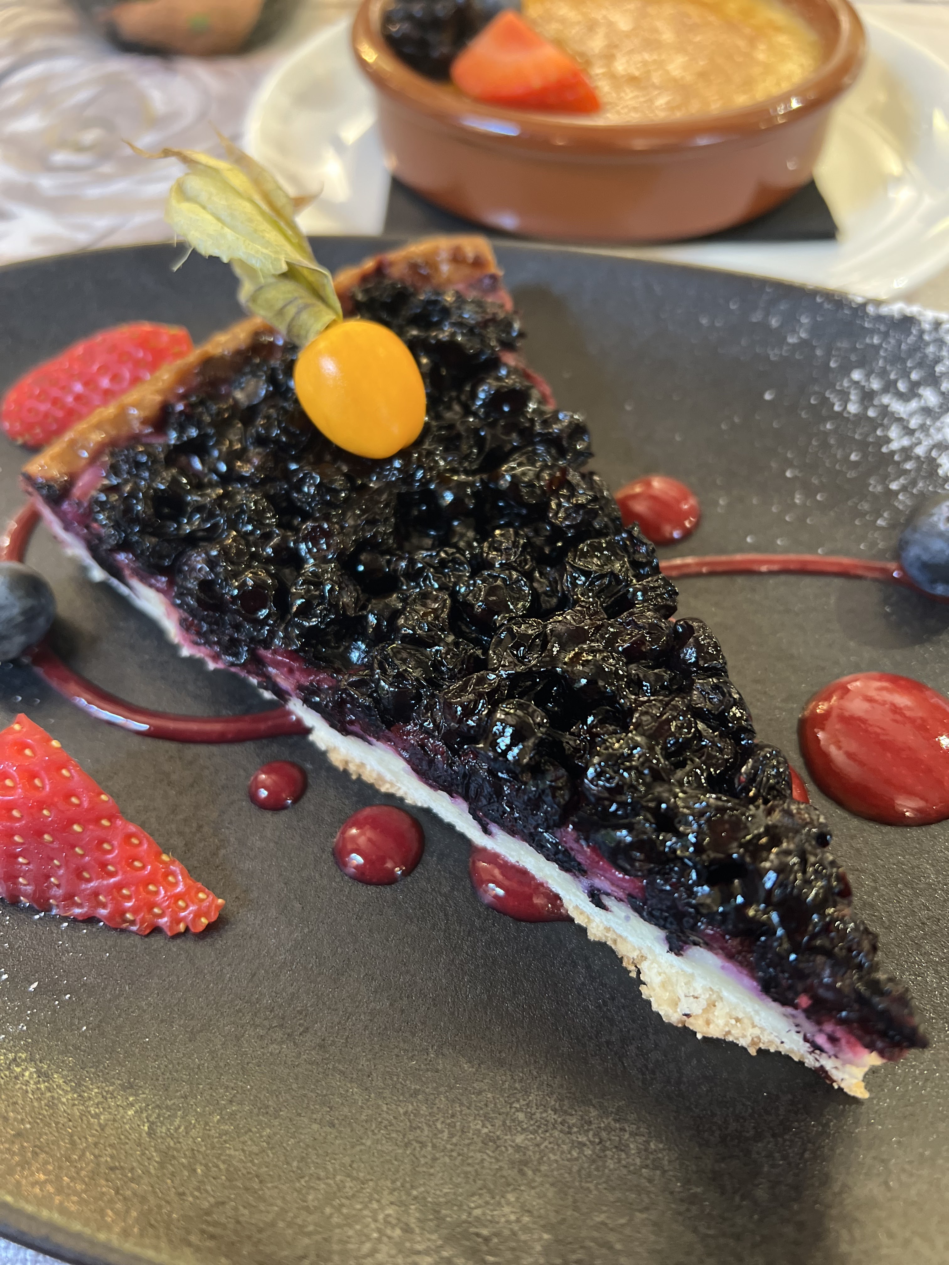 Nous avons découvert les filets de perche meunière sauce citronnée, un régal, très fins et très goûteux. Et une excellente tarte aux myrtilles en dessert.