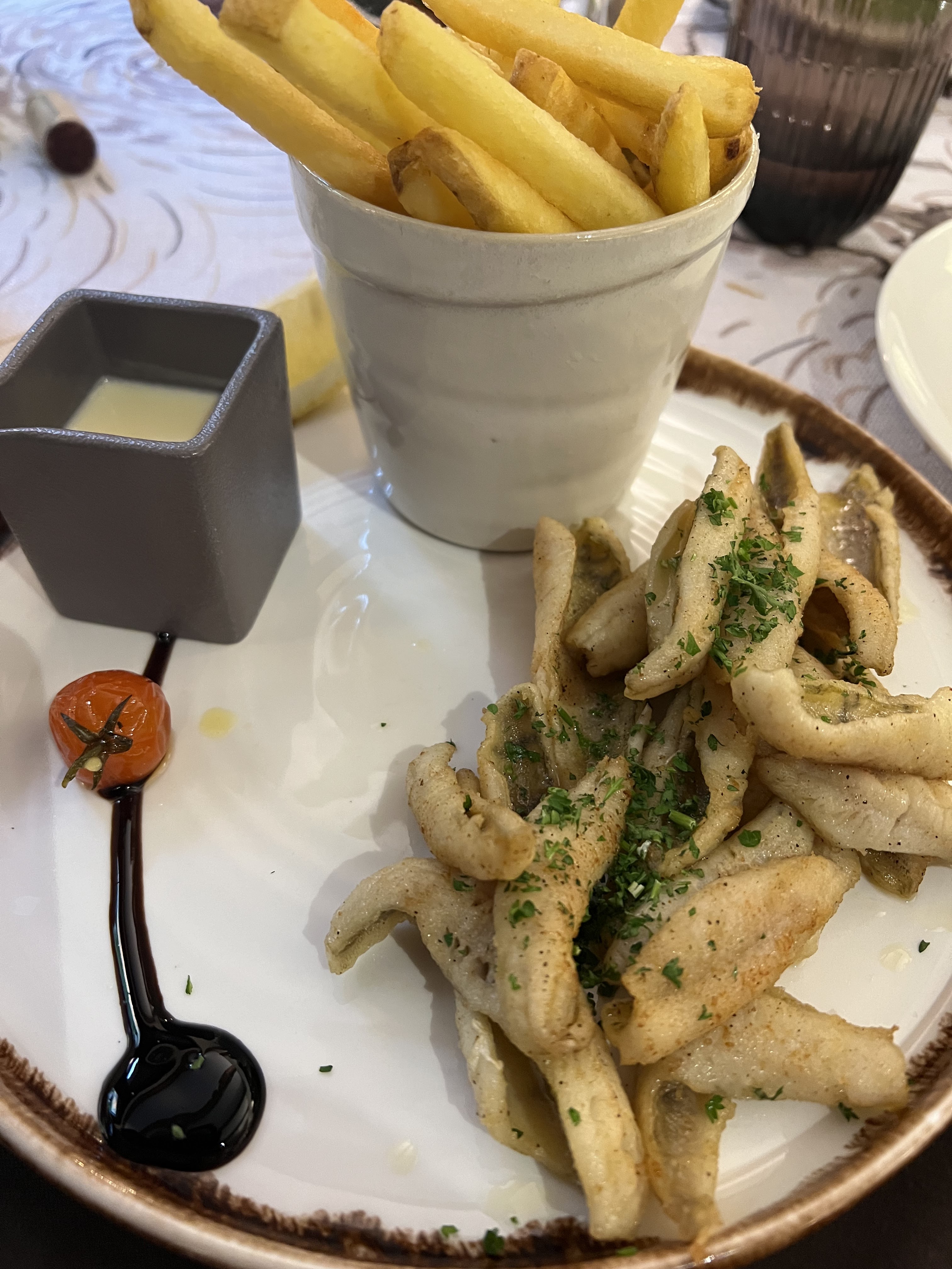 Contrairement à certains restaurants de lieux touristiques, on a été très bien accueilli par le personnel, qui ont été au petit soin tout le long du repas ! On a pris risotto au parmesan et sa gambas, c'était excellent ! Pareil pour les traditionnels fritures. On recommande !