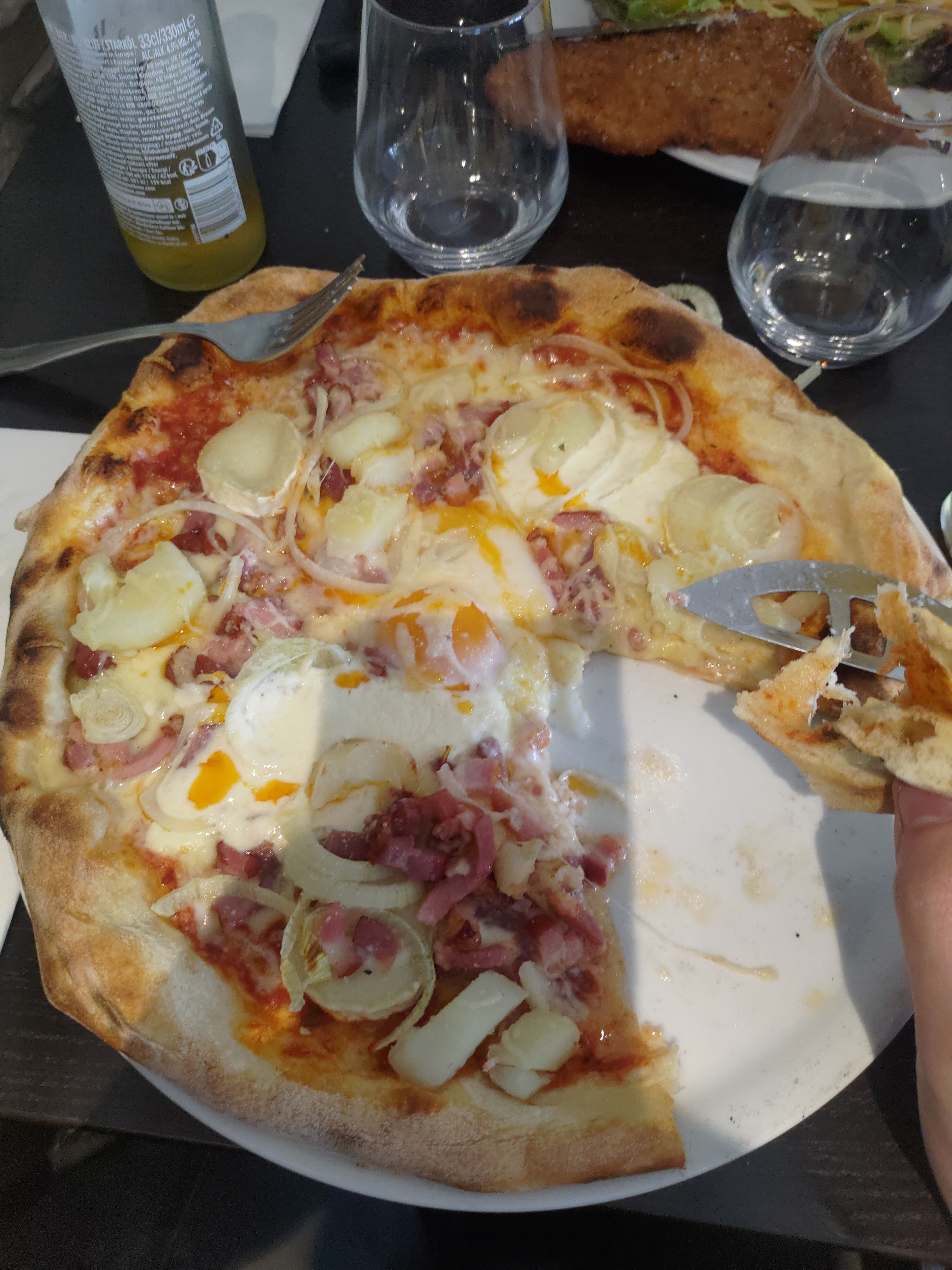 Petit parking pour ce garer, peut-être compliqué en cas de forte influence, Service des plus charmants, les jeunes hommes sont à l'écoute et très avenant quant au bon déroulement du repas. Terasse très bien disposé pour profiter du soleil lors des bonnes journée, service rapide le midi si vous avez 1h/1h30 pour mangé vous pouvez y allez sans soucis Je peux officiellement clairement authentiquement VRRAAAAIMENT vous conseiller VIVEMENT au prêt de tous mes amis et connaissances et tout ceux qui lierons ce commentaire, la pizza raclette que j'y ai dégusté et l'une des meilleurs que j'ai pu gouter de ma vie et je suis un brin compliqué en ce qui concerne les pizzas ! Je reviendrais a coup sur lorsque je souhaiterai me régaler ! Très bonne expérience a renouveler autant de fois que faire se peut ! A très vite !