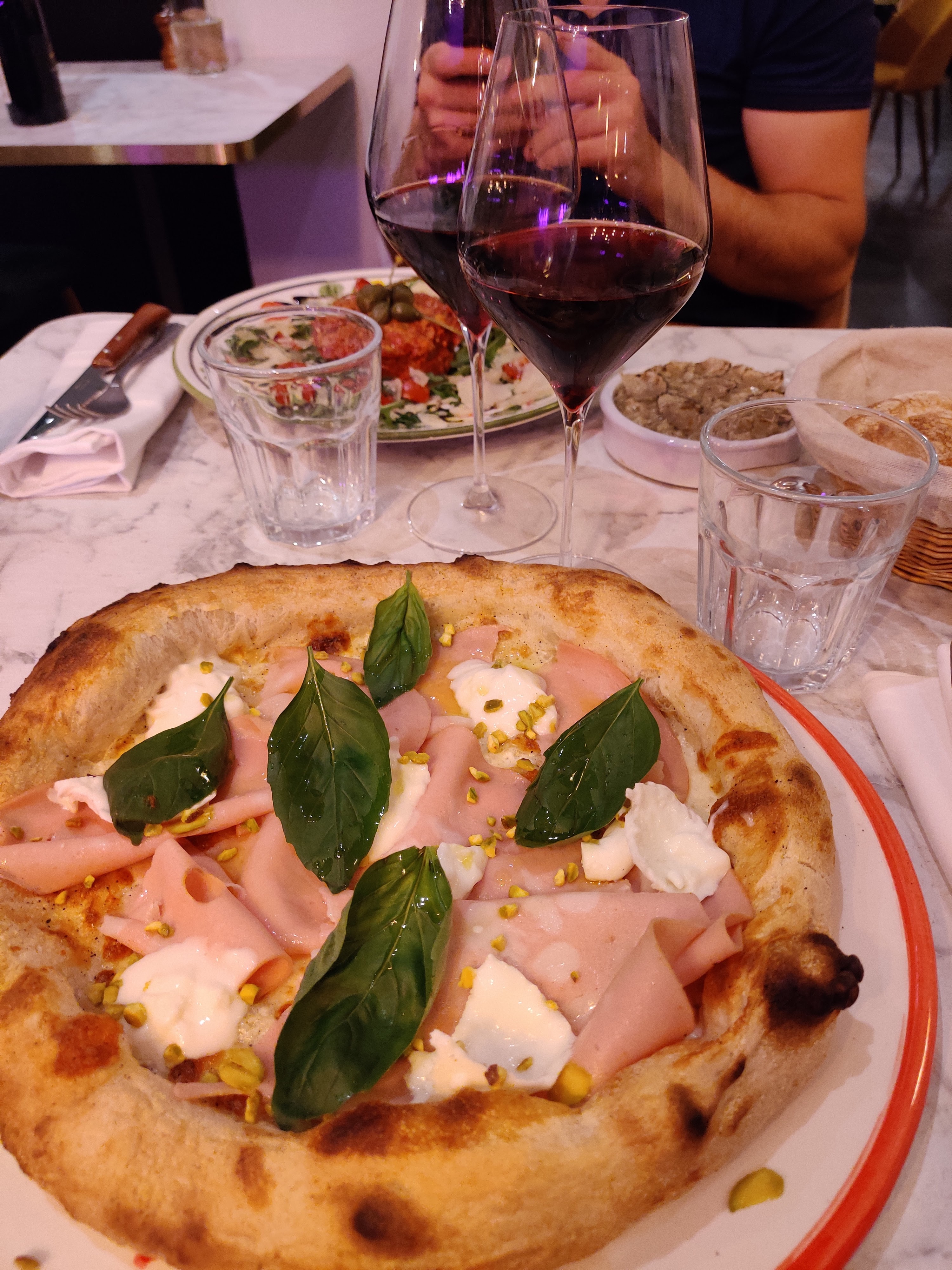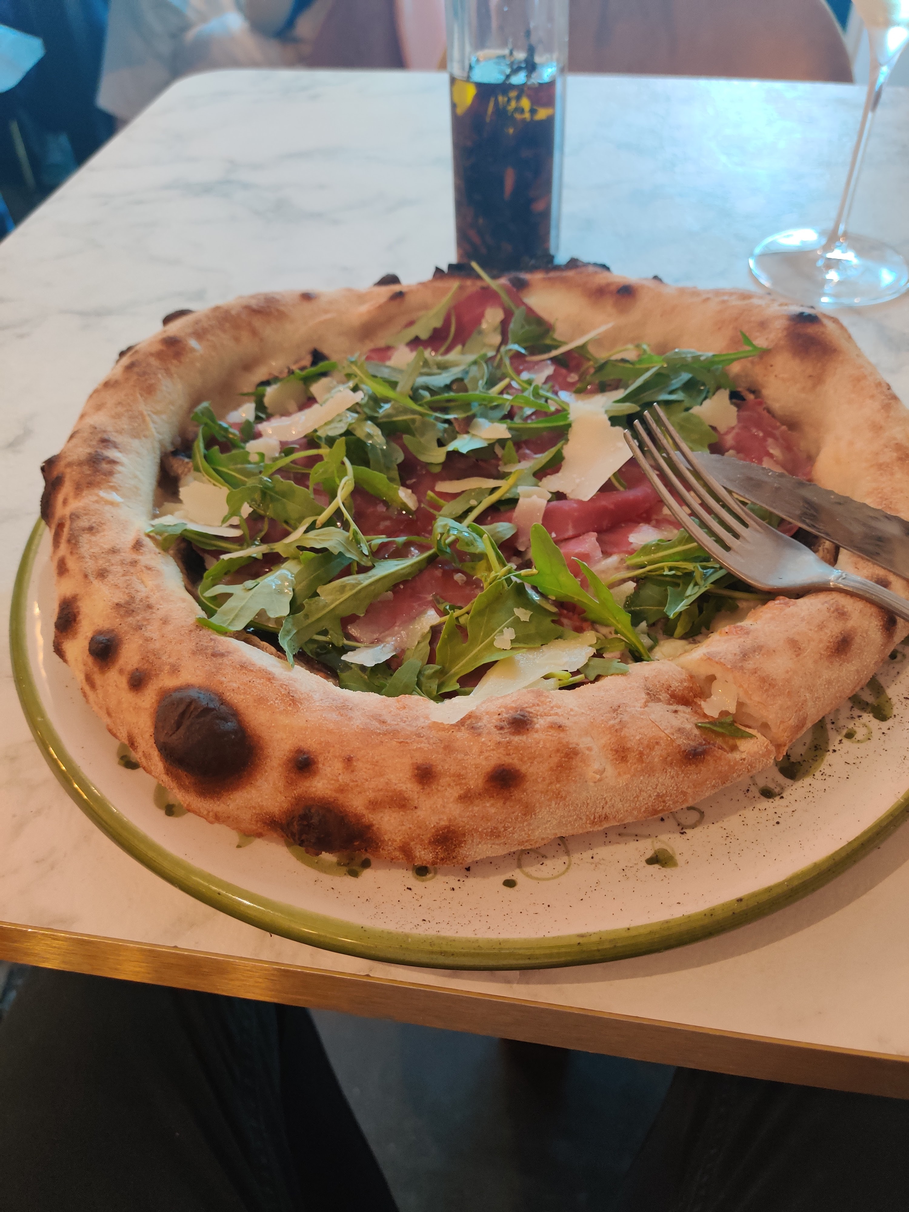 Une belle carte, première venue, je me suis régalée avec la pizza ( une pâte maison délicieuse) mortadelle, scraciatella pistaches, un café gourmand pour terminer. Le cadre est très beau, service au top, accueil sympathique. Seul petit bémol la playlist est à mon goût inadaptée, elle mériterait d'être plus soft. Je reviendrai volontiers.