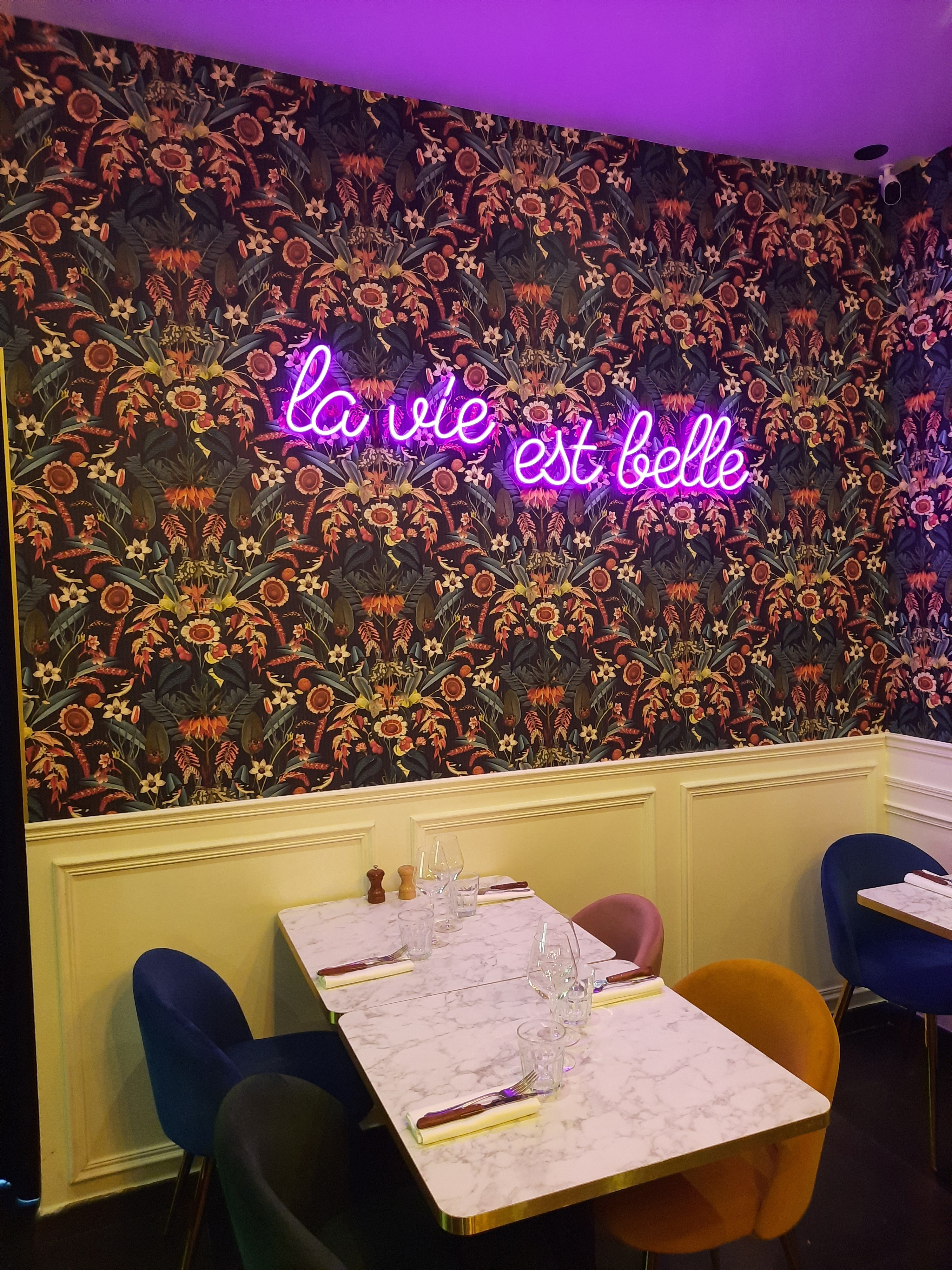 Lieu chaleureux avec une jolie décoration. Le personnel pourrait être plus enjoué mais il reste agréable pour la plupart, la carte donne envie et les plats sont bien servis et dressés ainsi que faits maison. Je recommande tres vivement ce restaurant où on y manges bien et dans une bonne ambiance! Deux entrées plat dessert (sans menu) ainsi qu’une bouteille de vin et de coca pour 84€ je trouve cela très correcte!