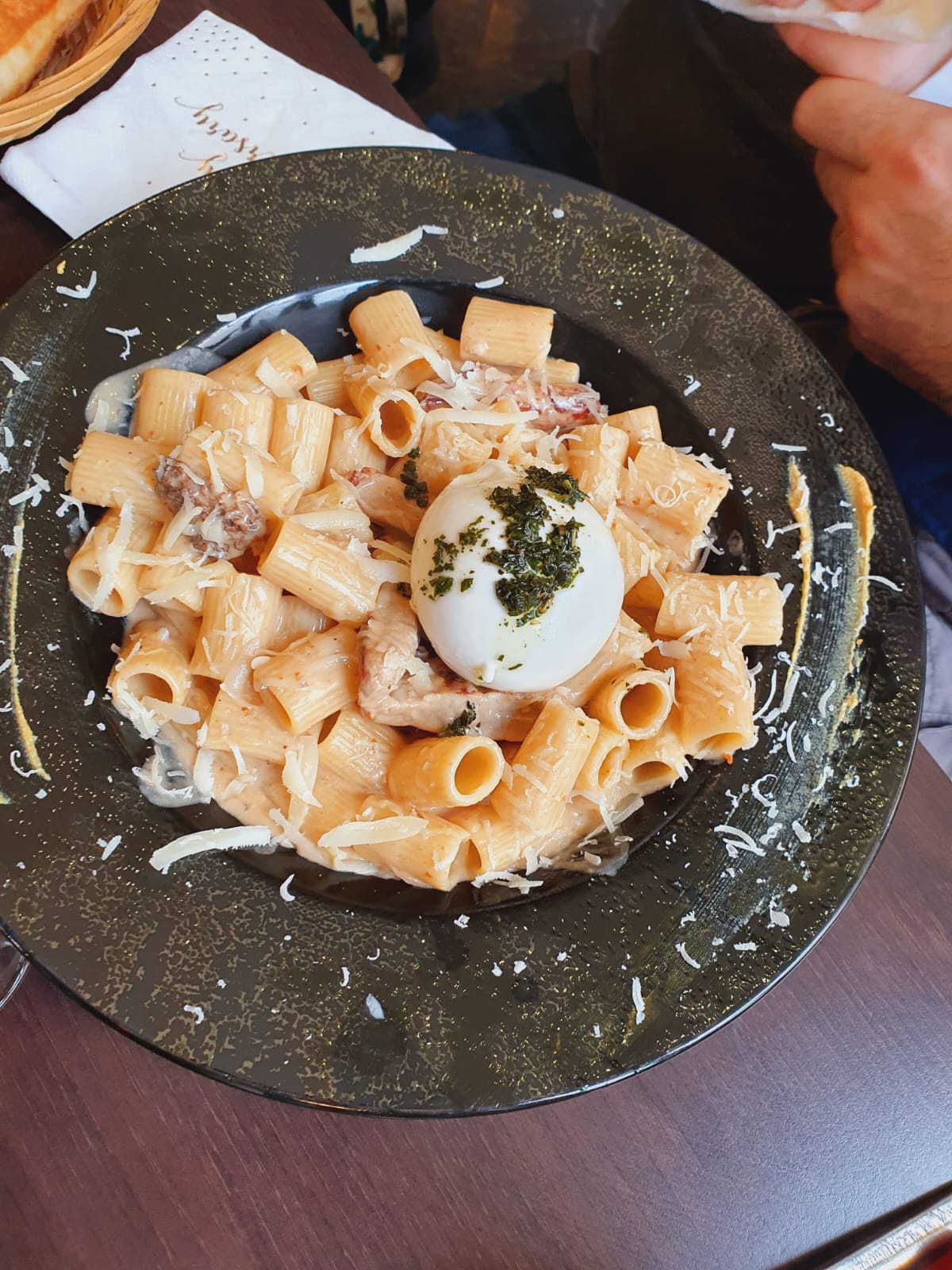 Cuisine sympa les pâtes à la rabbiata sauce tomate 🍅 fraîche exxxtttrrra bien relevées mais pas trop et celles au gorgonzola sont très bonne aussi le personnel est très gentil et pas trop d attente, servi en moins d une heure pour le déjeuner parfait rapport qualité/prix bien