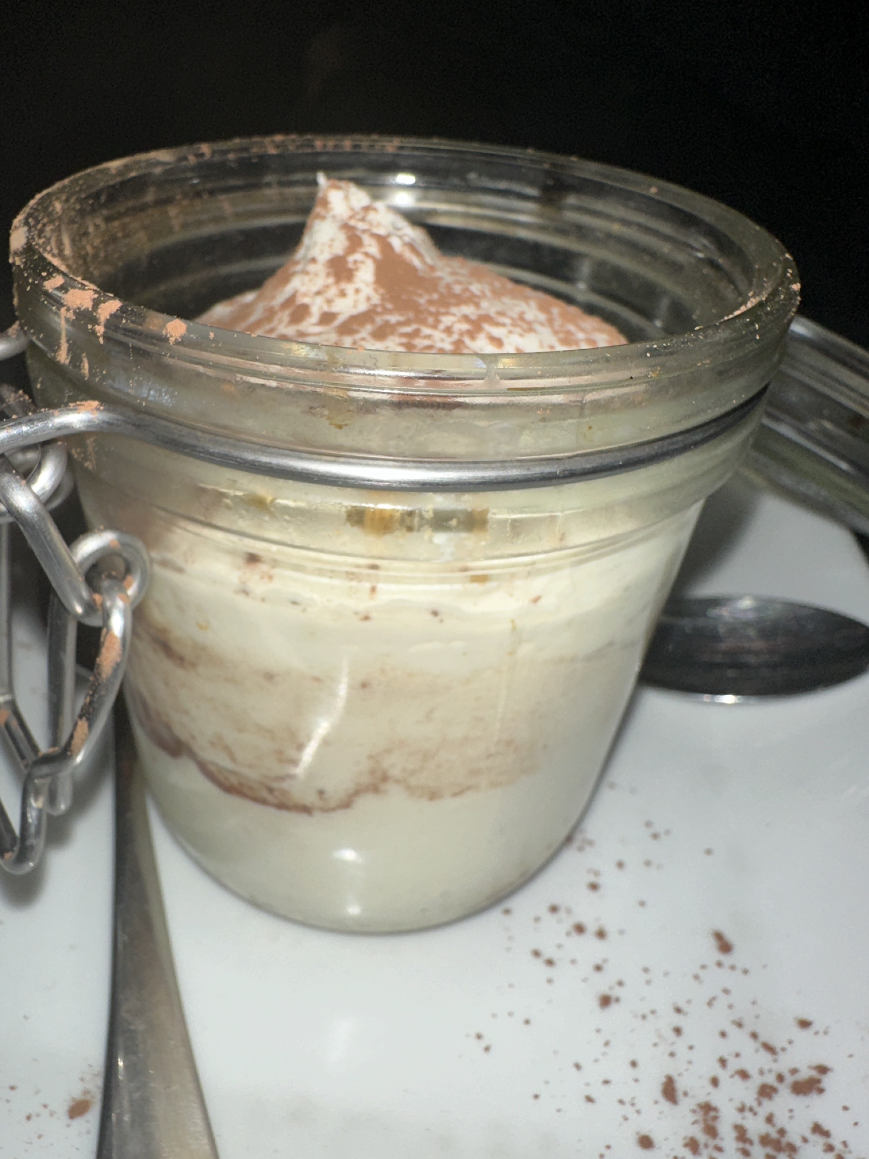 Commande sur service de livraison à domicile : salade très gourmande et copieuse j'ai adoré. Par contre le tiramisu n'est qu'un récipient rempli de crème chantilly