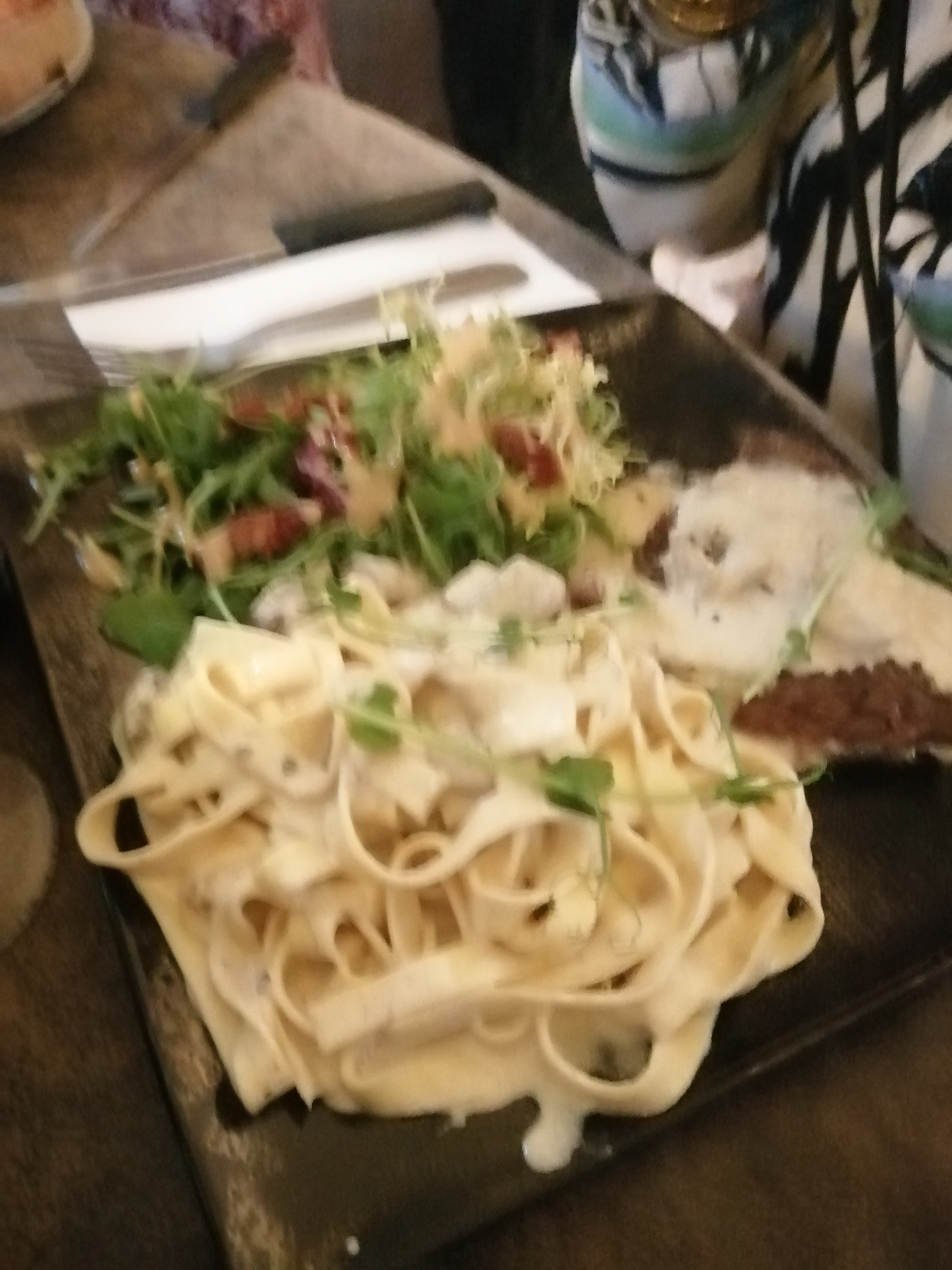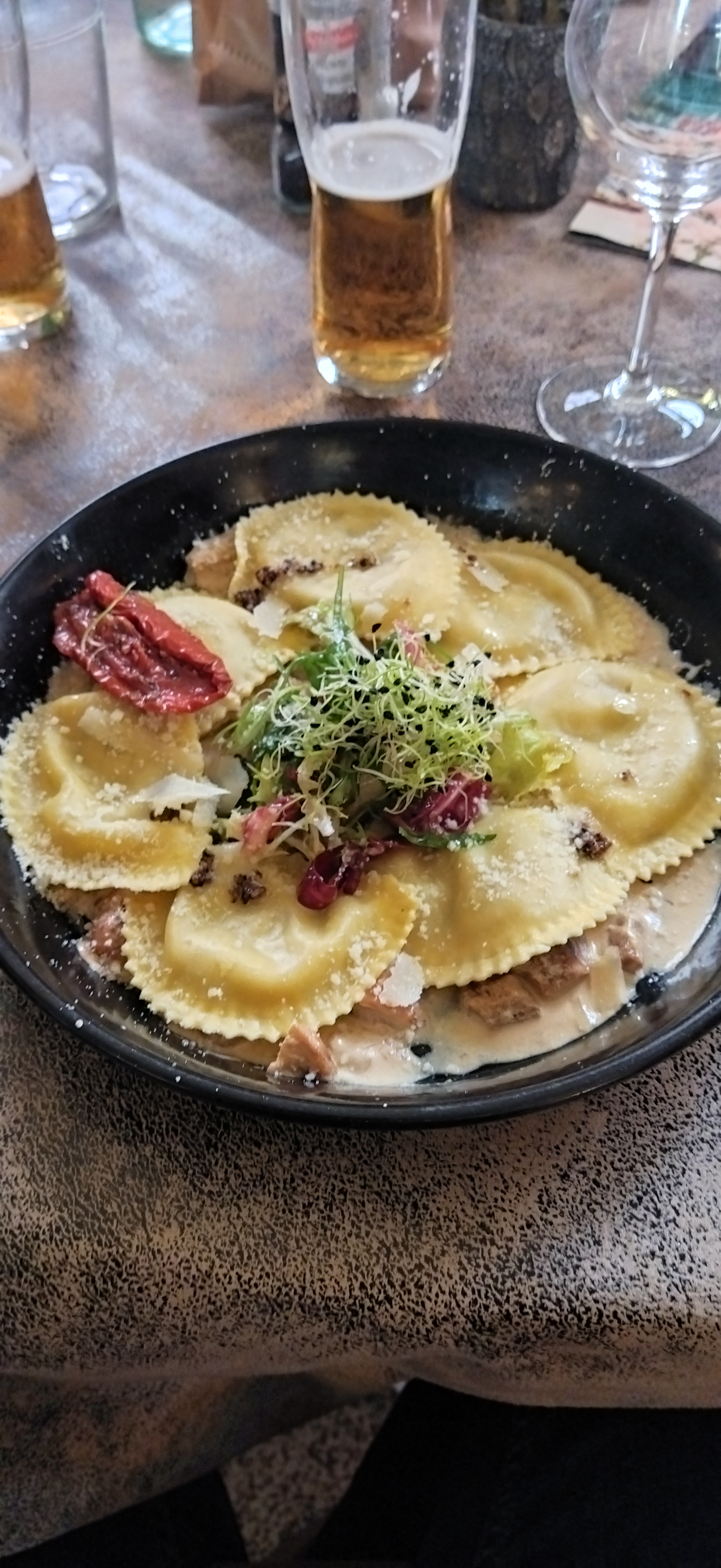 Un super restaurant italien avec un joli décor . Malgré certains avis qui disait que le temps d’attente était trop long pour nous ça n’a pas été le cas .. tout est allé vite .. Nous avons pris des pâtes, toutes les deux étaient très bonnes mais pour les amateurs de truffes n’hésitez pas à prendre les raviolis, un vrai délice !! Un personnel agréable .. une bonne adresse à Narbonne.