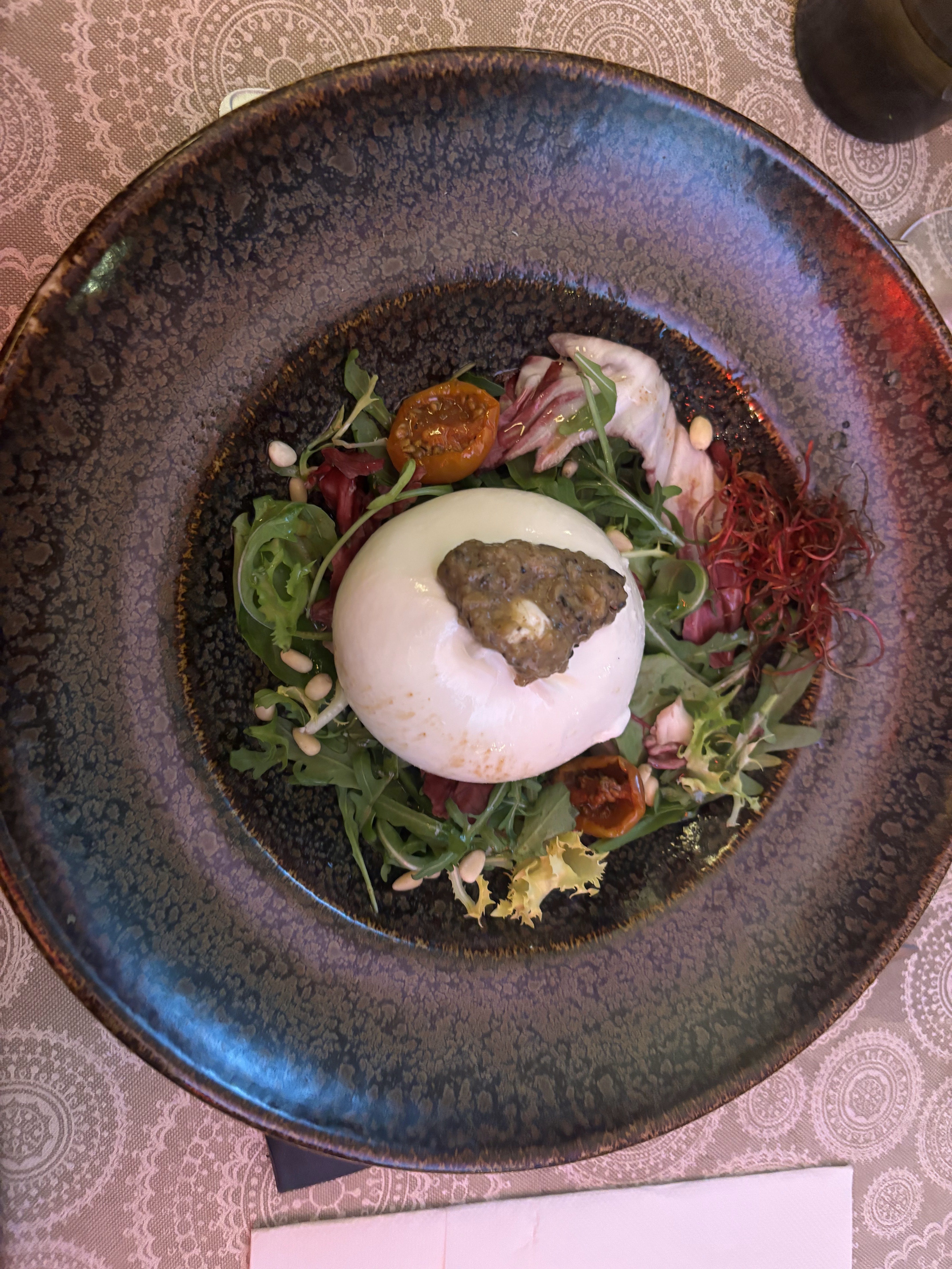 Jambon Serrano de mauvaise qualité, tranche épaisse. Entrée avec une burata qui est au final une mozzarella, servi en soupe sans cuillère. Serveuse pas aimable pour un sou. En plat les pâtes arabiata sans goût, une sauce en boîte au super marché est meilleure. Le pain a table catastrophique. La nappe avait des tâches énormes sur les bords qui datait de je ne sais quand. Je n'ai pas d'avis sur les desserts ni le café je n'ai pas voulu tenter le diable. A trois personnes 110€ pour ça . Si vous voulez manger un italien a Narbonne allez a la jument verte ou au Bella Napoli c'est nettement mieux. Passez votre chemin sauf si vous esperez croiser Philippe Etchebest en tournage
