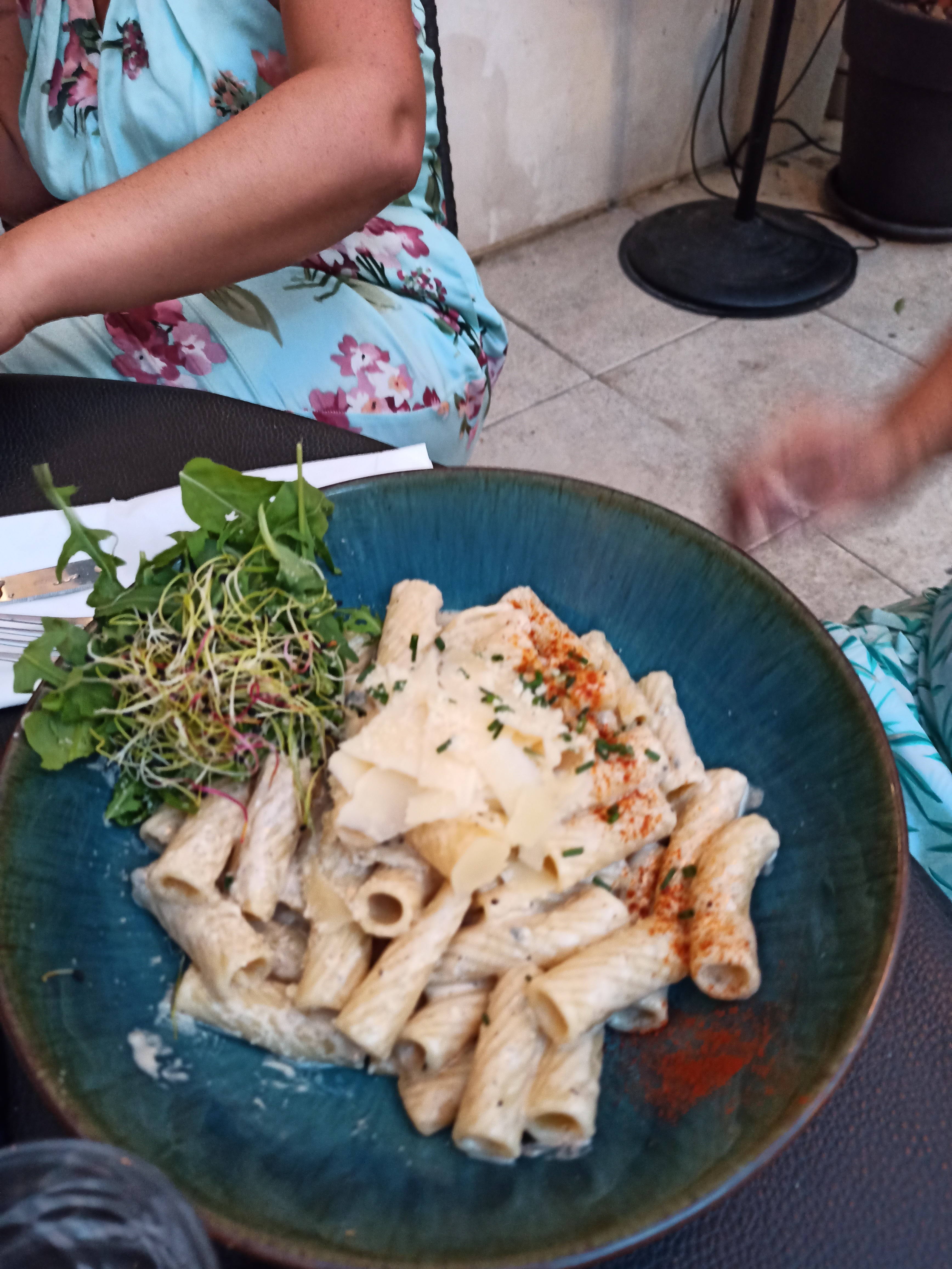 Comme nous n'avions pas réservé, nous n'avons pas pu manger en terrasse car celle-ci était complète d'après le serveur mais quasiment vide à notre arrivée. Nous aurions dû partir manger ailleurs mais nous avions déjà passé notre commande et la chaleur était à notre arrivée presque supportable. Un jeune serveur a voulu mettre en route un climatiseur mais la responsable de salle l'en a dissuadé prétextant qu'il n'y avait pas de prises alors que plus tard nous en avions vu. A 21h nous avons trouvé préférable d'aller prendre notre dessert ailleurs compte tenu de la chaleur à l'intérieur alors qu'une bonne partie de la terrasse était toujours vide. Il était largement possible de faire 2 services comme c'est le cas dans un restaurant où le personnel est organisé ! Pour ce qui est du repas, les pâtes étaient bonnes mais le vin lumbrosco avait un drôle de goût. Nous aurions dû lire les nombreux avis qui déconseillés cet établissement.