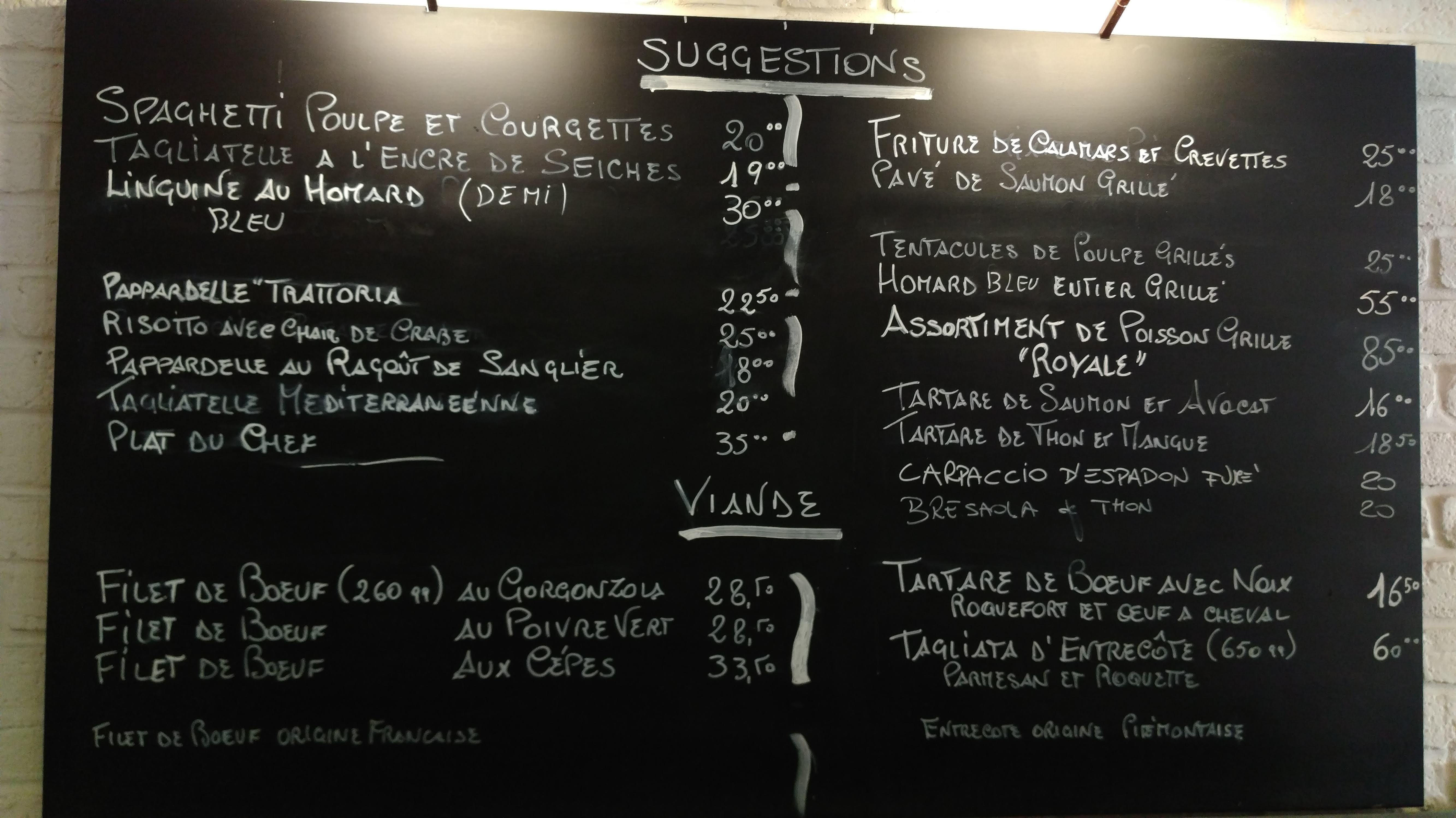 Cuisine italienne (des siciliens sont aux fourneaux) copieuse et très bonne. Les desserts valent aussi le détour. Les serveurs sont souriants et aux petits soins. Banquettes et chaises confortables. Les plats 15 -35€, desserts 6-12€. Pensez à réserver au moins 2j avant en cas de Fête ou évênement spécial.