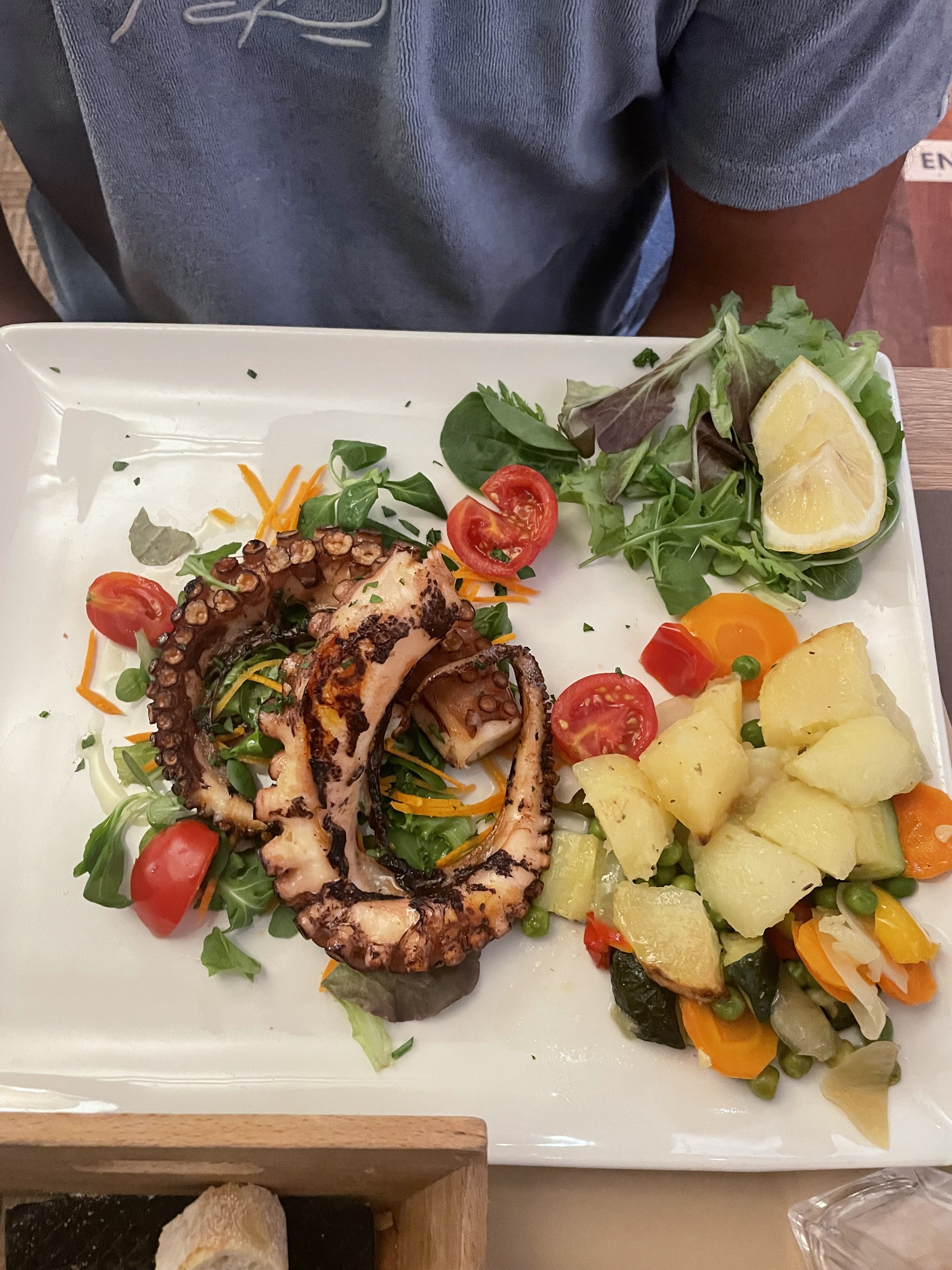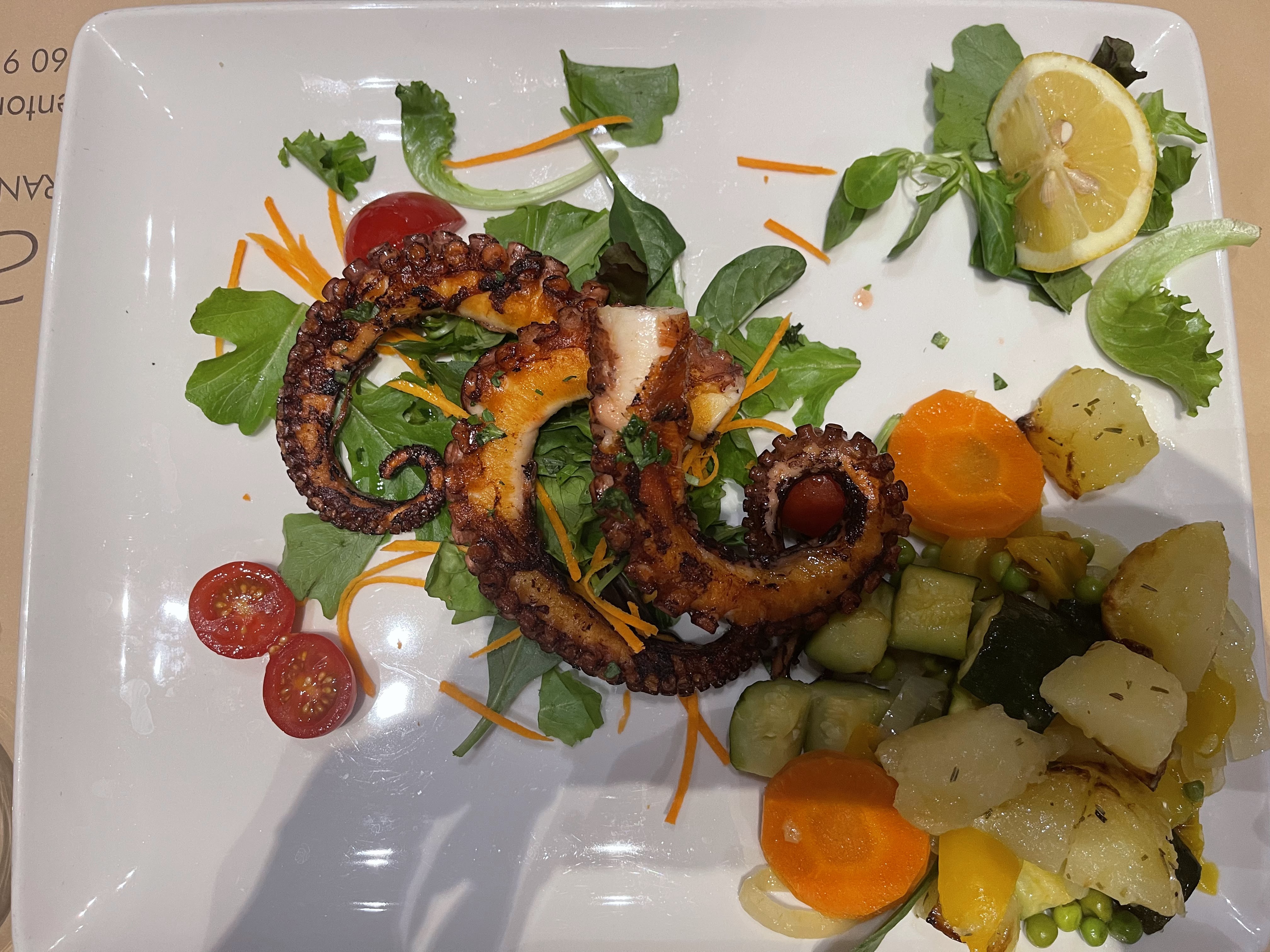 Au top, en tout point de vue. Les pâtes fraiches aux poulpes un régal, et bien copieux. La tarte au citron, sublissimo, légère, parfumée. J en aurais bien pris une 2e. L'escalope xxl prise par mon épouse bien croustillante mais trop xxl, la moitié est rentré avec nous et nos toutous en sont régalés. Café gourmand au top. Allez dans ce restaurant les yeux fermés vous ne serez pas déçu.