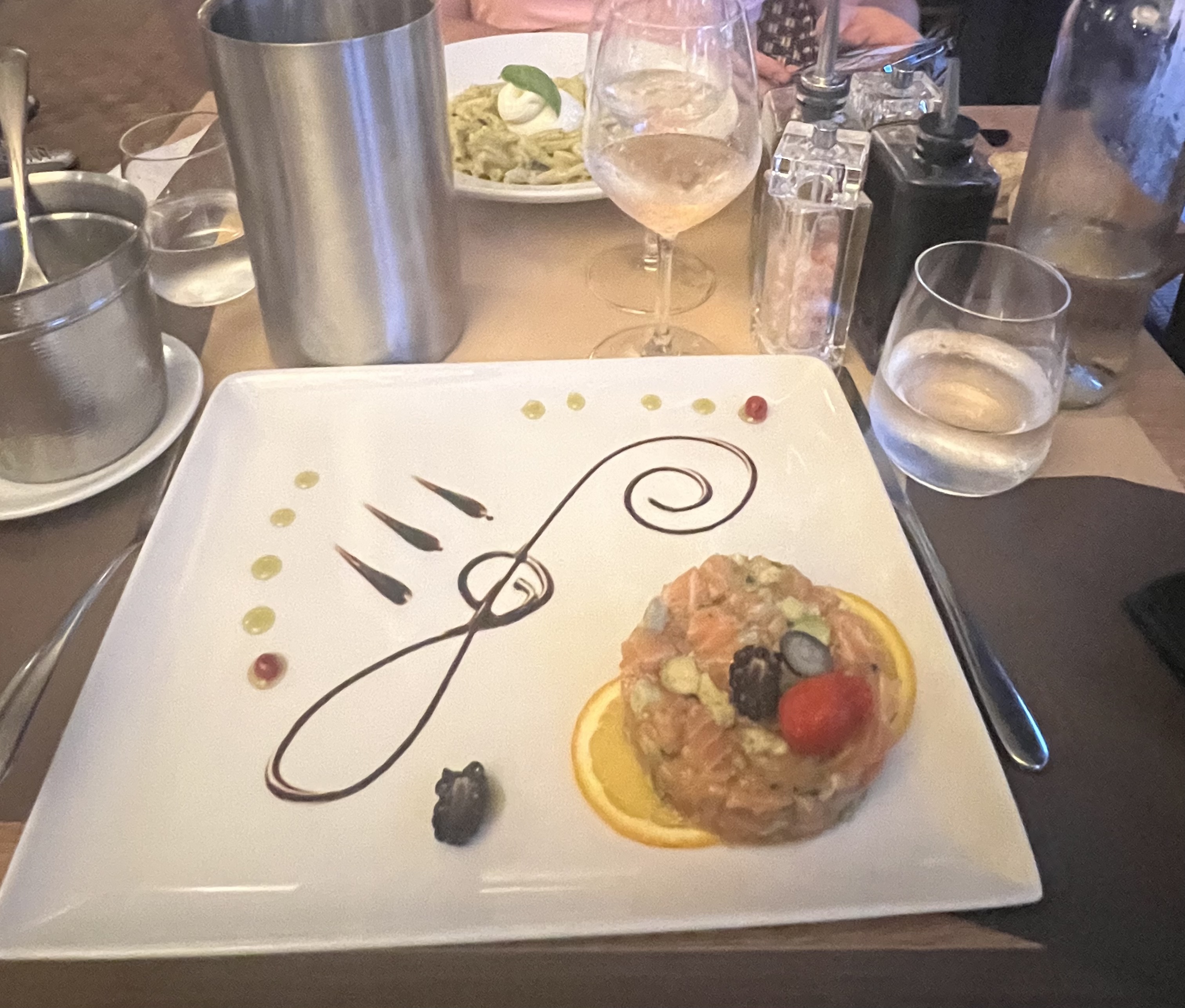 Super découverte! Restaurant italien de qualité en plein centre. Un repas fin délicat et délicieux. Contrairement à ce qui est écrit, le tartare était servi avec frites et salade sans supplément. La surprise c'est le limoncello offert Je reviendrai .