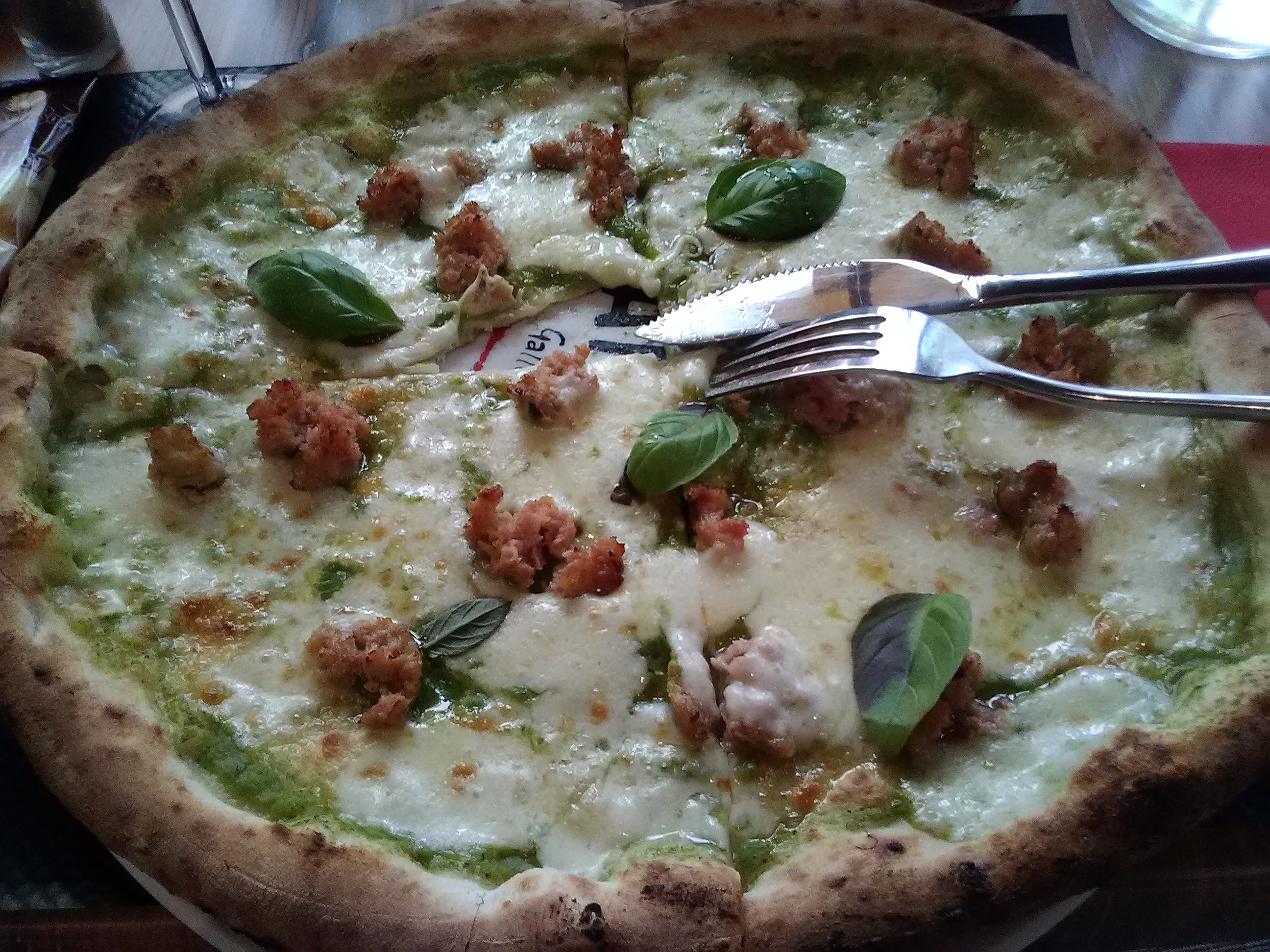 Excellente pizza très copieuse (base crème pour ma part) avec supplément saucisse italienne, à tomber! Dans une très bonne ambiance personnel souriant sur fond de musique italienne, le tout pour bien voyager !