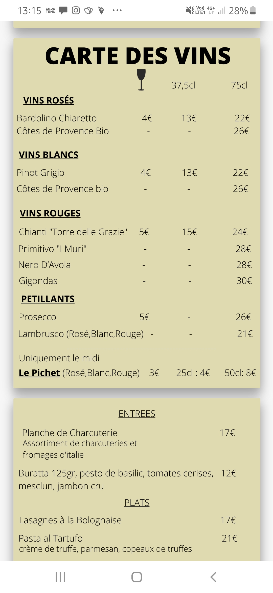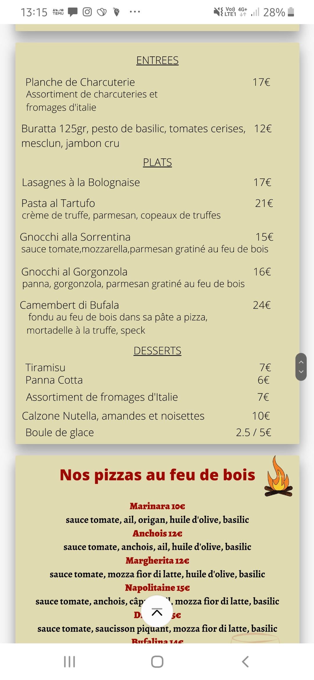 Des pizzas excellente (au feu de bois) mais pas que ... Ce restaurant propose aussi des plats du jours variés autour de la restauration italienne mais également des lasagnes, gnocchis etc Le personnel est très agréable 😊 je recommande vivement !