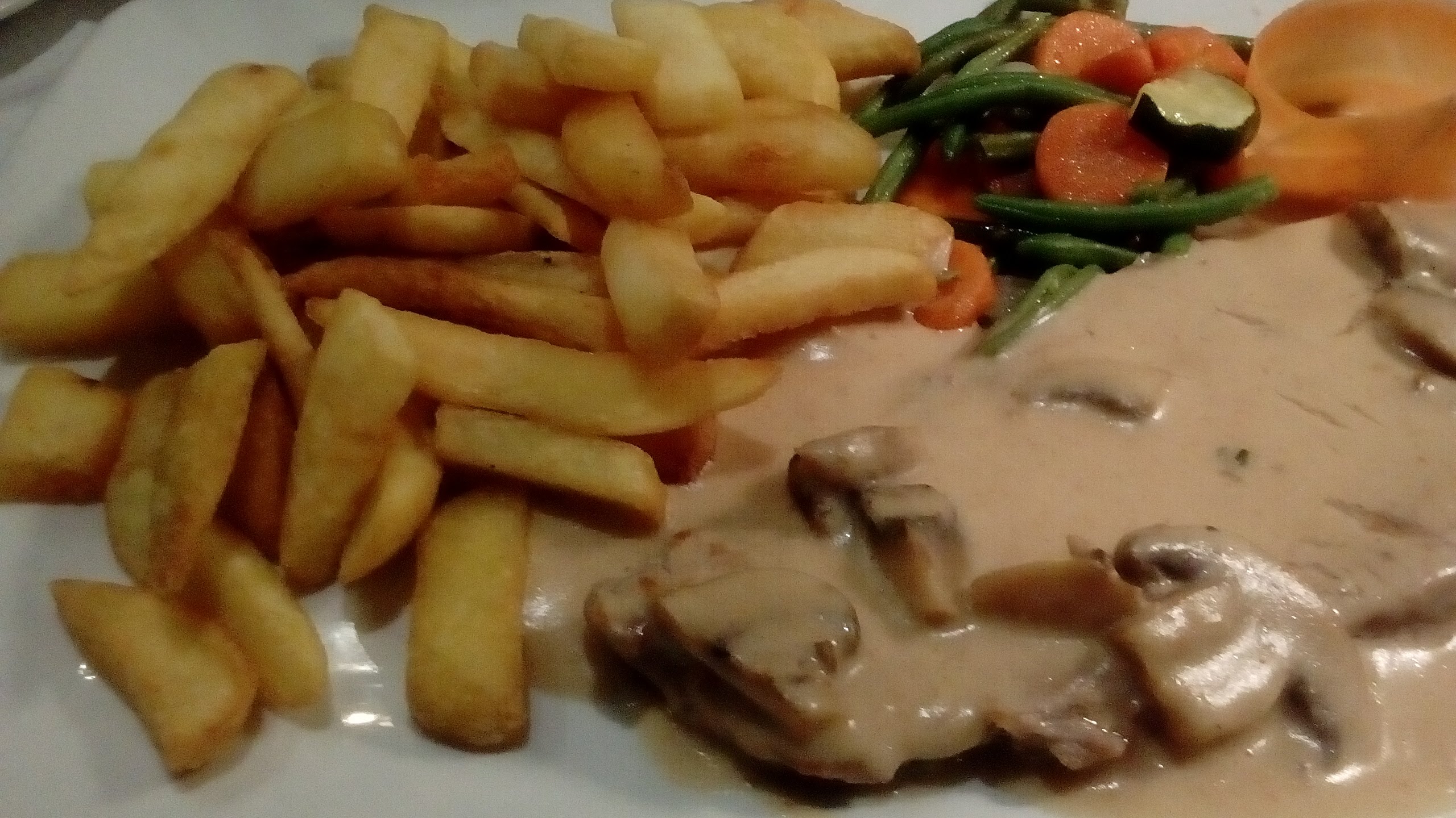 Service: très rapide, trop rapide. Repas: Nous avons pris veau à la crème: présentation style cafétéria , viande mince et dure. Repas tiède. Salade : sans goût … SVP passez votre chemin: tous les autres restaurants semble meilleurs !!