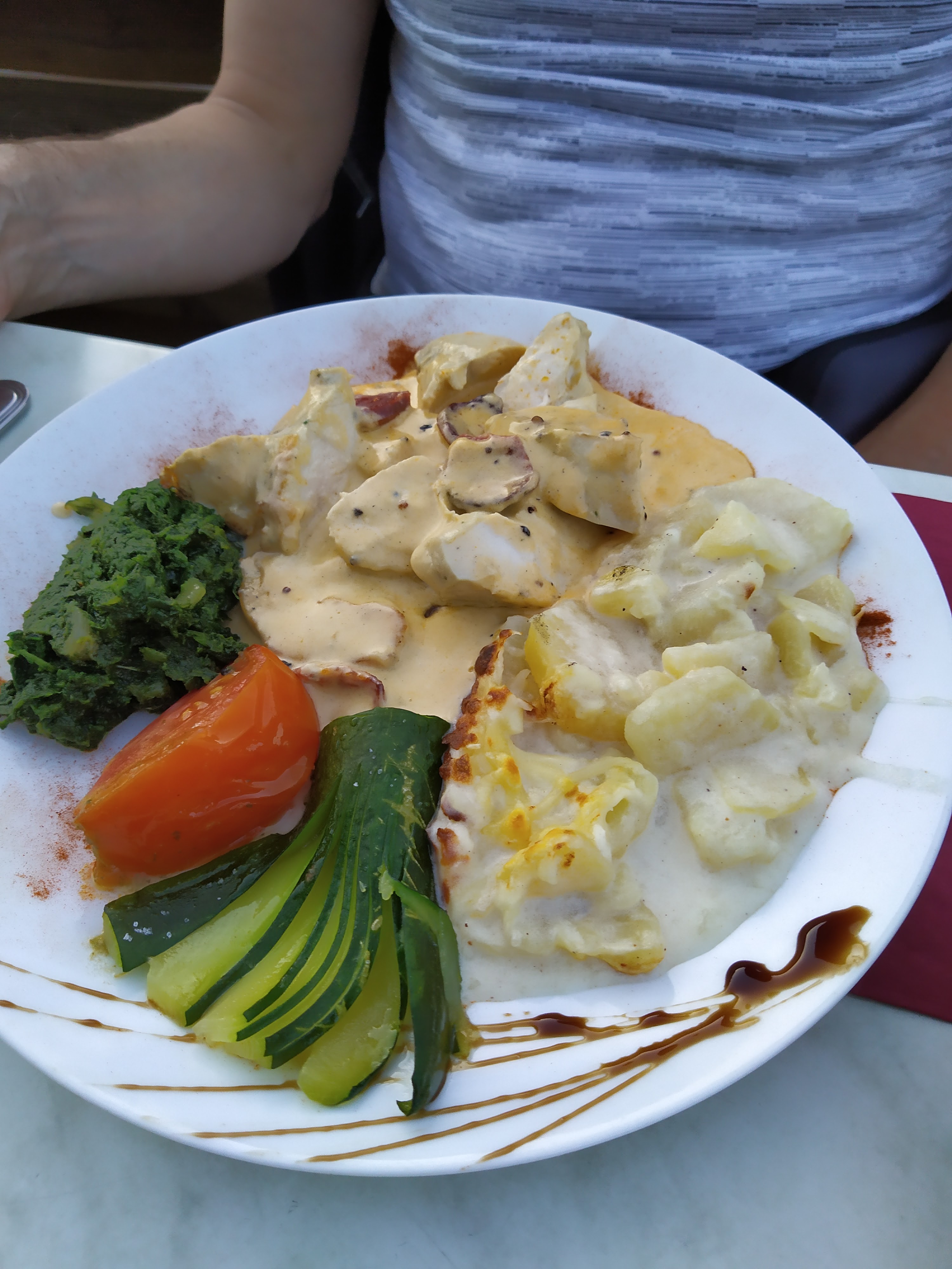 Accueil chaleureux. Copieux et bon,petit bémol il y avait des glaçons dans la glace.