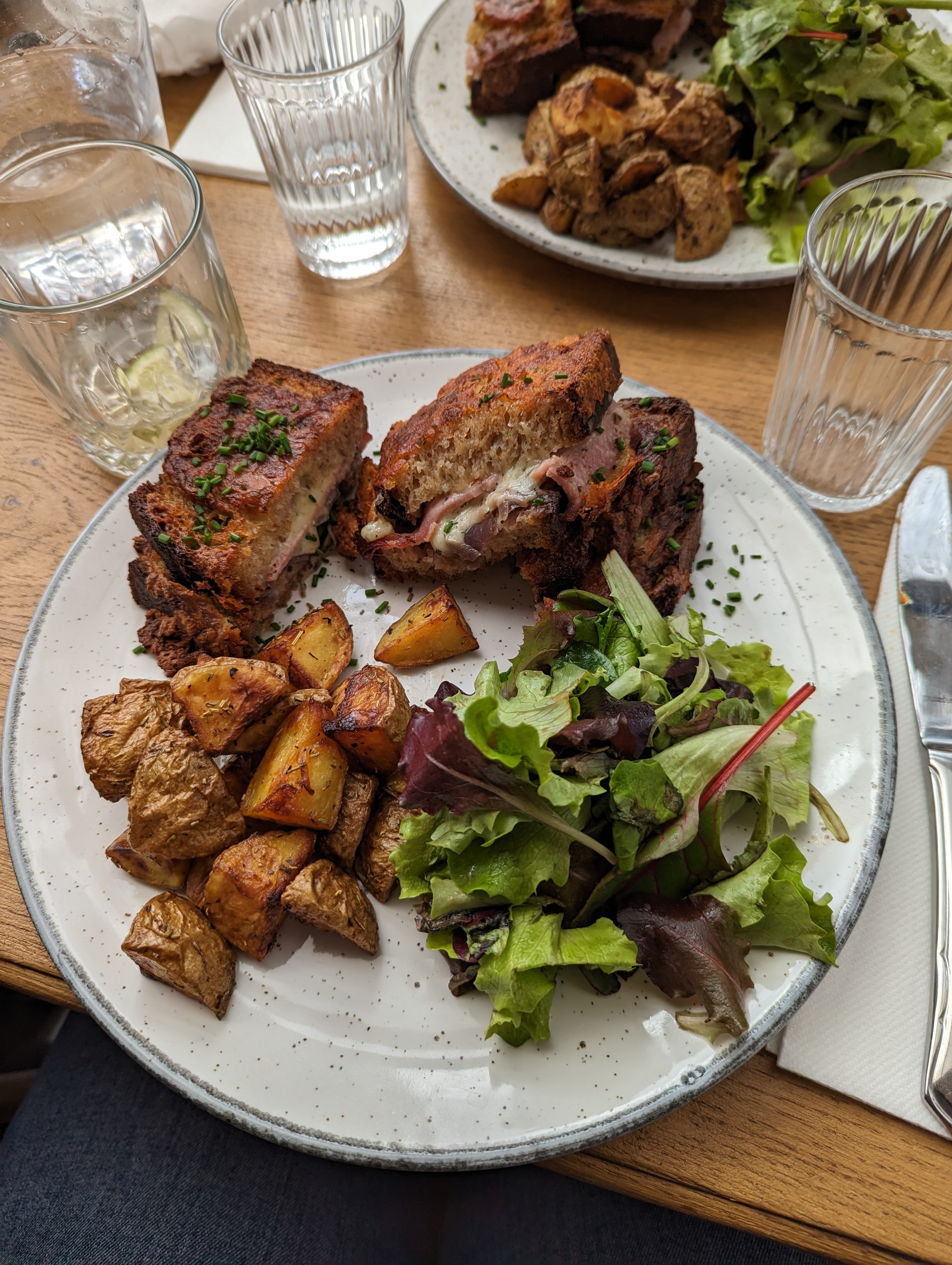 Une bonne adresse clichoise à tester sans crainte. Un Pain pita maison garni avec de l'agneau, yaourt, oignons pickles, salade de légumes, fêta et pomme de terre grenailles accompagné d'un verre de rouge du moment conseillé par notre serveuse. Un super service attentionné qu'il faut également souligner. Enfin, un cheesecake citron vert, à la taille généreuse, dont l'acidité contre balance parfaitement le côté écoeurant que peut avoir le cheesecake. Un sans faute !
