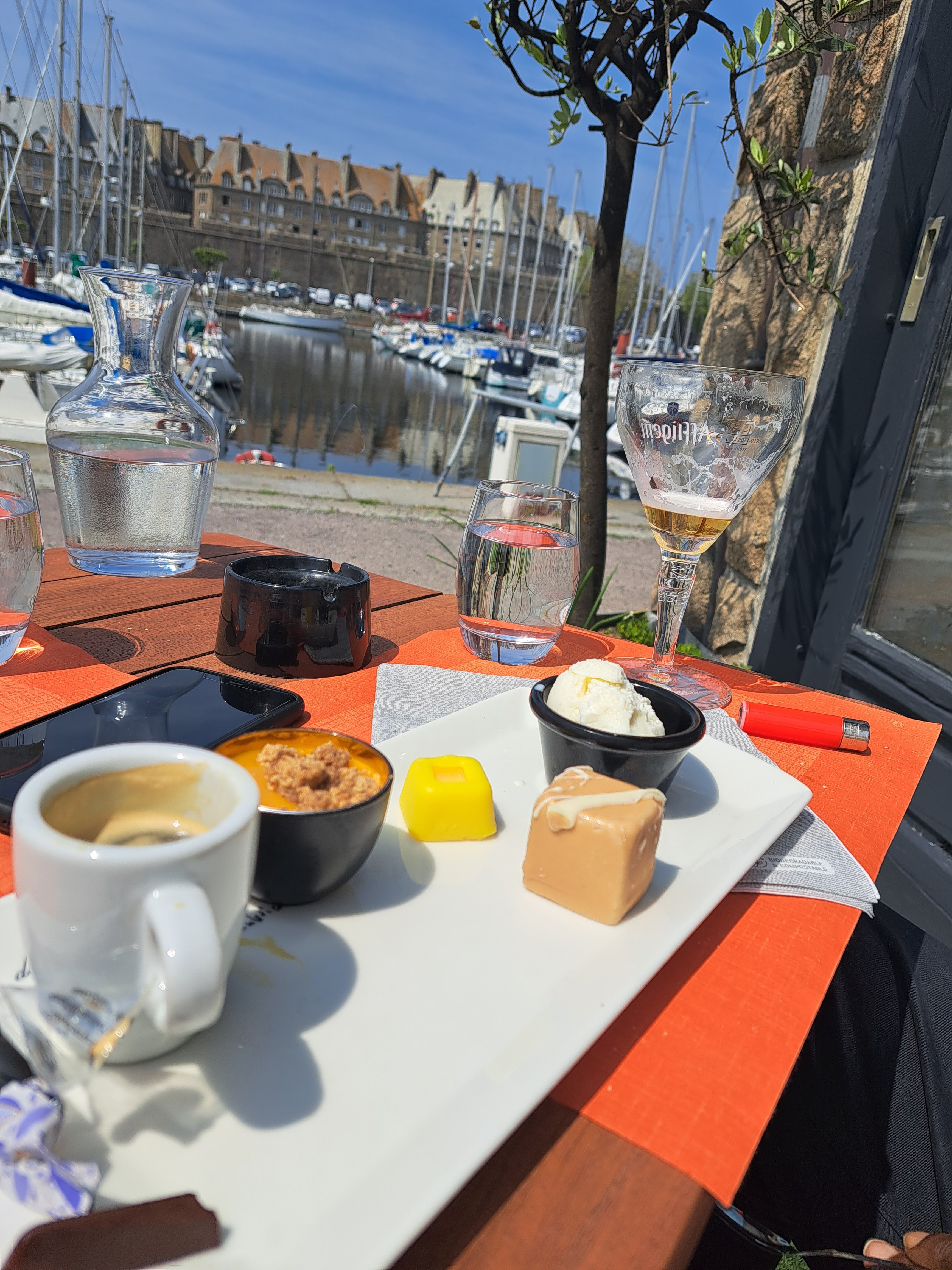 Un repas très sympa avec vue sur le port et en arrière plan les ramparts de St Malo