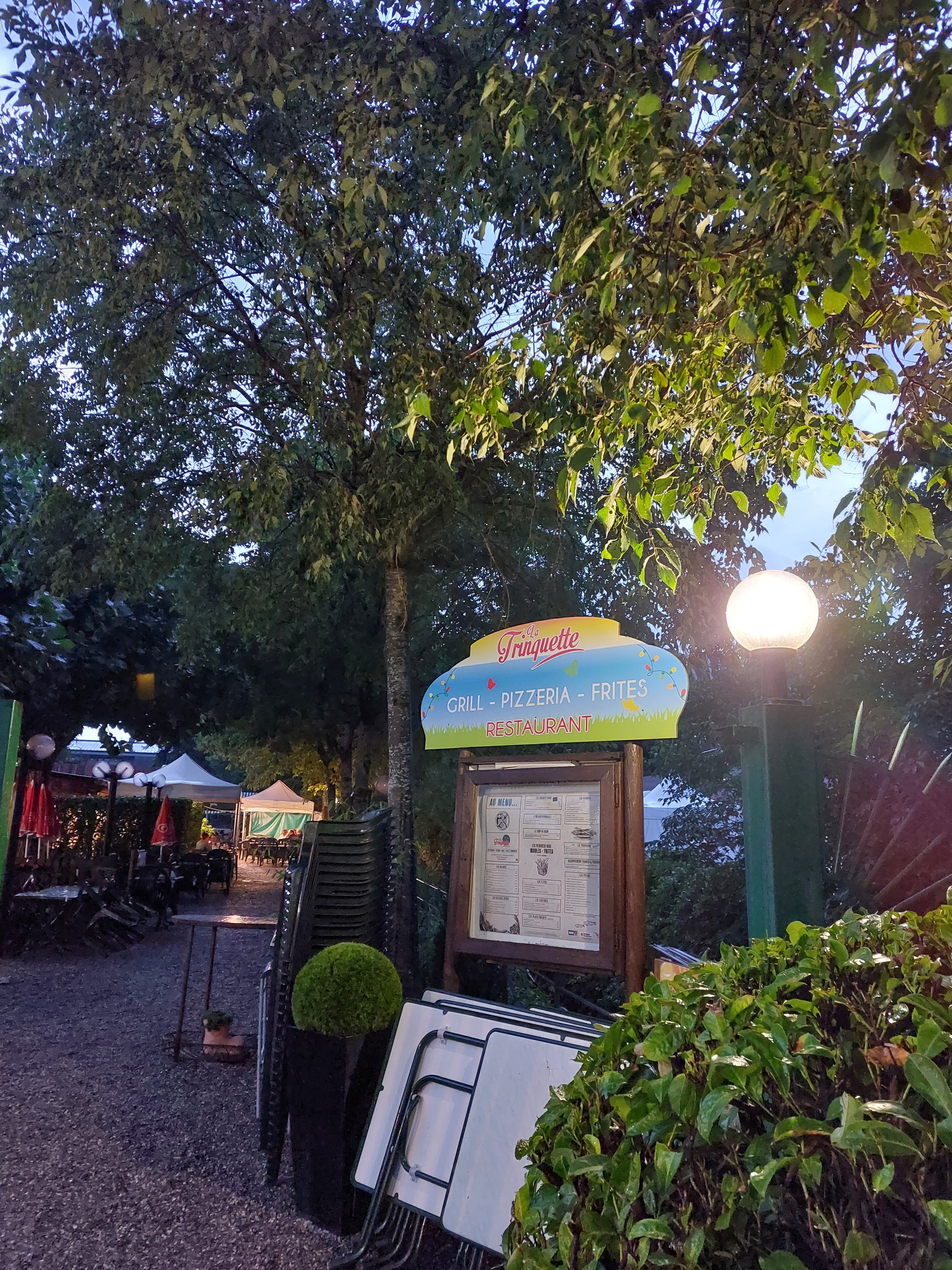 L'esprit guinguette ou plutôt camping juste en face de la plage d'Albigny, avec ses chaises en plastique et des tables bancales. En pleine saison, c'est complet et il vaut mieux avoir réservé. Les tables sont serrées et les voisins parlaient plutôt fort avec en prime la fumée de cigarette. Ne parlons pas de la vue sur la tente qui fait office de WC. Le tartare de saumon était plutôt bon mais la pizza était vraiment trop sèche avec ses grands morceaux de poulet. Expérience mitigée cette fois-ci.