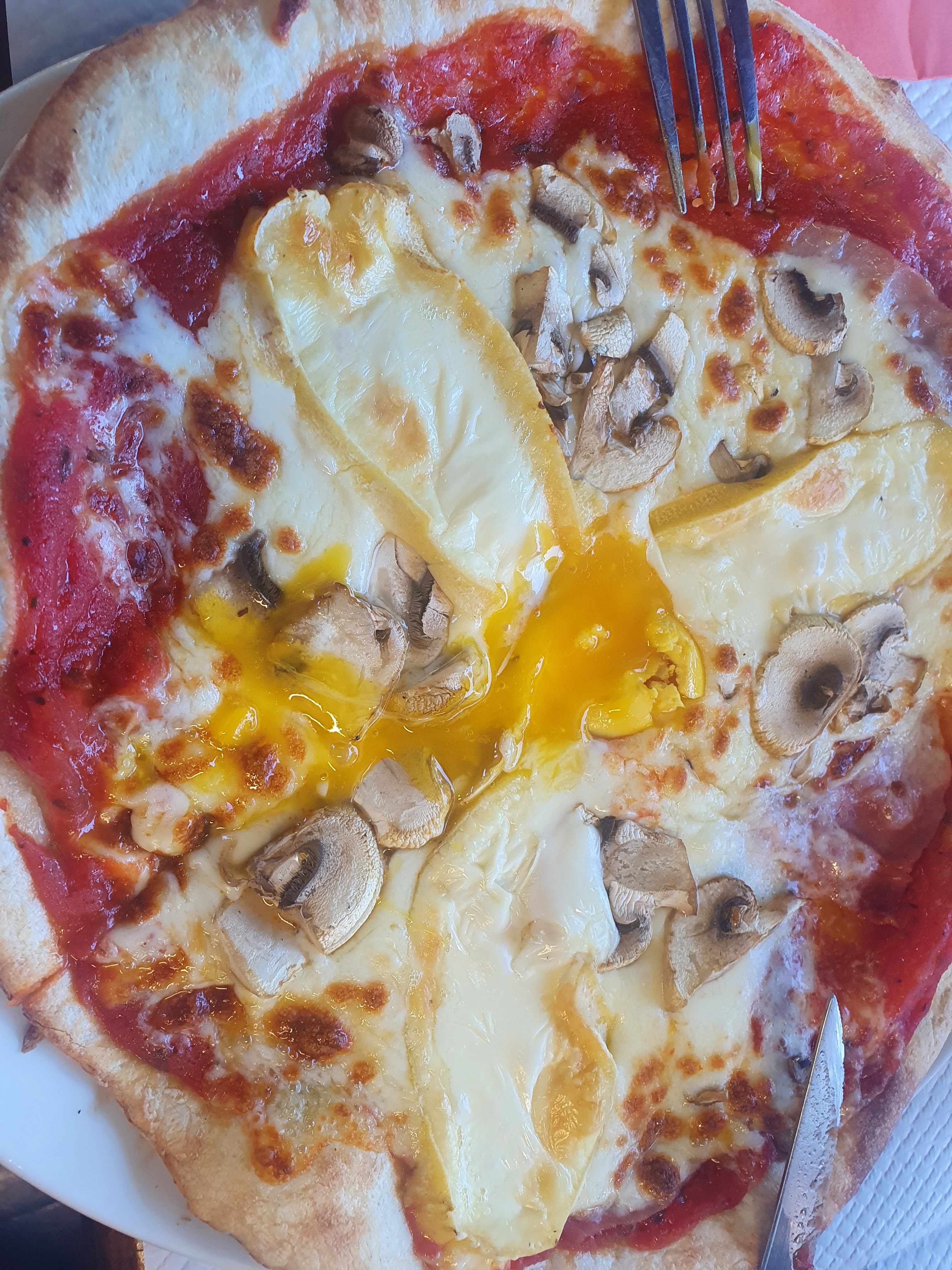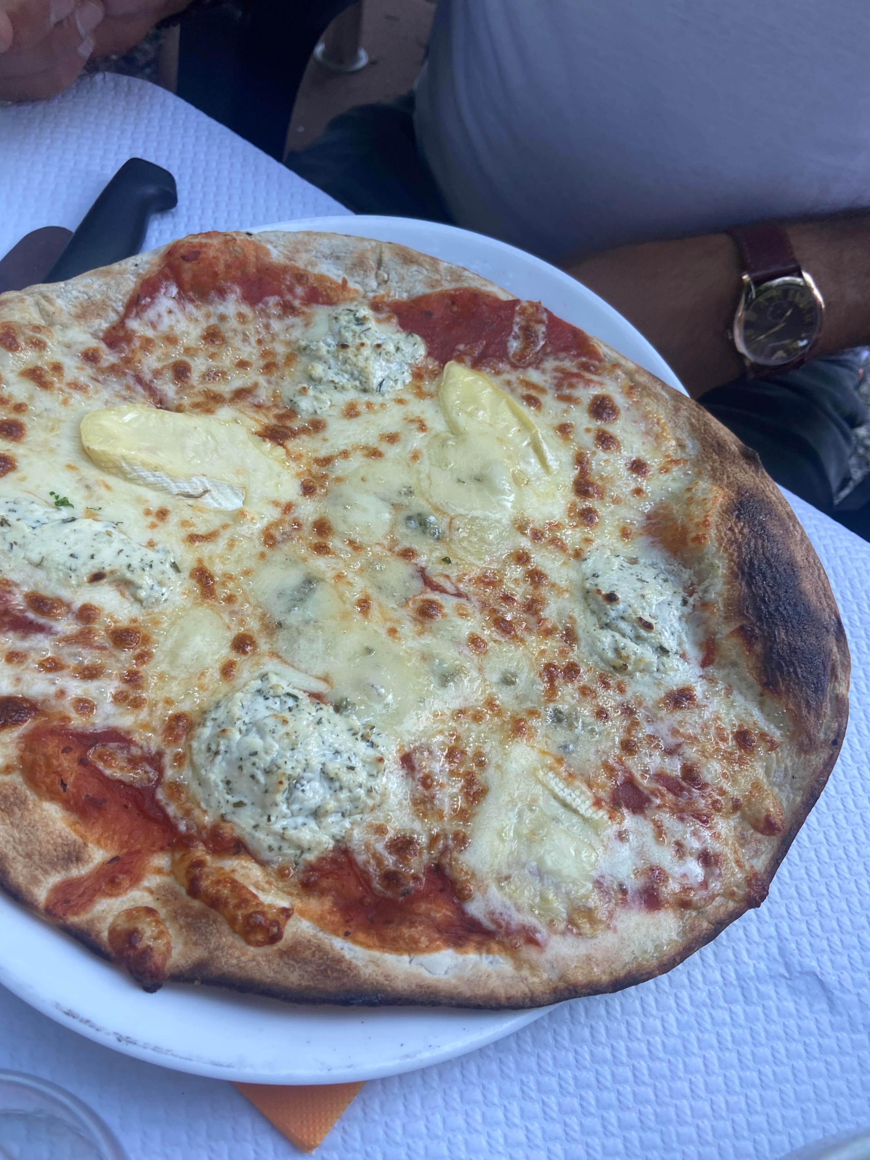 Horrible experience. On commande des spritz qui étaient composés uniquement d’apérol d’eau. Après s’être plaint au serveur on nous les enlève de la note. Ce qui prouve qu’ils n’avait pas de Prosecco sinon ils les auraient refais. Ma pizza reine arrive… avec un bol de frites. On me dit que c’est une compensation pcq il n’y a plus de champignons. Mais pourquoi ne pas me l’avoir dit avant ? Dernière surprise et non des moindres, le jambon de la pizza était taché de bleu. Évidement je ne l’ai pas mangé. Vraiment désolé de laisser un commentaire pareil mais la c’est trop