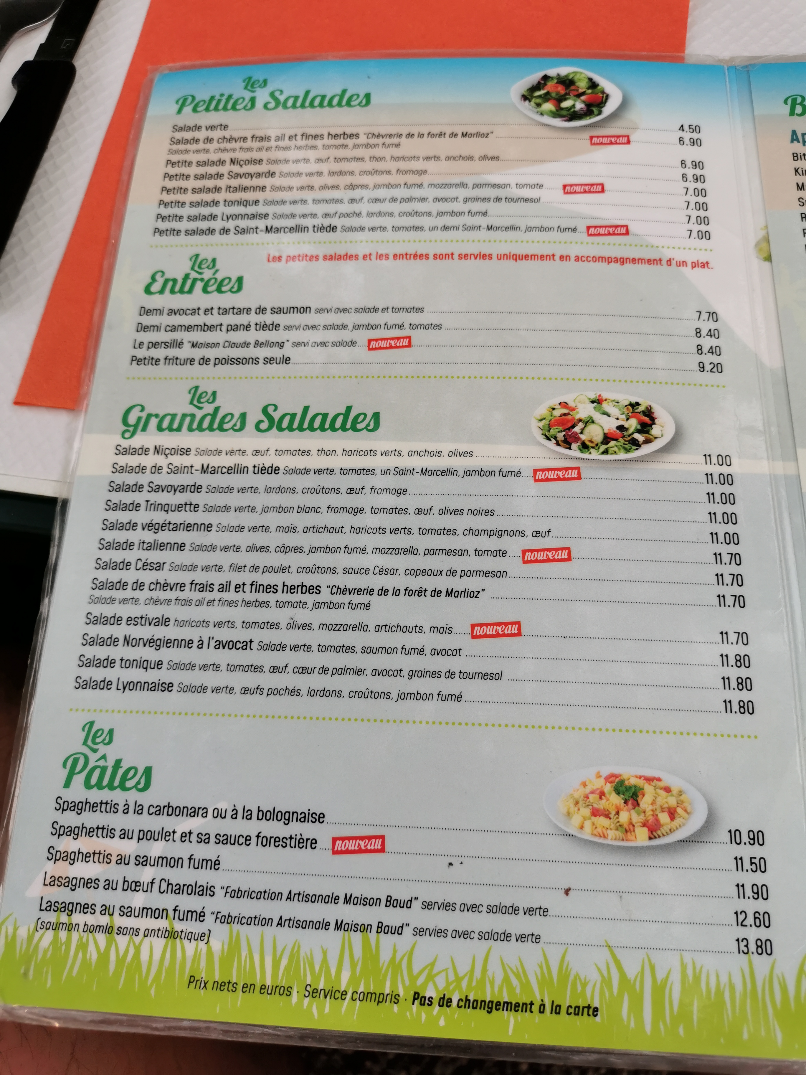 Nous rentrons de la trinquette et ce restaurant que nous apprécions beaucoup ( amabilité des serveurs, rapidité du service) a perdu beaucoup en qualité et devient un attrape touriste. Une salade avec 90% de salade non ensaucée, une cuillère de frites, 1/3 de tomates et un peu de fromage de chèvre 15€80. Nous habitons Annecy et les remarques que nous avons fait au patron lui ont passé par dessus la tête Nous n’y retournerons pas. Dommage….