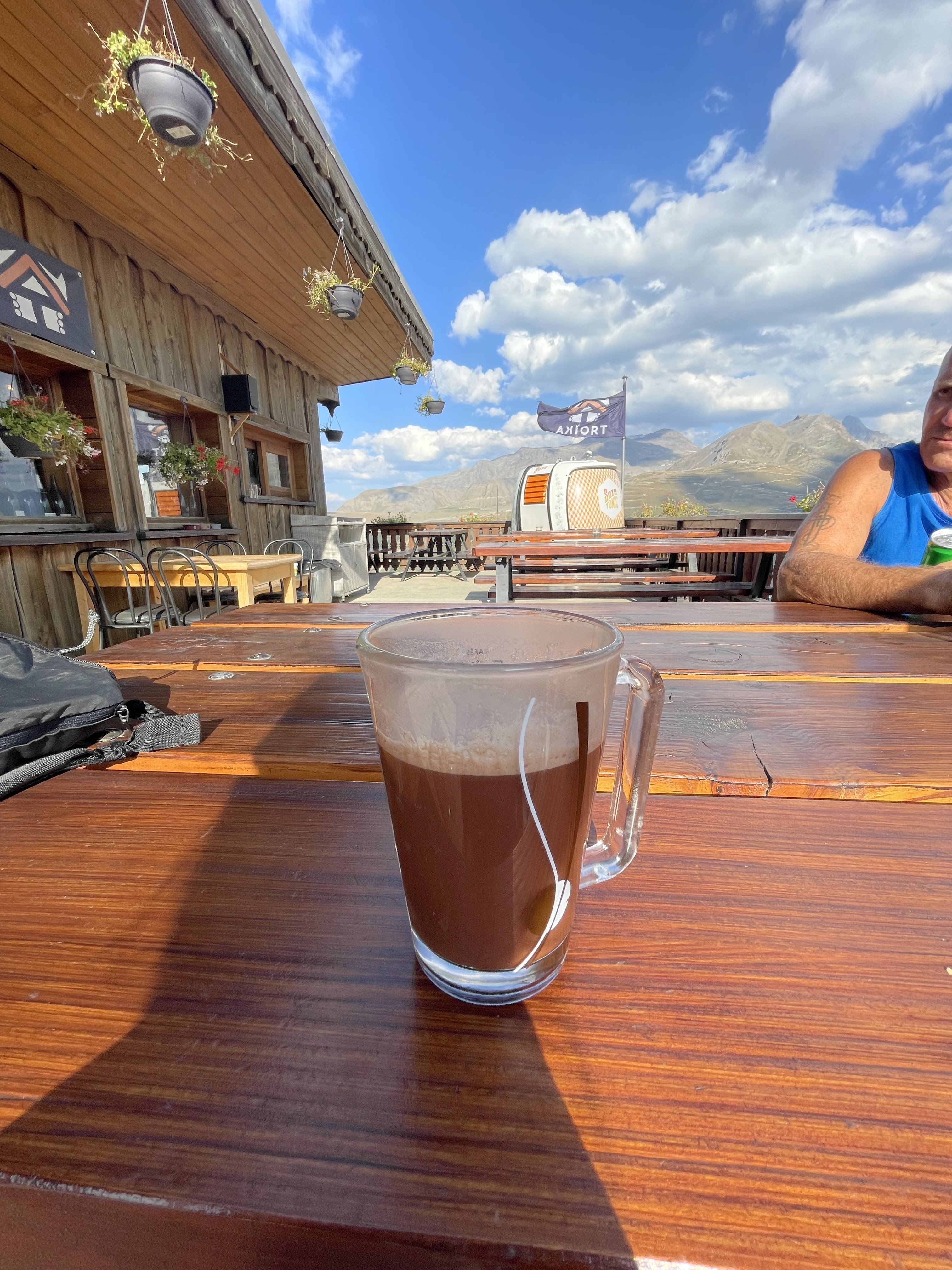 Après notre randonnée, nous avons pris des boissons à la Troïka, aux Deux Alpes, Très jolie cadre au cœur des montagnes, A proximité des téléphériques, Ce qui était dommage, c’est que nous sommes arrivés au moment ils commençaient à fermer (fin août) Je vous conseille d’y faire un tour !