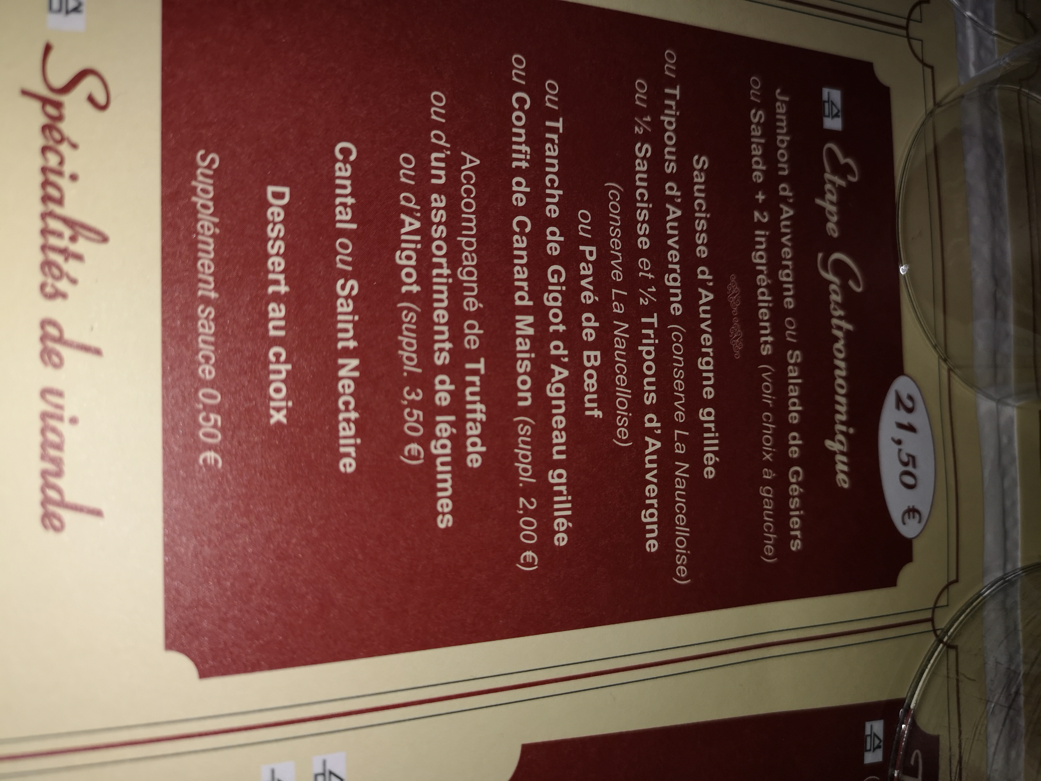 Cuisine faite maison, typique de l'Auvergne. Je conseille le menu gastronomique. C'est que c'est un peu plus cher, mais on a un bon rapport qualité prix