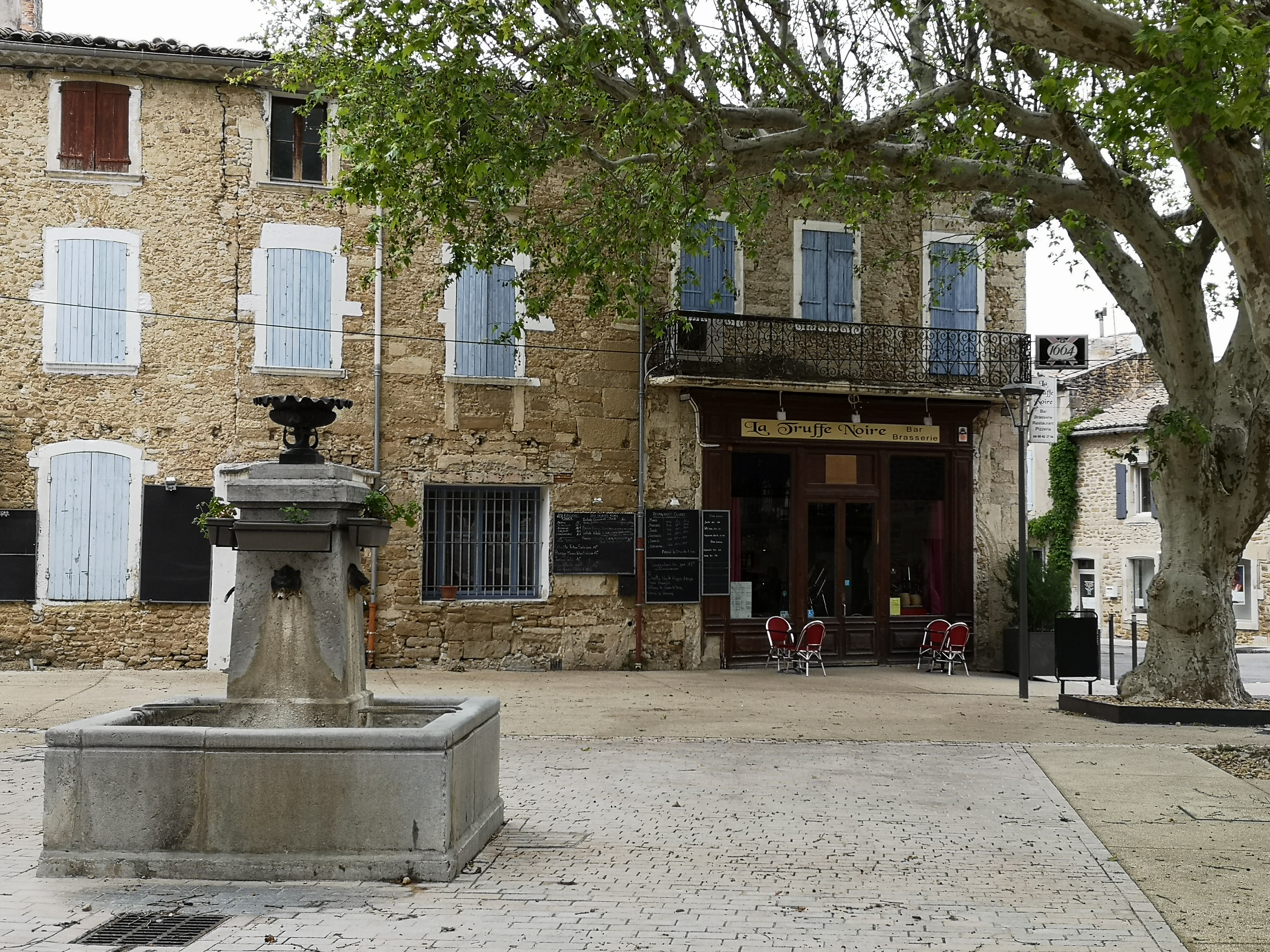 Un restaurant, sur une place dans un petit village de l' enclave des Papes (84) ,La truffe noire. Est ce le nom qui justifie le prix du plat du jour à 17 €... dommages.