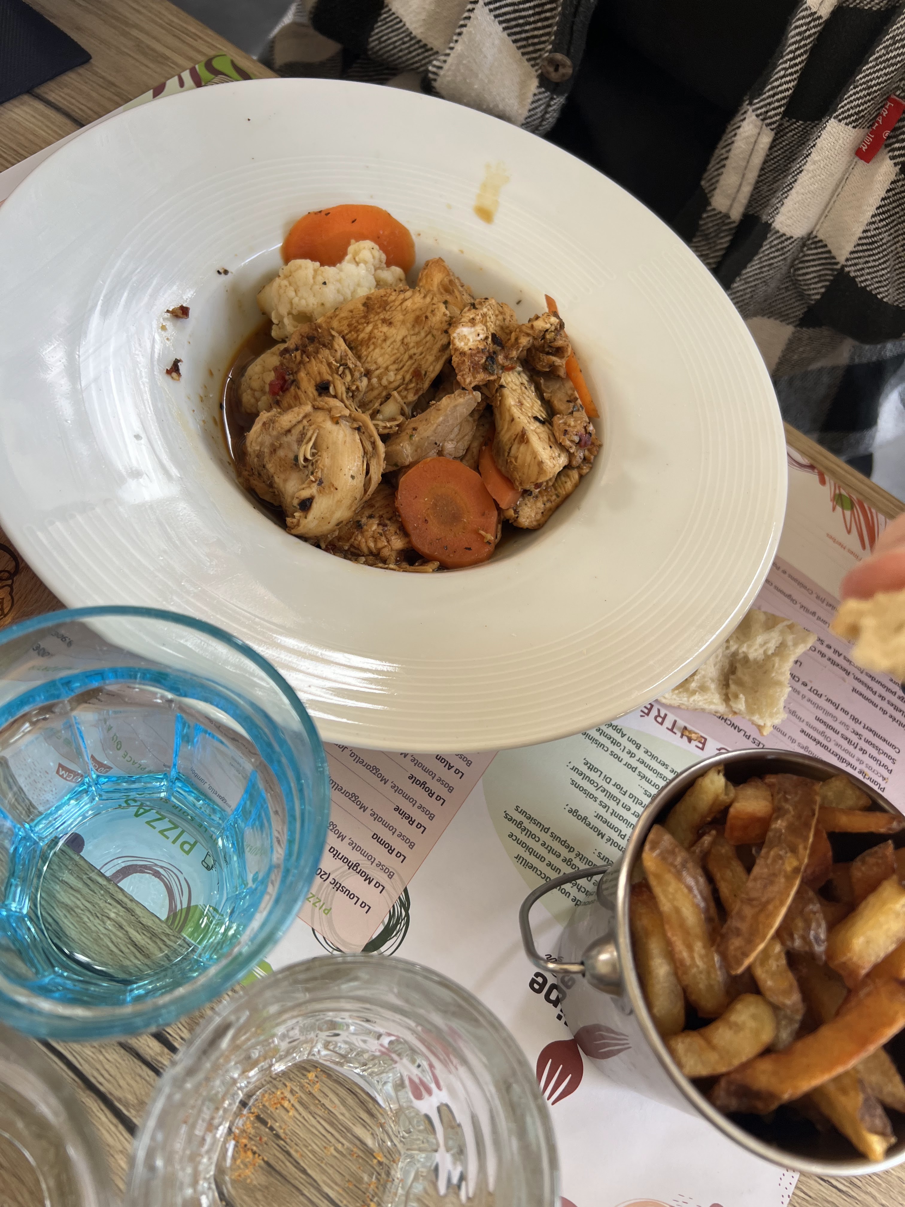 Serveur un peu à l’ouest, attente très longue, burger à point arrivé saignant, il aurait été bien de mettre les sauces du tartare à côté pour ceux qui aiment pas le piquant… c’était immangeable et j’ai l’habitude qu’on demande toujours donc j’ai pas pensé à le préciser. Frites bonnes Wok épicé mal assaisonné, 4 pauvres légumes.. Très sympa quand même pour le lieu..