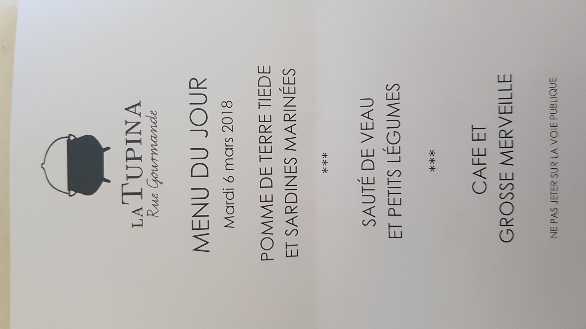 Cliente depuis longtemps la tupina a perdu en quantité et qualité. Verre de vin entre 6 et 8 euros. La merveille est devenue microscopique et n'a rien à voir avec ce que nous avions avant de plus la confiture avant à été remplacé par de la cerise. L'entrée une quiche n'avait rien d'extra le plat quand à lui était correct. Très déçu cela ne m'a pas donné envie de revenir. Une facture de 60 euros Cela a perdu de ça superbe. Dommage