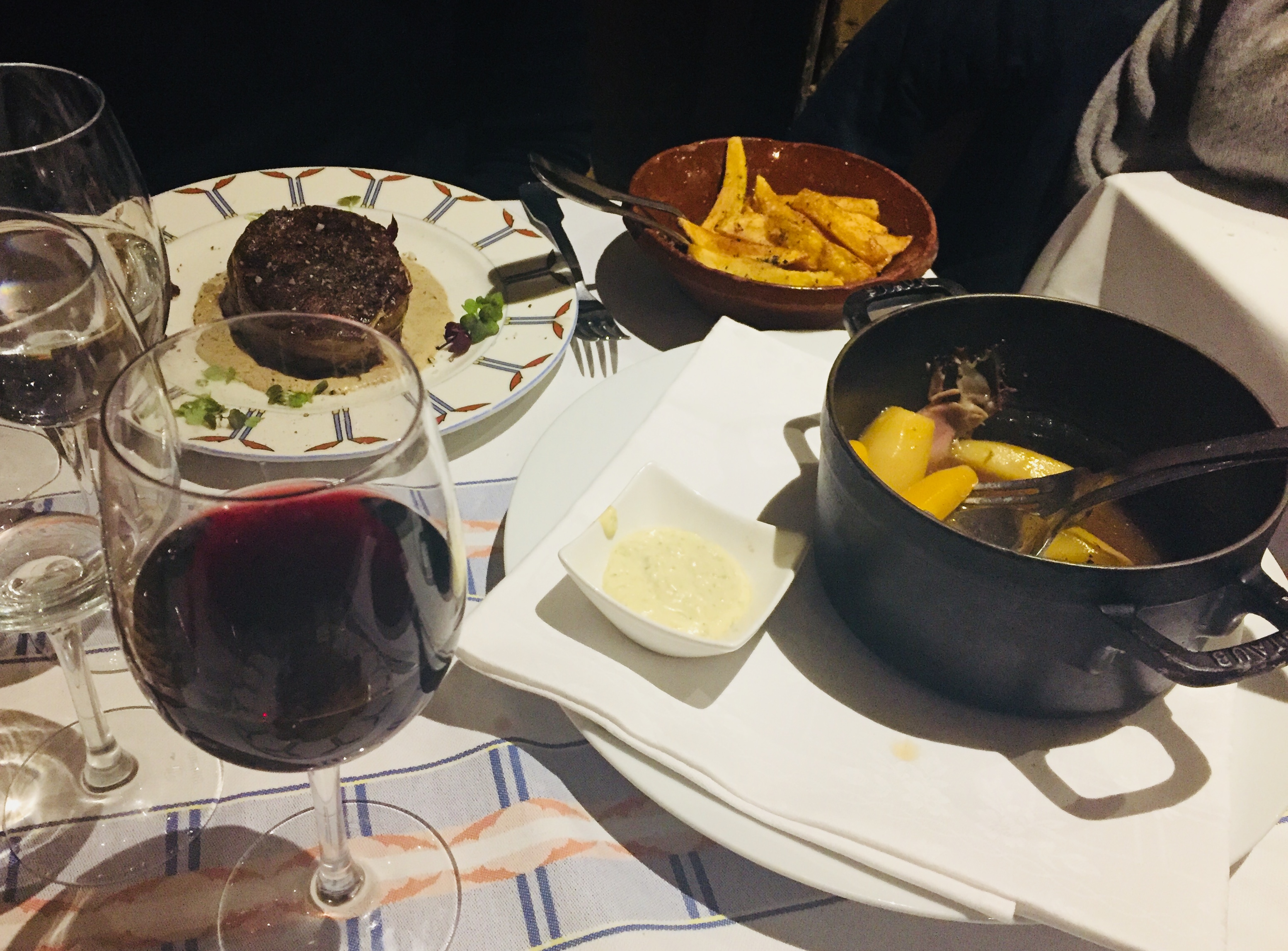 Nous sommes venus dîner pour manger une côte de bœuf, qui était bonne mais beaucoup trop cuite hélas (demandée bleue reçue presque à point). Un peu déçu, mais le restaurant reste une valeur sûre de Bordeaux.
