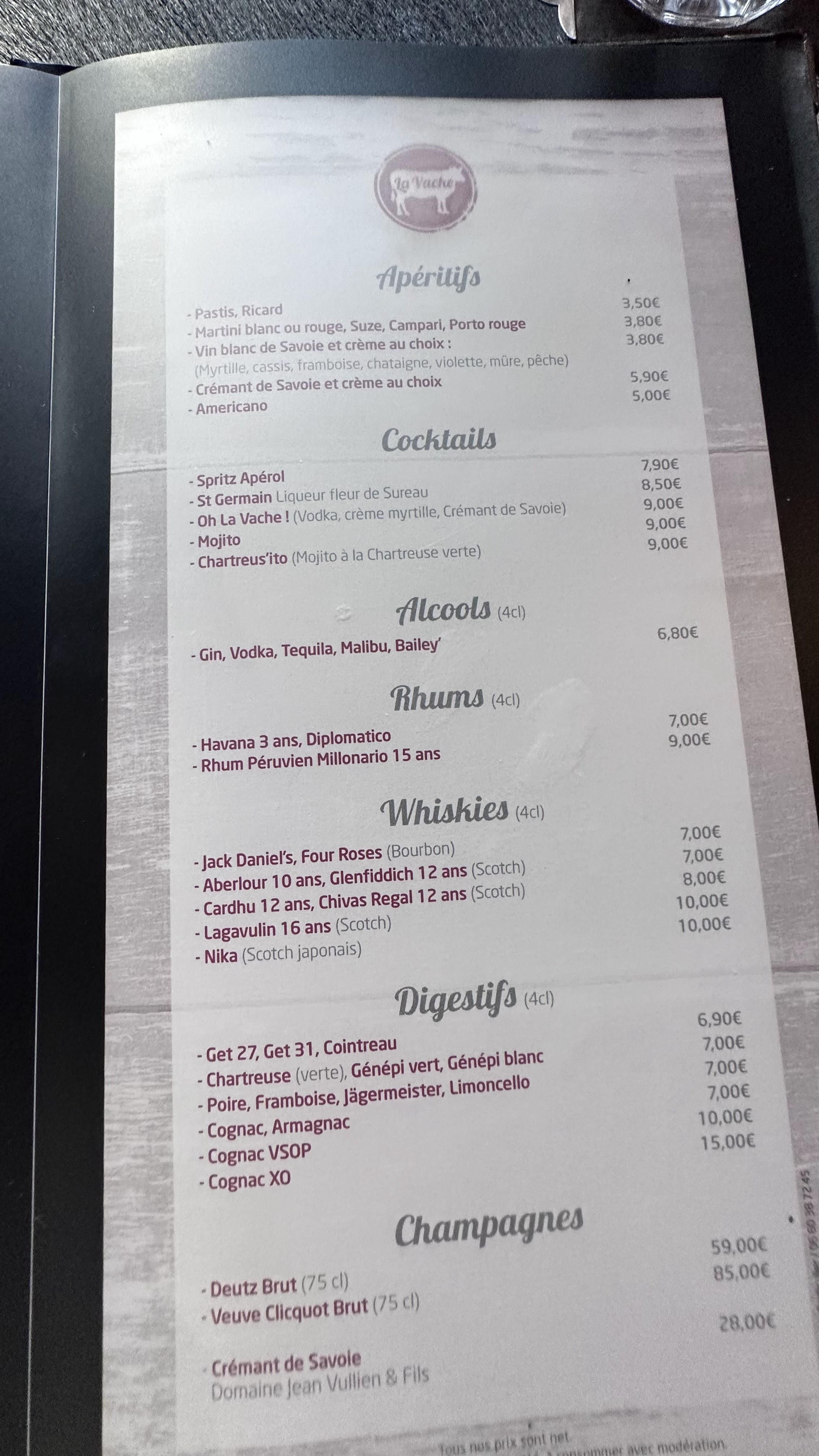 Super accueil à la Vache et personnels très agréables. Ambiance savoyarde ! Bon rapport qualité- prix. Je recommande vivement :)