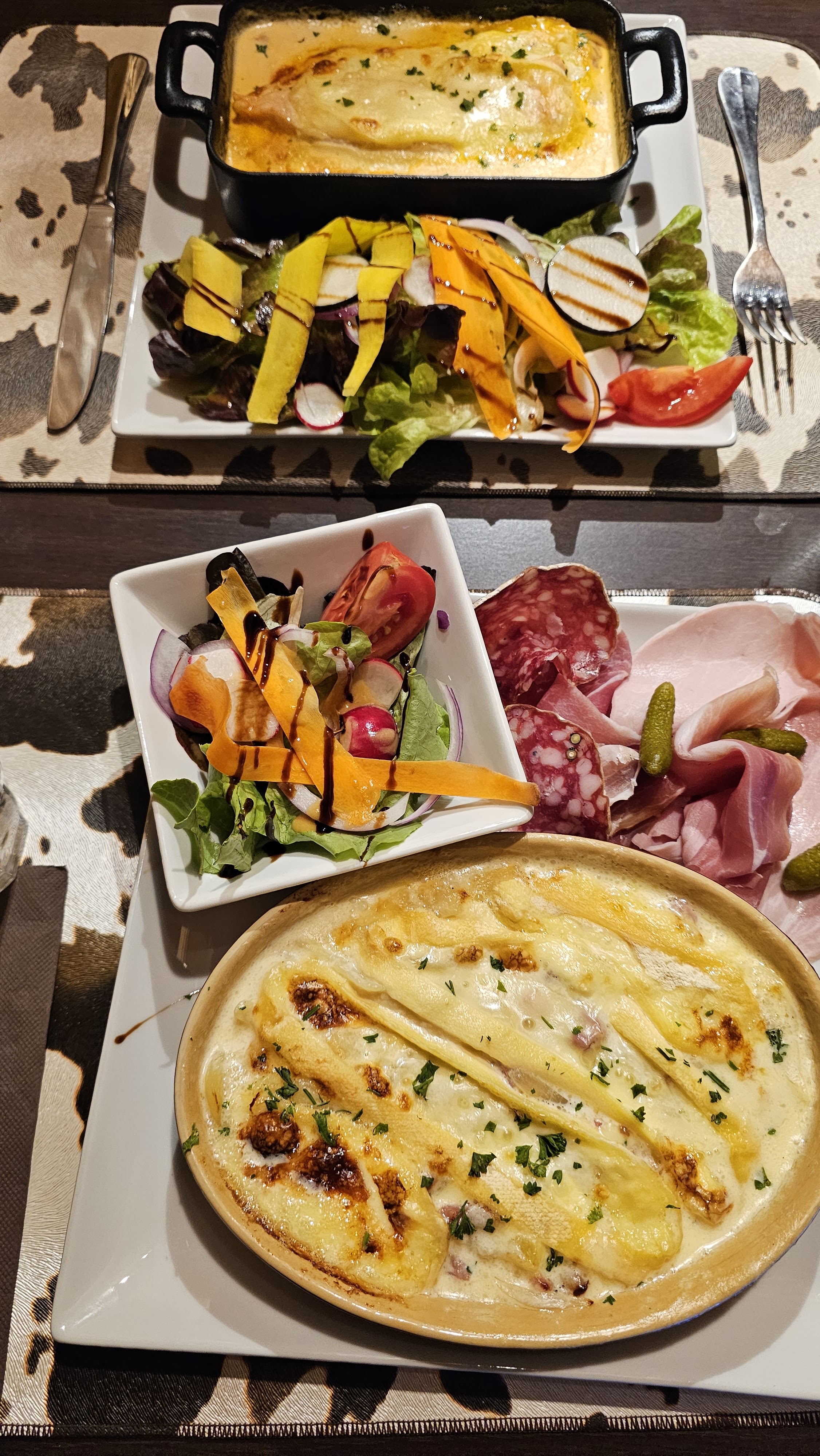 Tous les restaurants étaient complets et par une grande chance il y a eu une annulation au restaurant La Vache. Un accueil chaleureux par le patron et les serveurs et de très bons plats Savoyard. Très bon rapport qualité prix et de belles assiettes bien copieuses. On s'est régalés du coup on y retourne demain soir et on y reviendra.