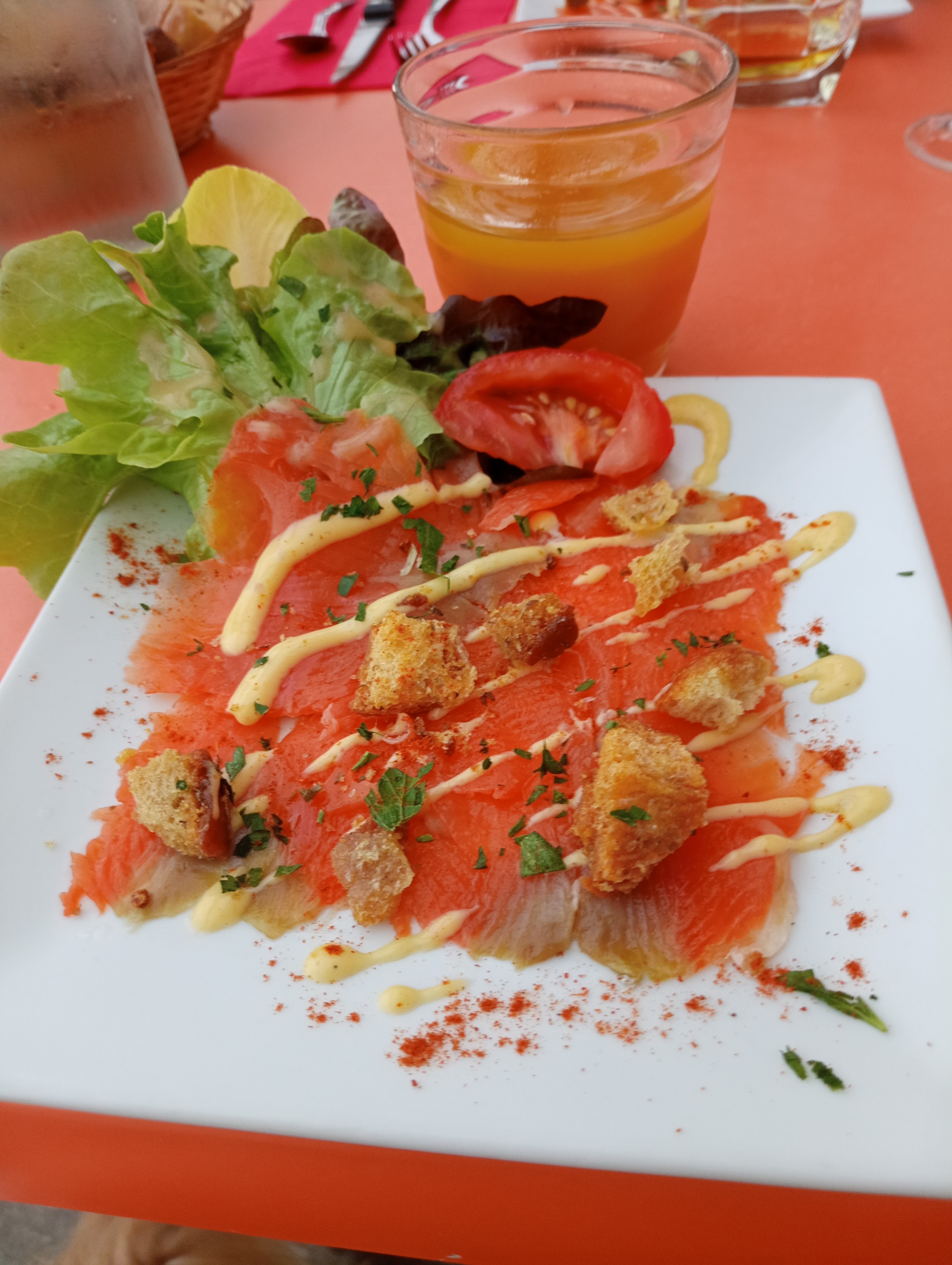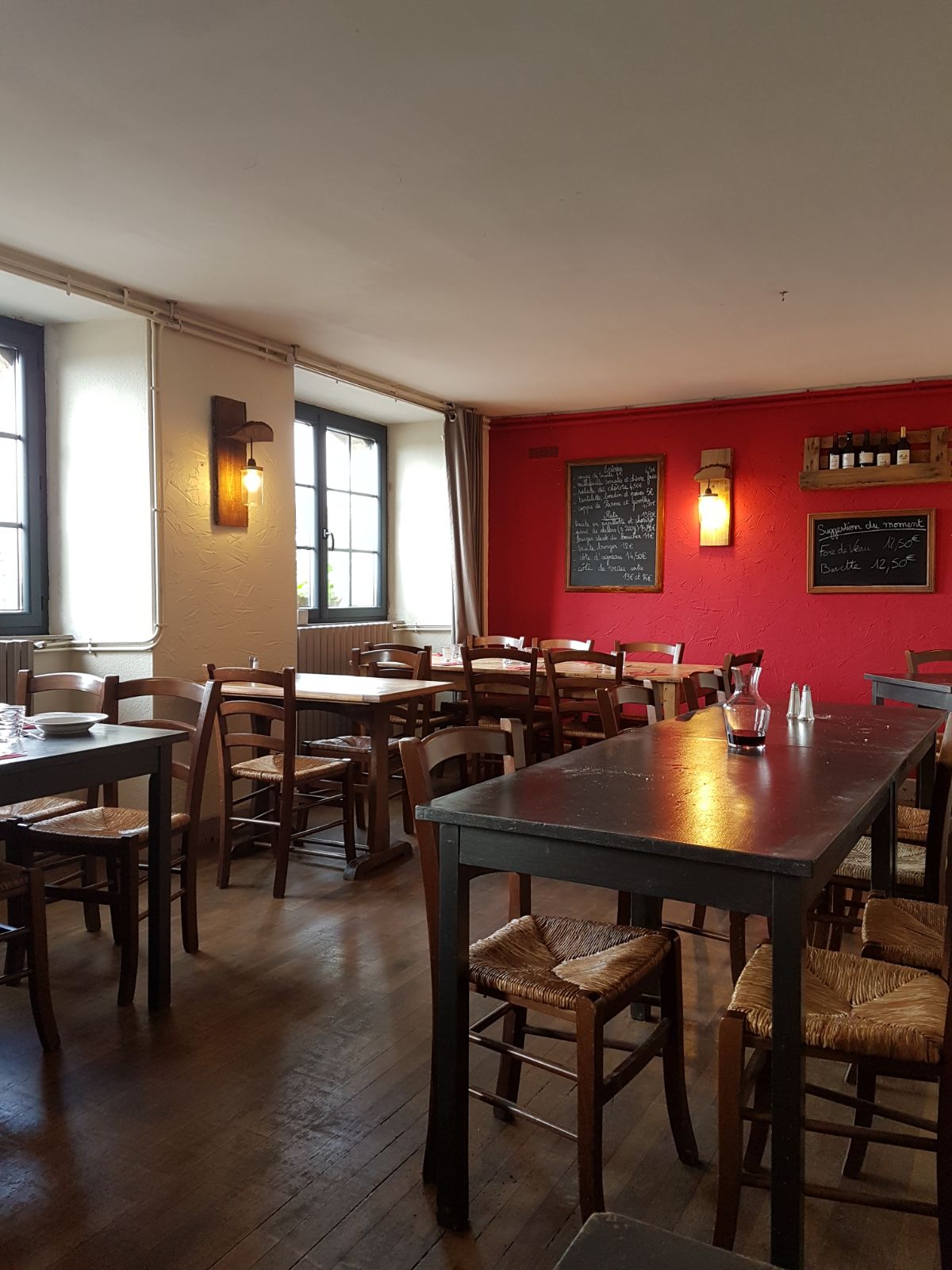 Carte très simple ..peu de choix ..plats correct et goûteux..prix très abordable ..salle petite Nous avons dû mangé en terrasse malgré réservation et nous n avons pas eu chaud Un grand plus pour planche apero très copieuse et délicieuse surtout frites truite