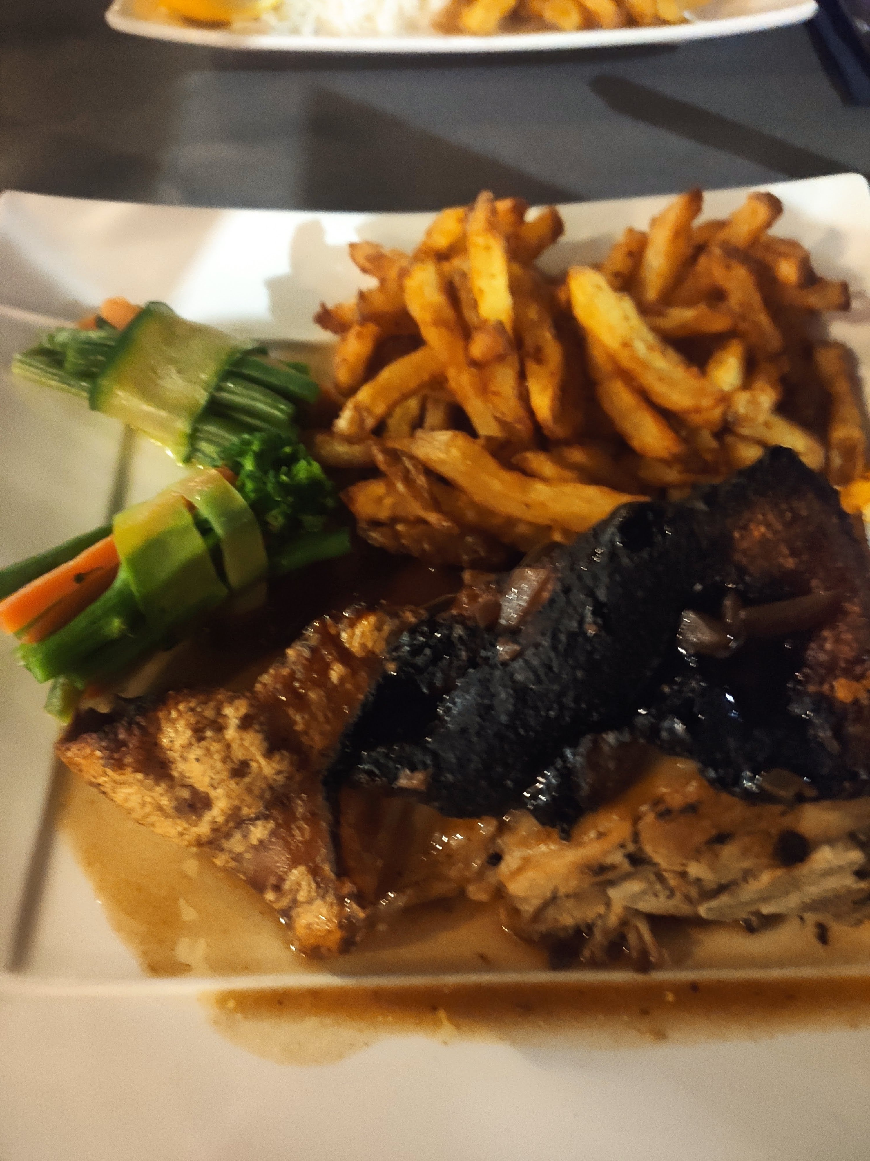 L'ami Dimitri m'a souvent parlé de son cochon de lait alors j'ai tenté l'expérience... Je n'ai pas été déçu, je me suis régalé 😚 la salade de chèvre chaud était très bonne aussi, juste le Tiramisu au Nutella que j'ai pas trop aimé... En tout cas Gujan-Mestras jolie ville très calme, c'est reposant !