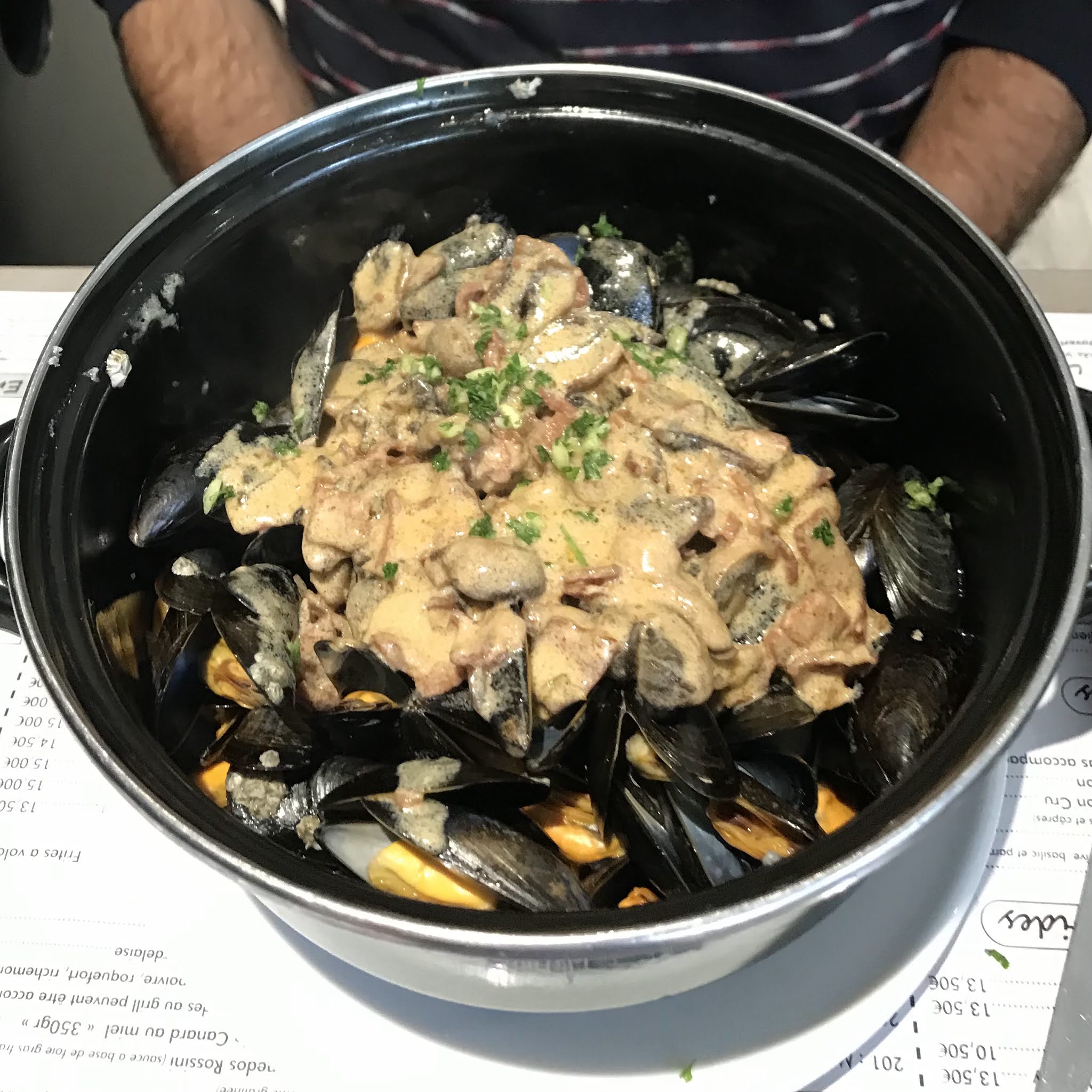 Moules croustillantes (du sable), pas de liste des Allergènes (ce qui est obligatoires dans les restaurants). Je déconseille.