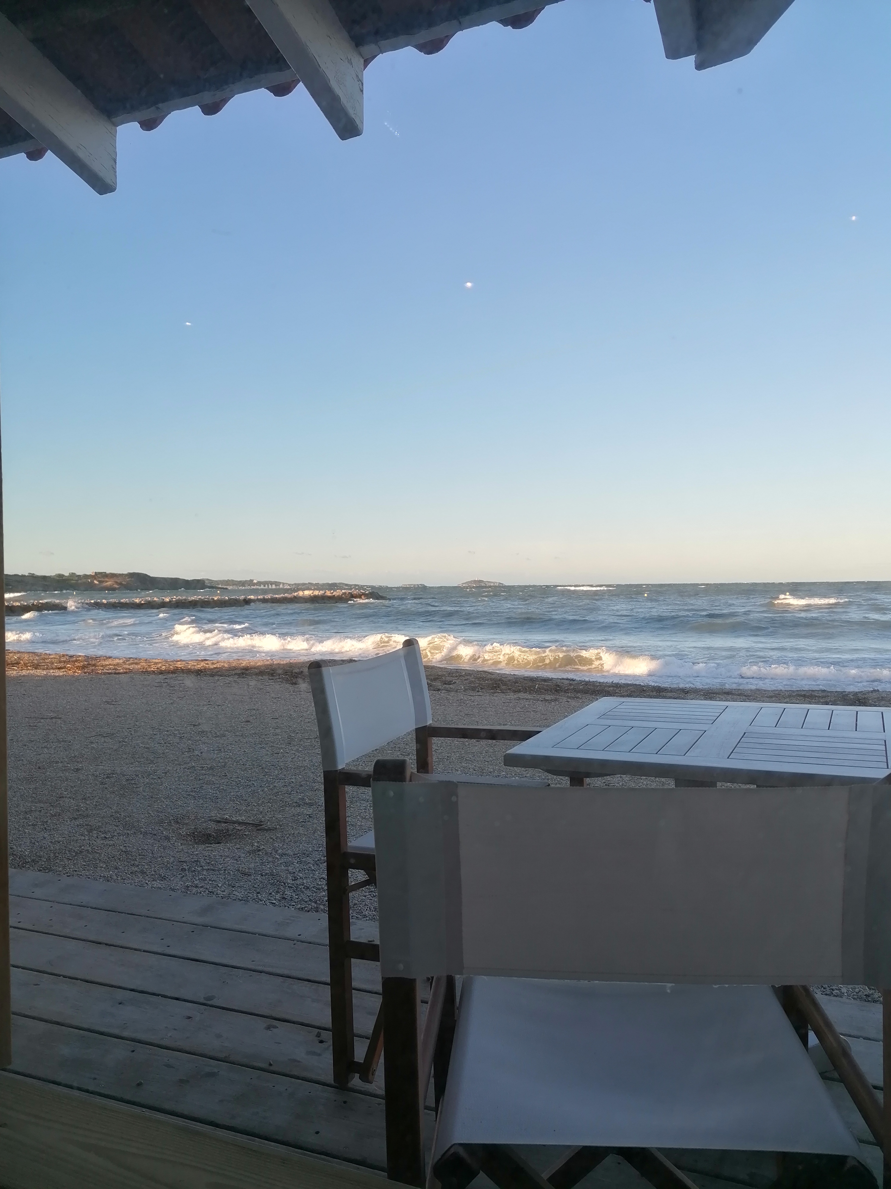 Sur la plage de bonnegrace. Un bonheur. Plein sud. Je la fréquente à toute heure. Au petit déjeuner. C'est génial Au déjeuner, c'est génial Au dîner, c'est génial et en plus souvent il y a de la musique. J'y vais sans modération
