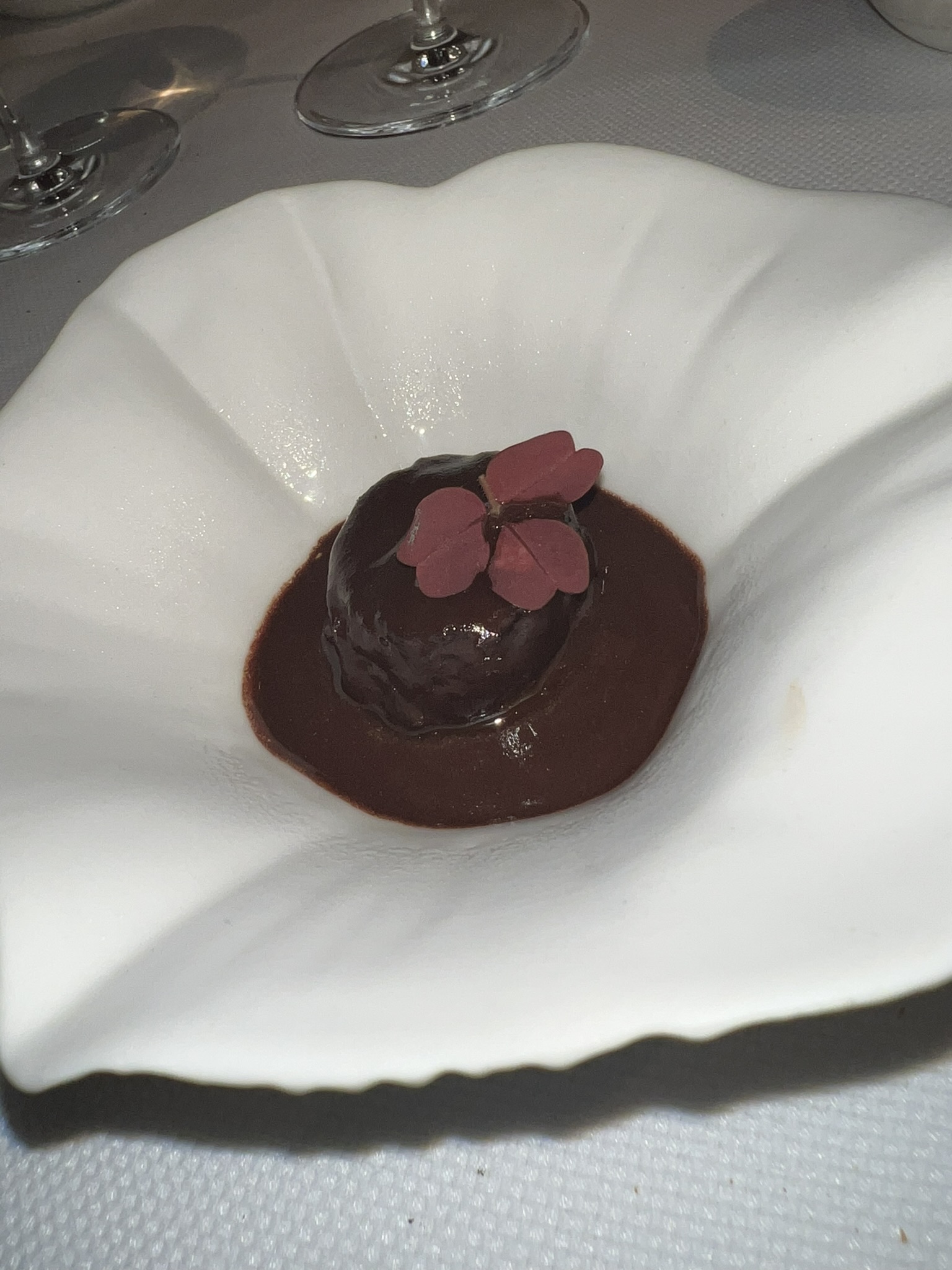 Extraordinaire. Un service superbe, un sommelier d’excellent conseil. Pas besoin d’un prêt à la conso pour se faire plaisir. Une vaisselle originale et très bien choisie et des mets superbes. C’est du 100/100! Un grand merci