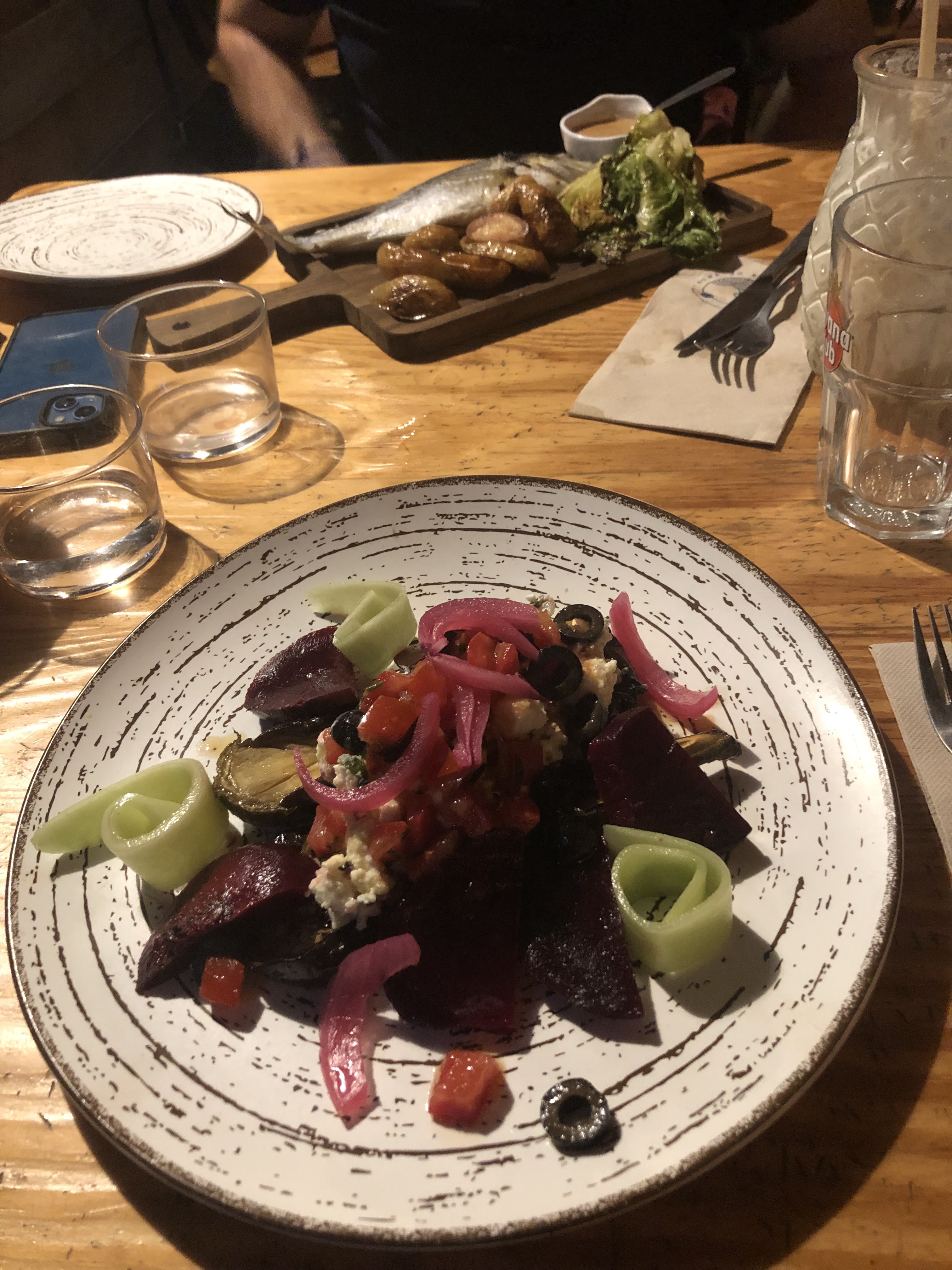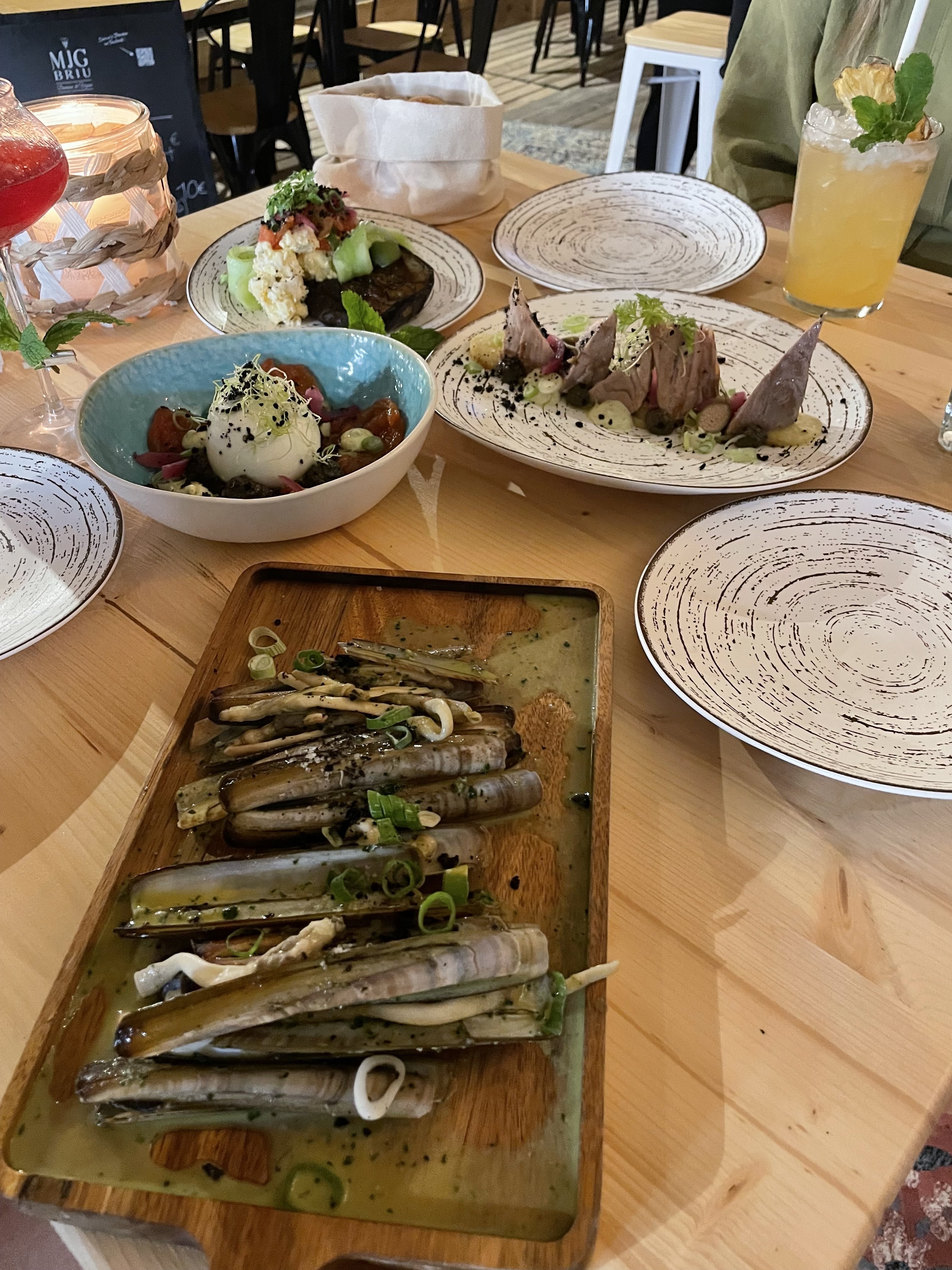 Le décor est très beau, ce restaurant a été aménagé avec goût. De plus il est très bien situé le soir avec d'un côté la vue sur le coucher de soleil et de l'autre sur la mer. Pas de chance pour nous ce soir là, ils étaient complètement débordé à cause d'un problème de gaz mais les serveurs ont fait le nécessaire même si l'attente était un peu longue. Au niveau culinaire, nous avons pris des tapas qui etait tous très bon mais un peu juste en quantité.