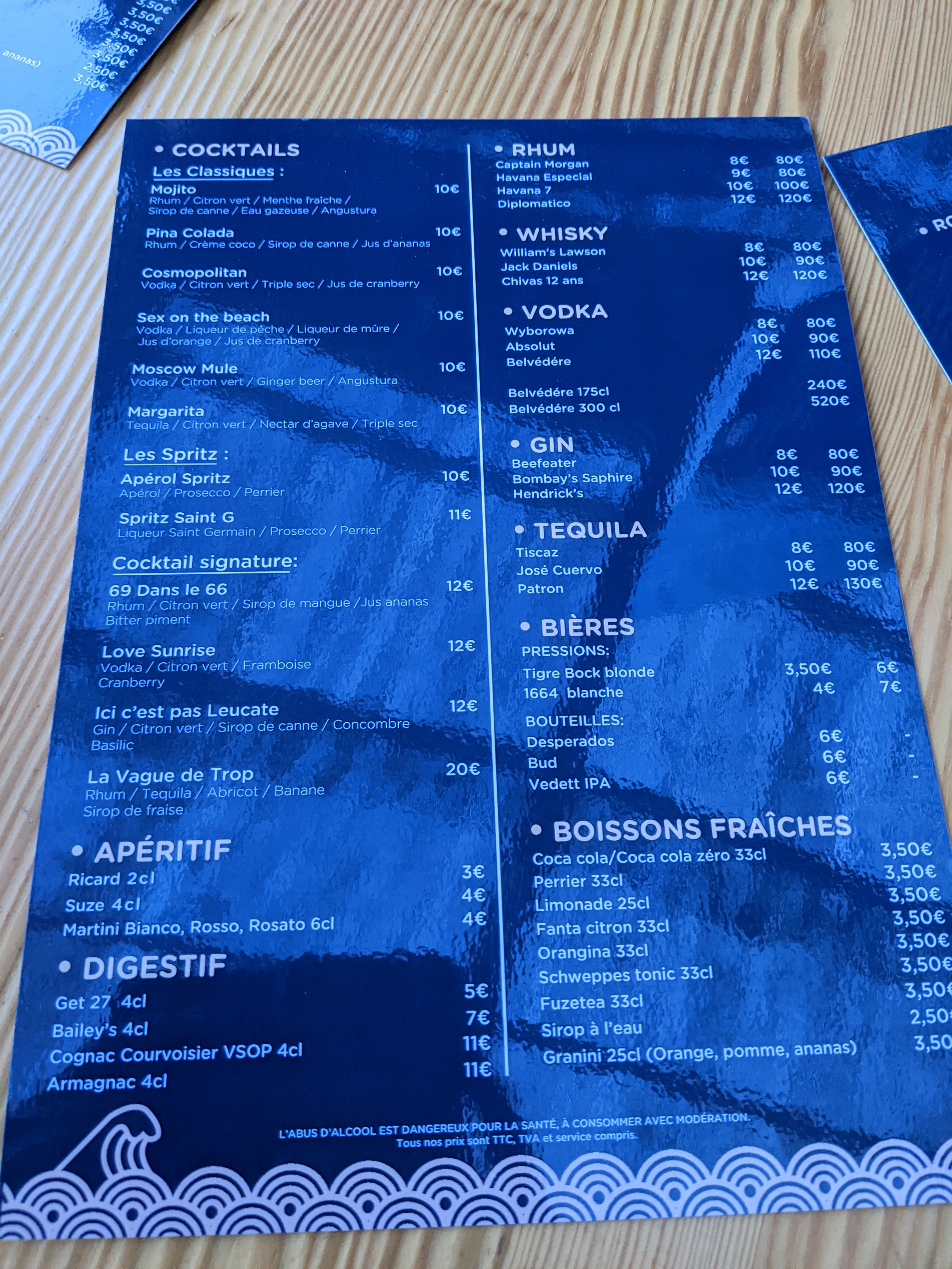 Je suis venue avec des amies manger à la vague de trop ce week-end, les plats étaient très bon et le service très agréable ! Quelques petites améliorations peuvent être faites mais rien de plus normal pour un début de saison Nous reviendrons avec plaisir y passer une soirée dans l’été, merci !