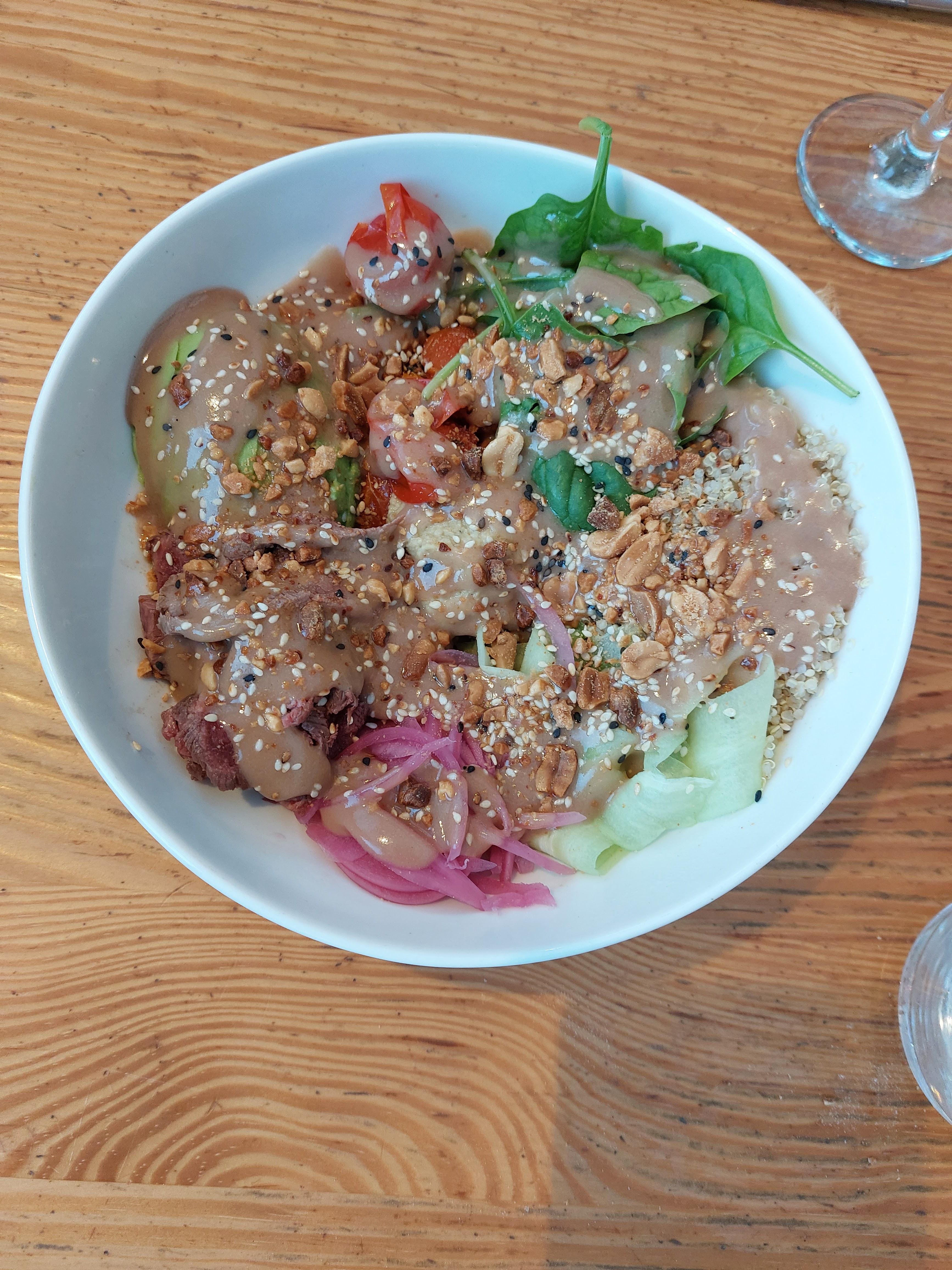 Spot très agréable et personnel adorable. Ils ont deux options végétariennes (merci!): un poke bowl quinoa et une aubergine grillée. Nous avons testé le poke et très bon (même si un poke reste toujours cher pour ce que c’est). Nous avons aussi testé la brioche perdue, top.