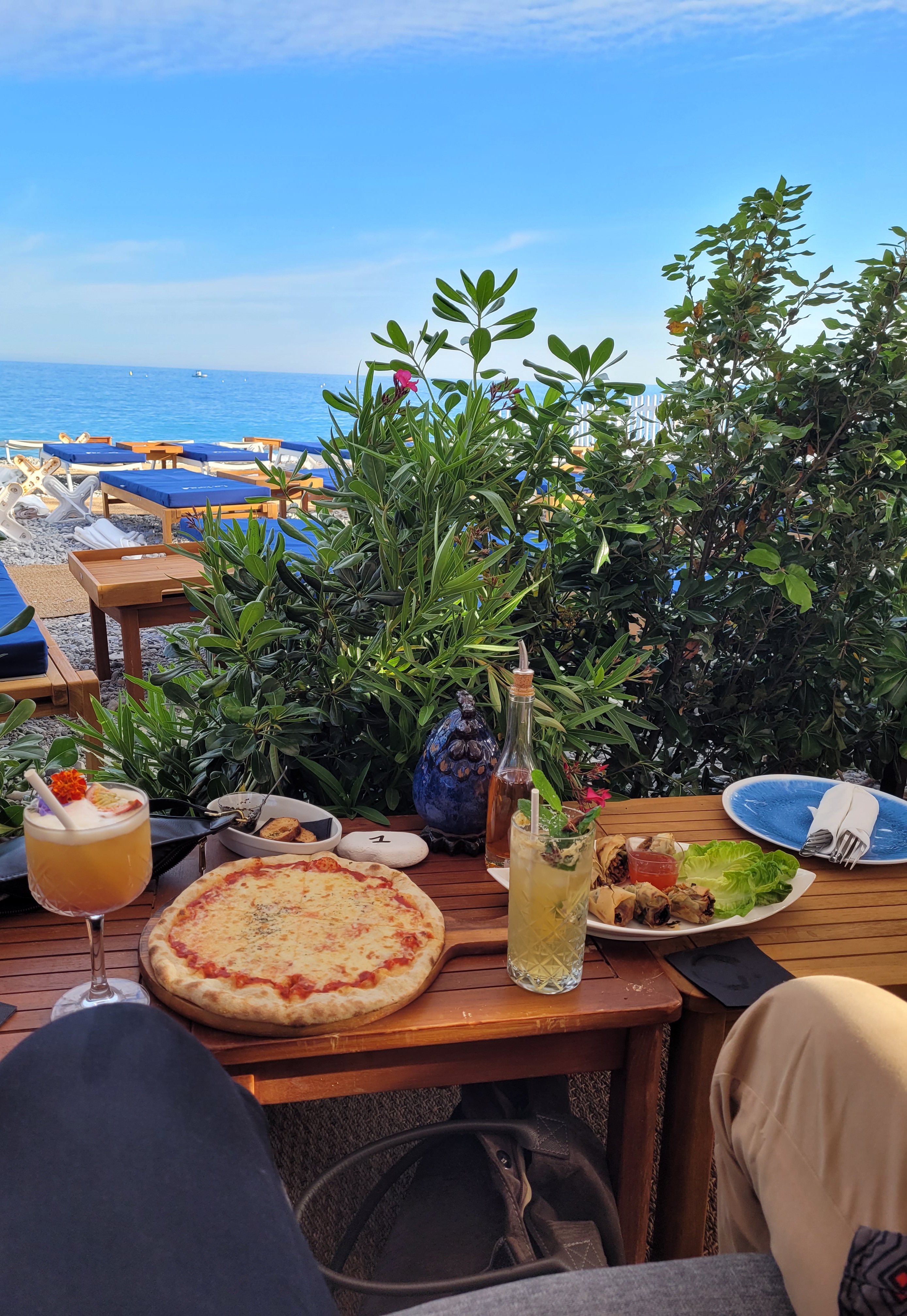 Premier arrêt niçois après la descente de l'avion car on avait la dalle. Beau début de séjour ! On a bien mangé. Le cadre est très sympa. Le service pareil. Comme d'hab des gens vont se plaindre que c'est un peu cher mais ils oublient qu'ils sont sur la plage... Bon par contre j'espère que le DJ n'est pas résident car ma playlist Spotify fait mieux les transitions. C'est ce qui m'a refroidi d'y prendre un transat et d'y passer la journée. Mais pour manger avec une jolie vue, allez-y !