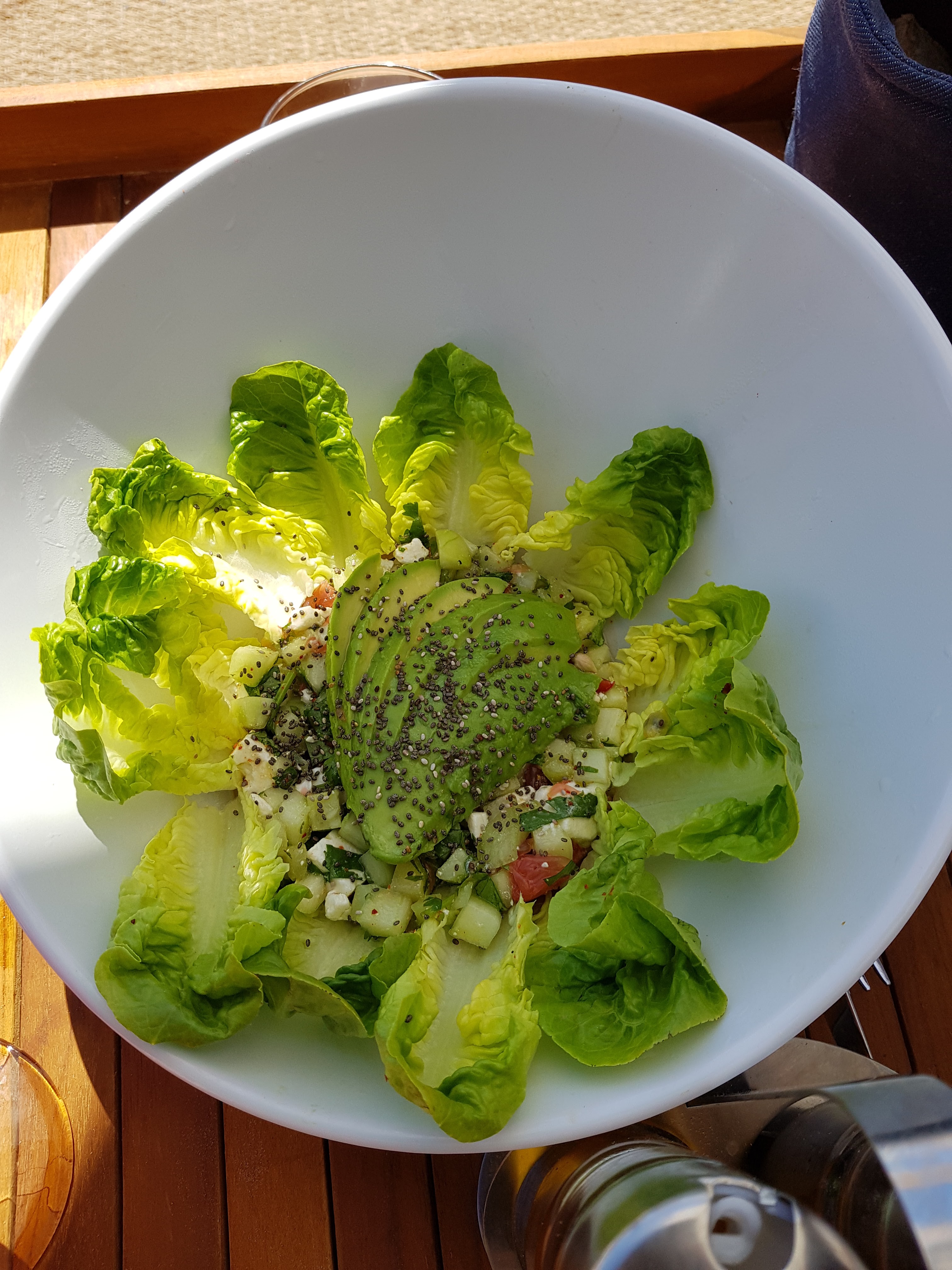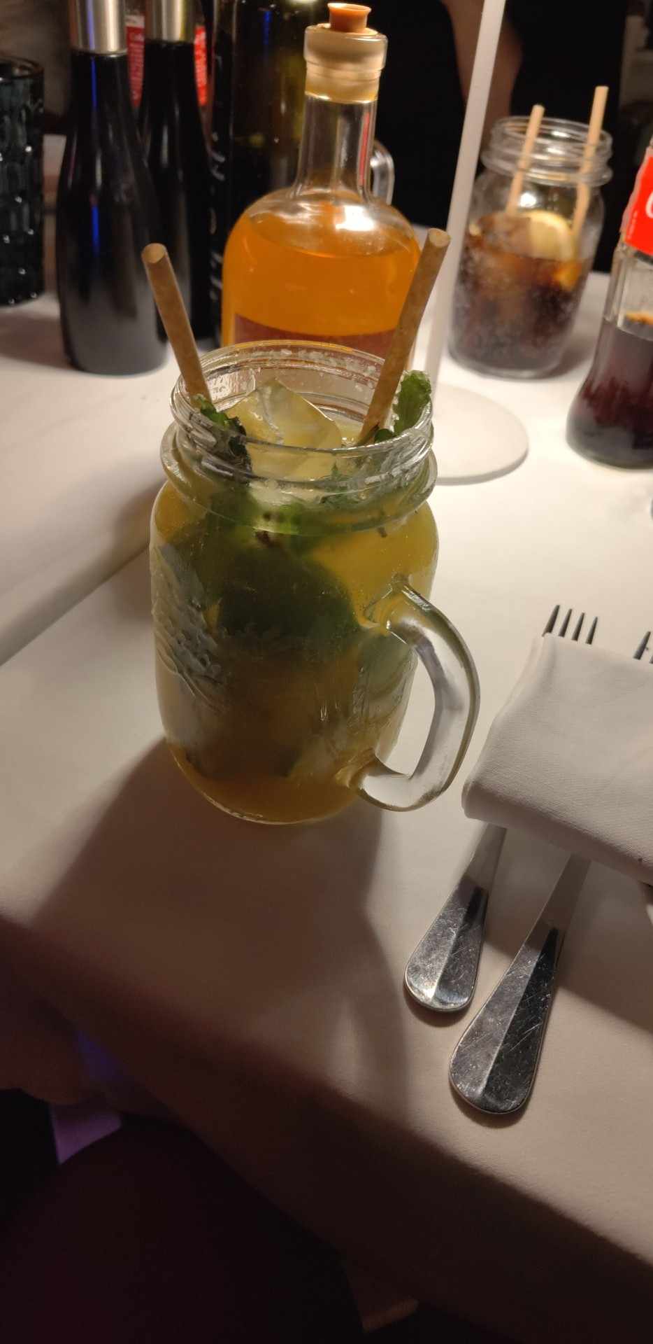 Cocktail beaucoup trop sucré, trop de sirop de concombre écoeurant, du coup j’ai commandé un autre verre de Prosecco pour diluer, j’attends encore ! Le serveur est parti ! Heureusement qu’il y a le cadre et l’ambiance et que j’étais bien accompagné !