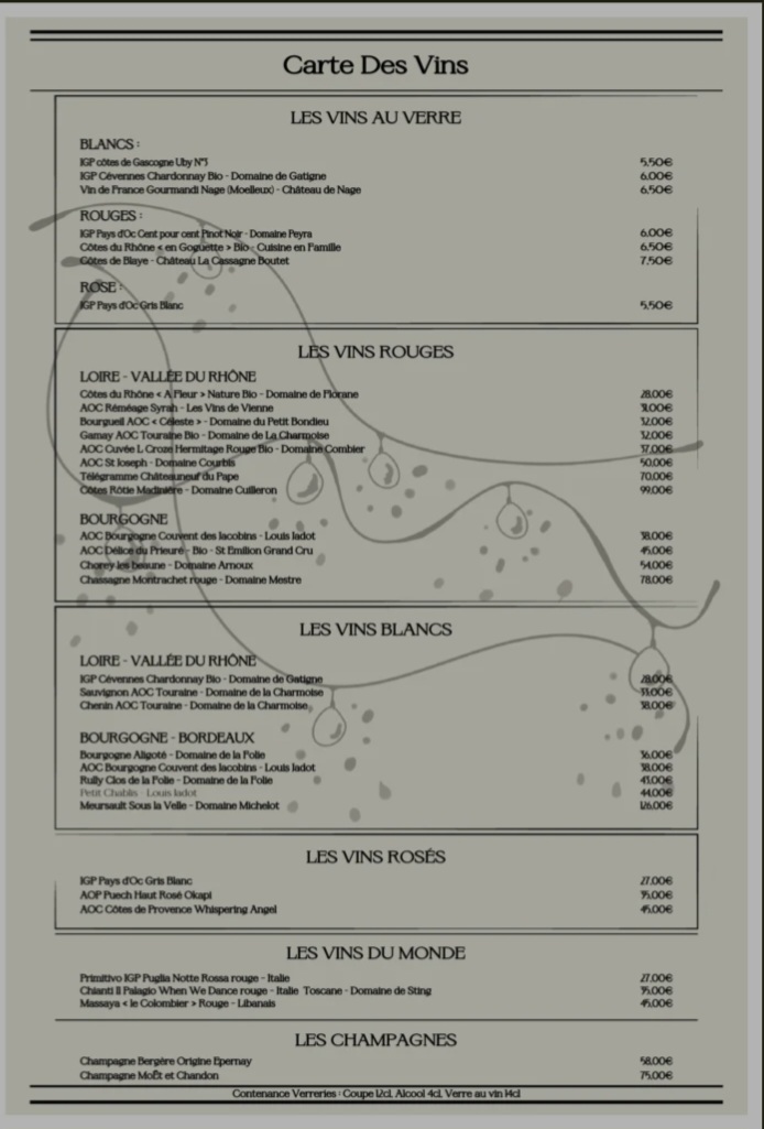 Excellent restaurant lillois Belle découverte un dimanche midi sans réservation et après 13h !! Tout est parfait pour passer un bon moment Les plats goûteux et quantité au top les boissons ok et l’ambiance cosy avec musique d’ambiance relaxante La terrasse ultra agréable … Le personnel patient , souriantes et très efficaces , non envahissantes et discrètes Au top !!! Je reviendrai bien volontiers Me Bourleau Claudie