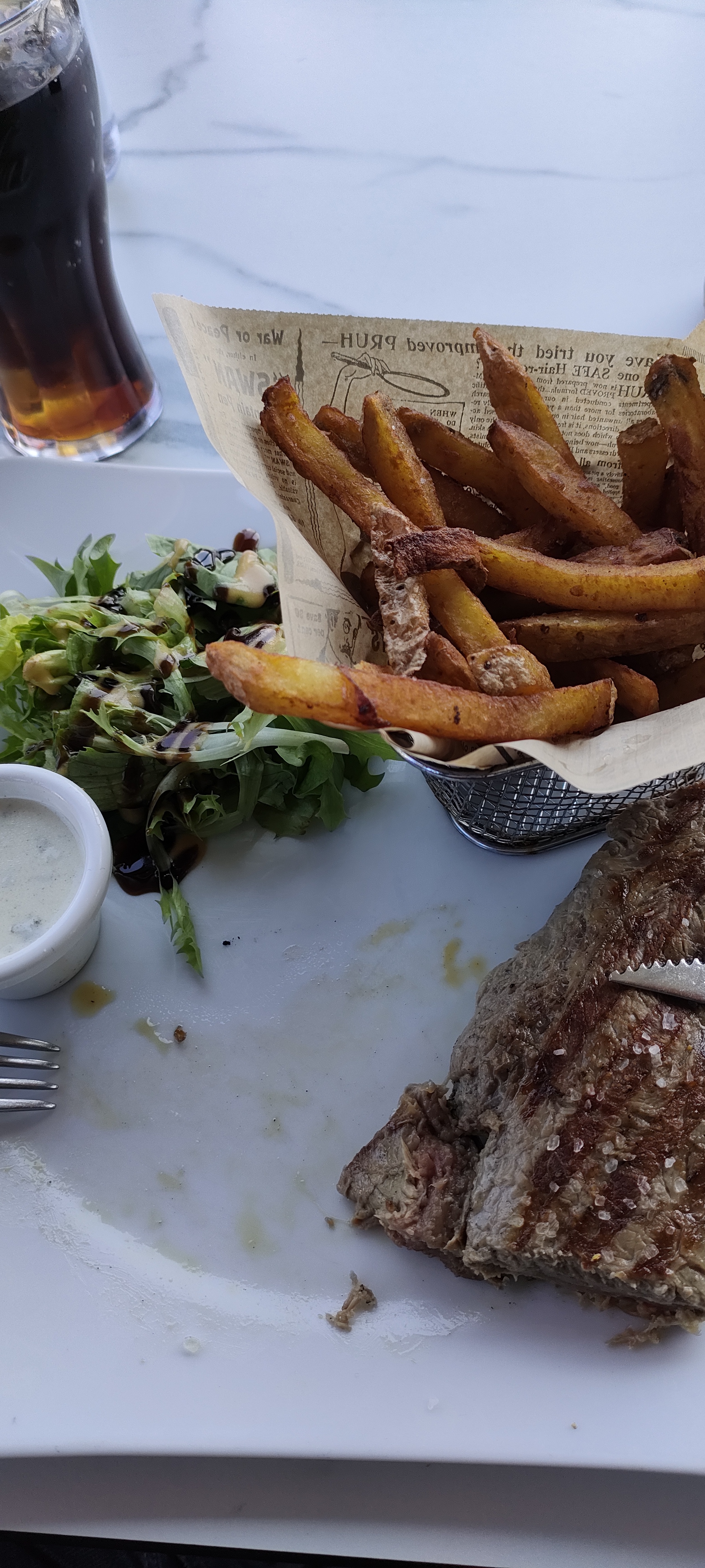 Le service est pas mal.... Mais ce n'est pas super propre en terrasse, et la viande... On ce croirait à la cantine de l'école du super cuit pour une demande bleu à éviter